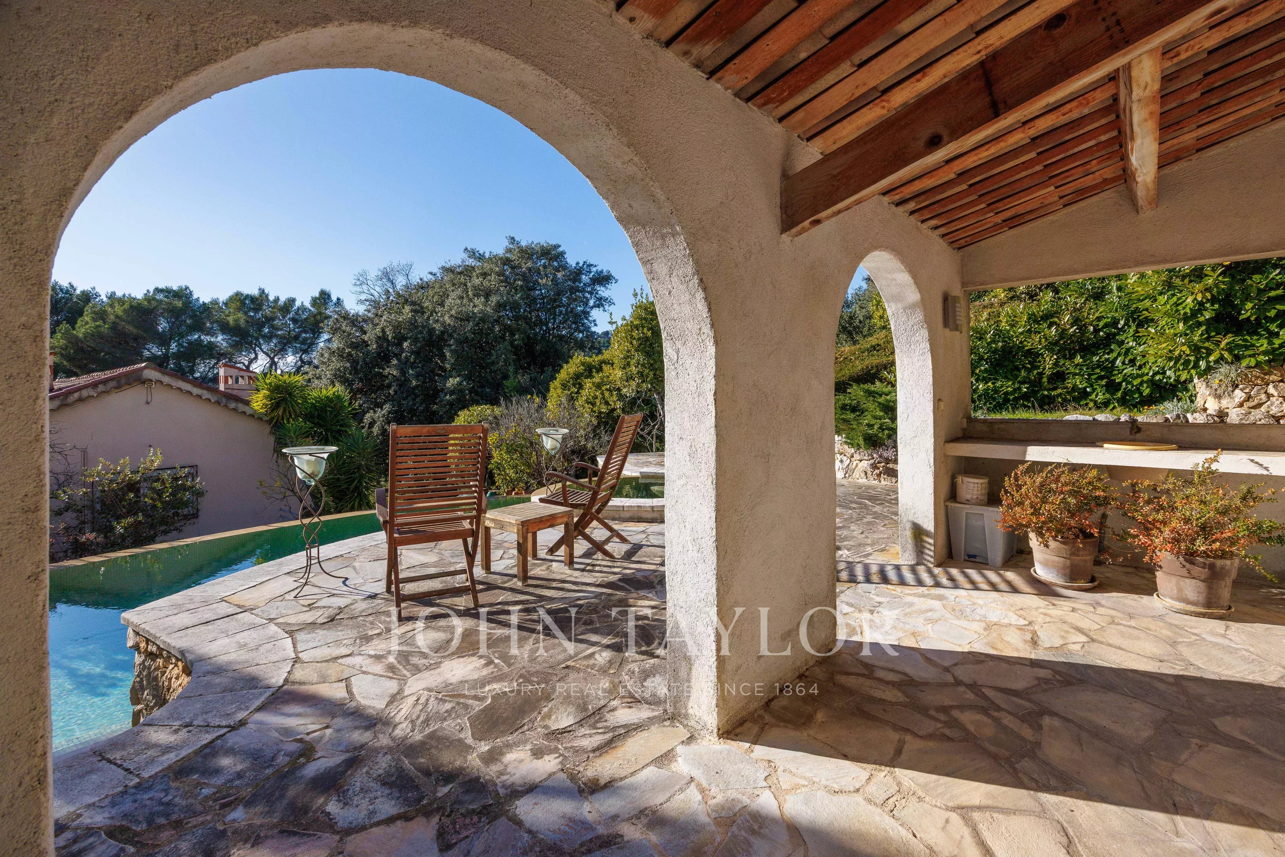The garden, laid out in several terraces complemented by numerous citrus trees, makes the most of the infinity pool area with whirlpool and pool-house, located in the immediate vicinity of the living areas. Constructed using noble materials such as stone and old tiles, this property offers an elegant and privileged setting, ideal for relaxation and entertaining!