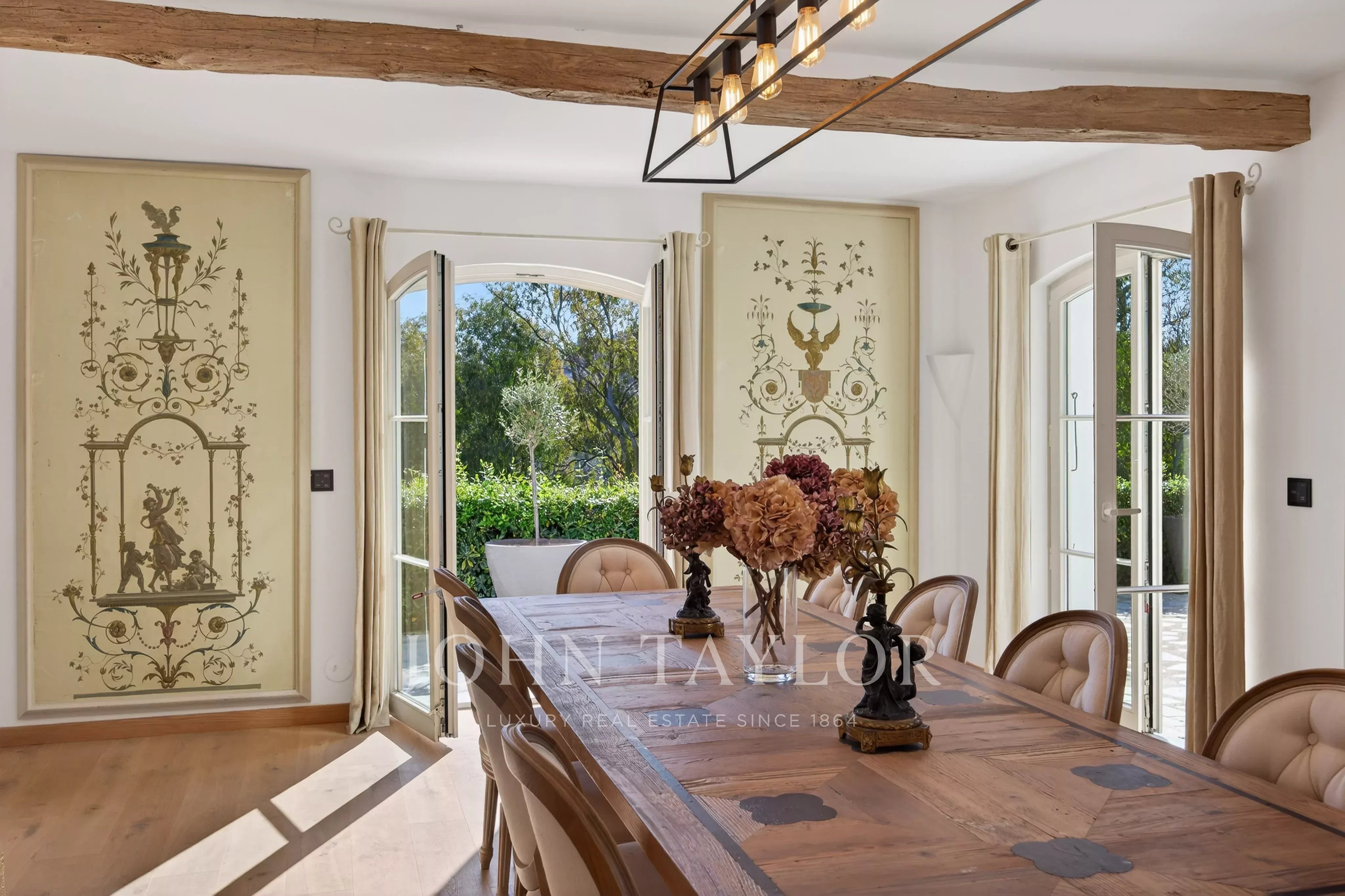Just a few steps from all amenities, this large property offers a green, generous, and discreet setting with a pool and pool house. Within the main house and its three annexes, there are a total of 8 bedrooms and 8 bathrooms, ideal for hosting family and friends while also being able to accommodate staff.