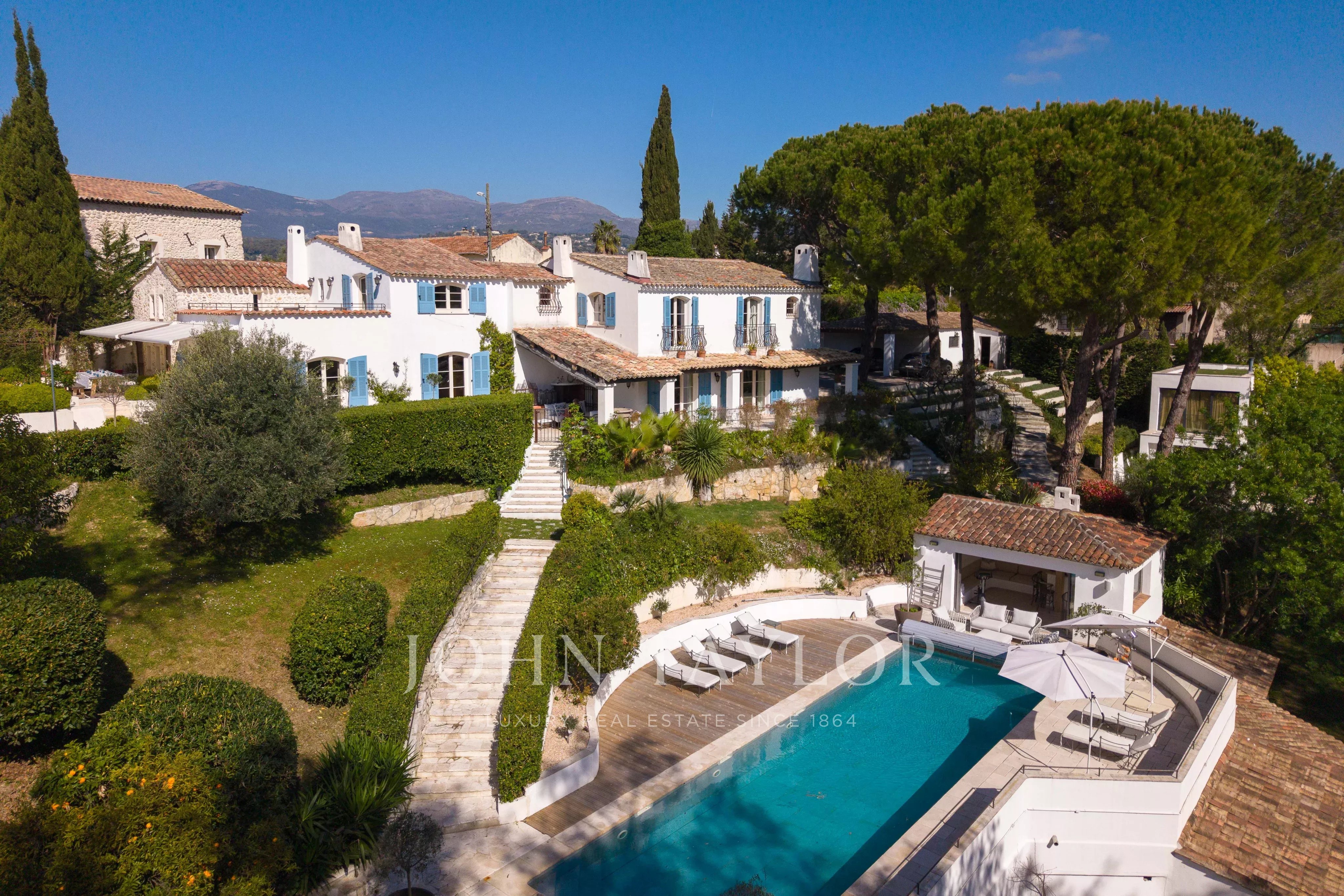 Just a few steps from all amenities, this large property offers a lush, generous, and discreet environment with a pool, pool house, guest villa, and caretaker's house. Within the main house and its three annexes, there are a total of 8 bedrooms and 8 bathrooms, ideal for hosting family and friends while also accommodating staff. Garage for 2 vehicles and shelter for 2 additional vehicles.