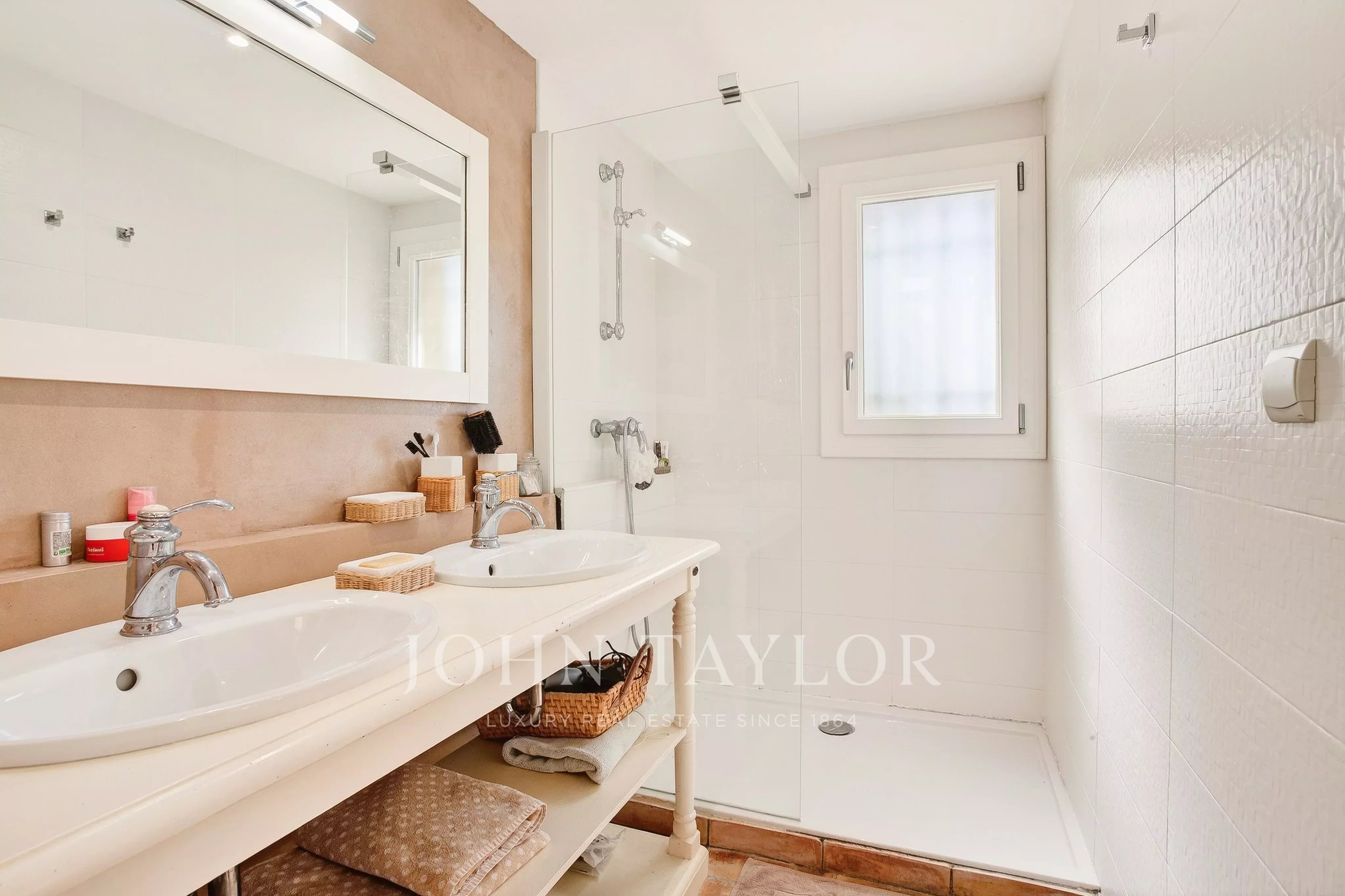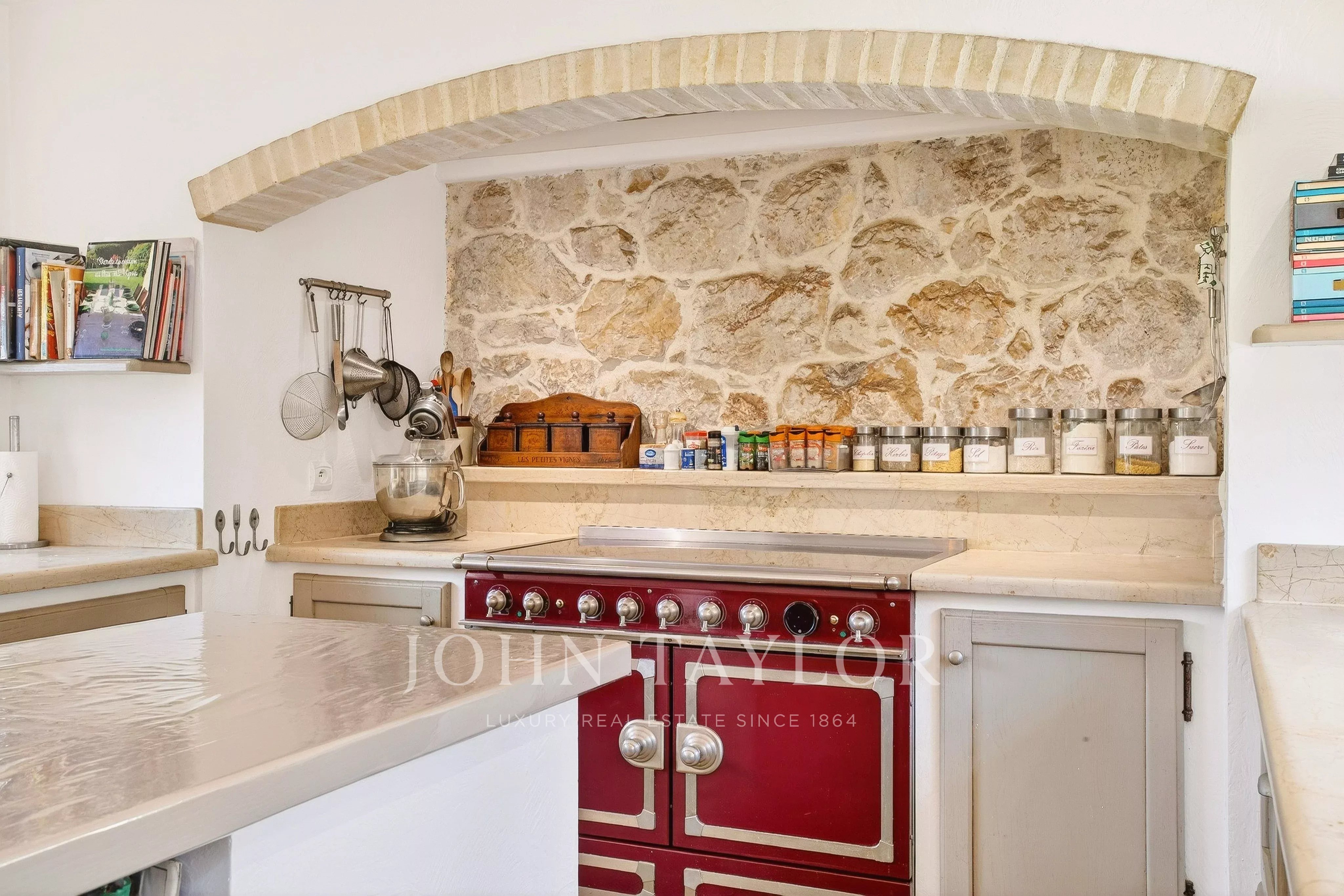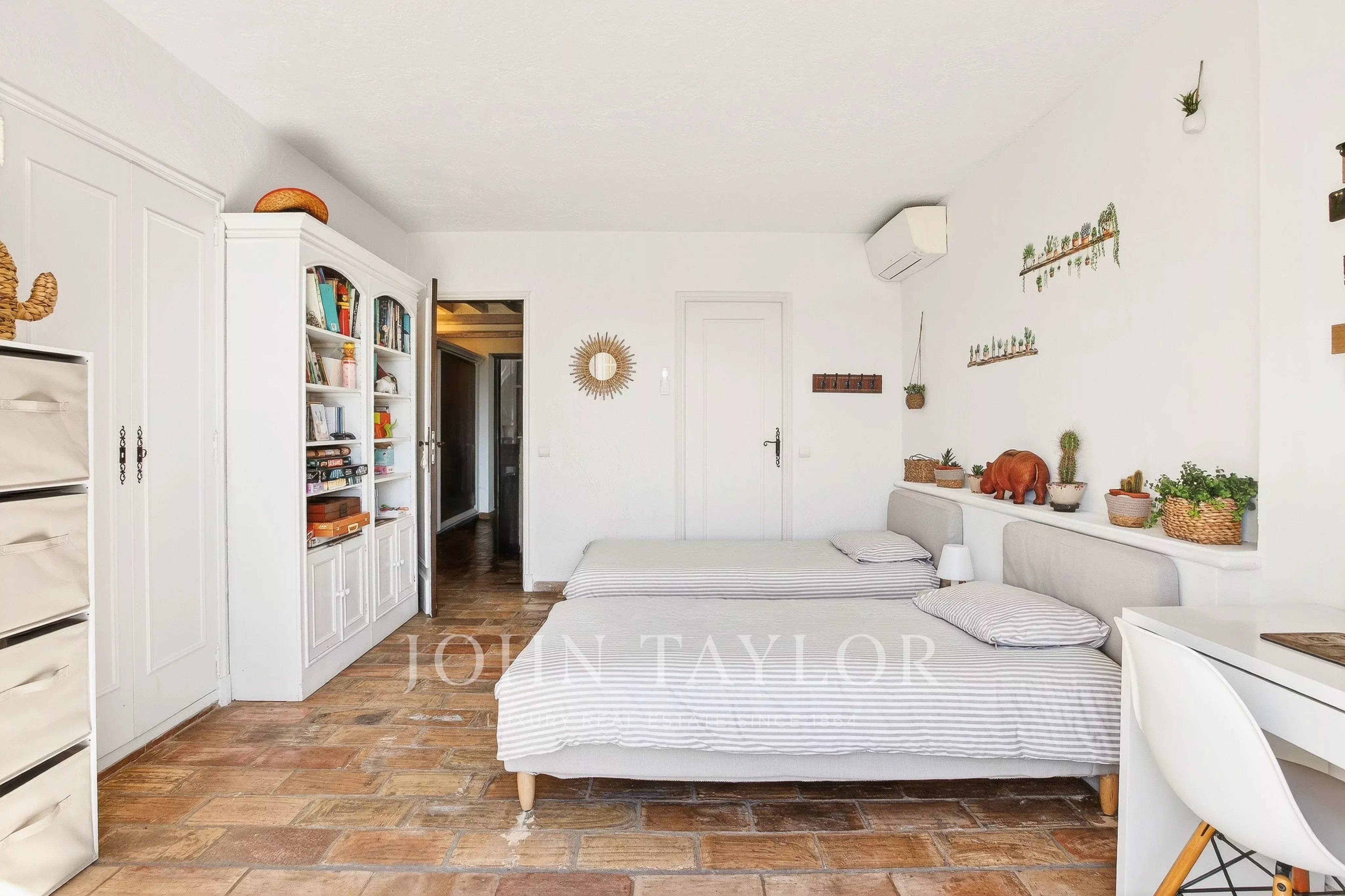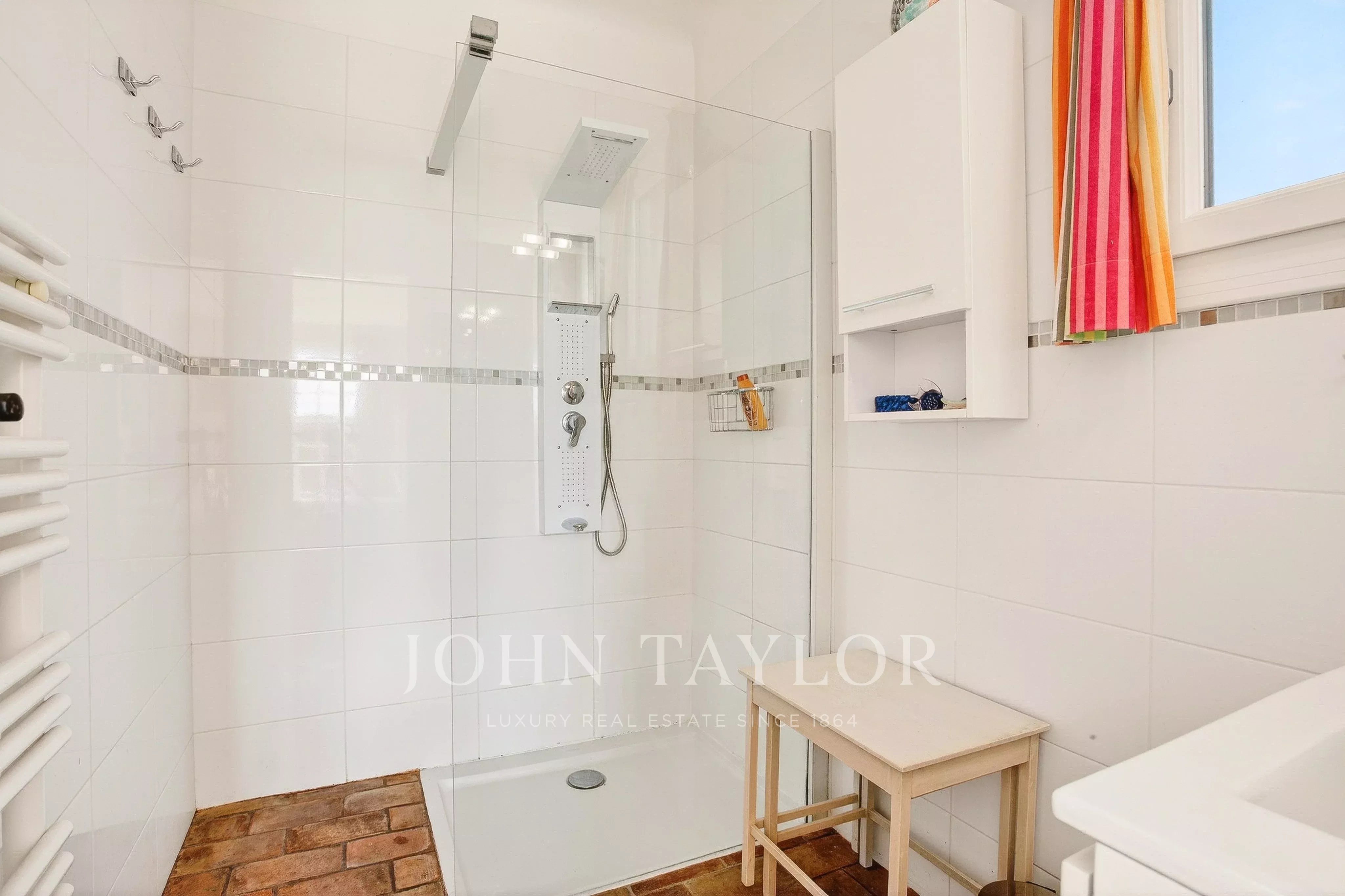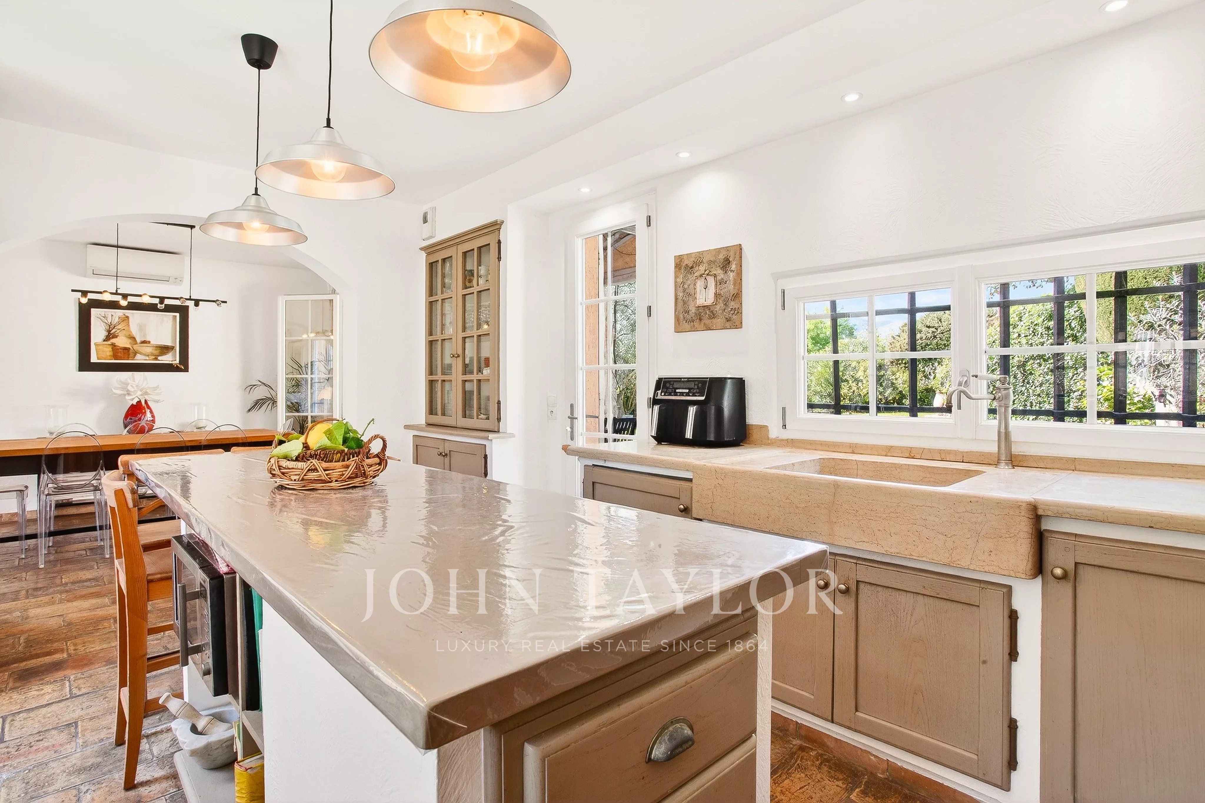 Located on the heights of Saint-Paul de Vence, within a small estate of two properties, this charming single-storey home of 175 sqm, set on a flat plot of 2,358 sqm, offers 4 en-suite bedrooms, a study, a swimming pool, a carport, and open views in a peaceful and green environment.