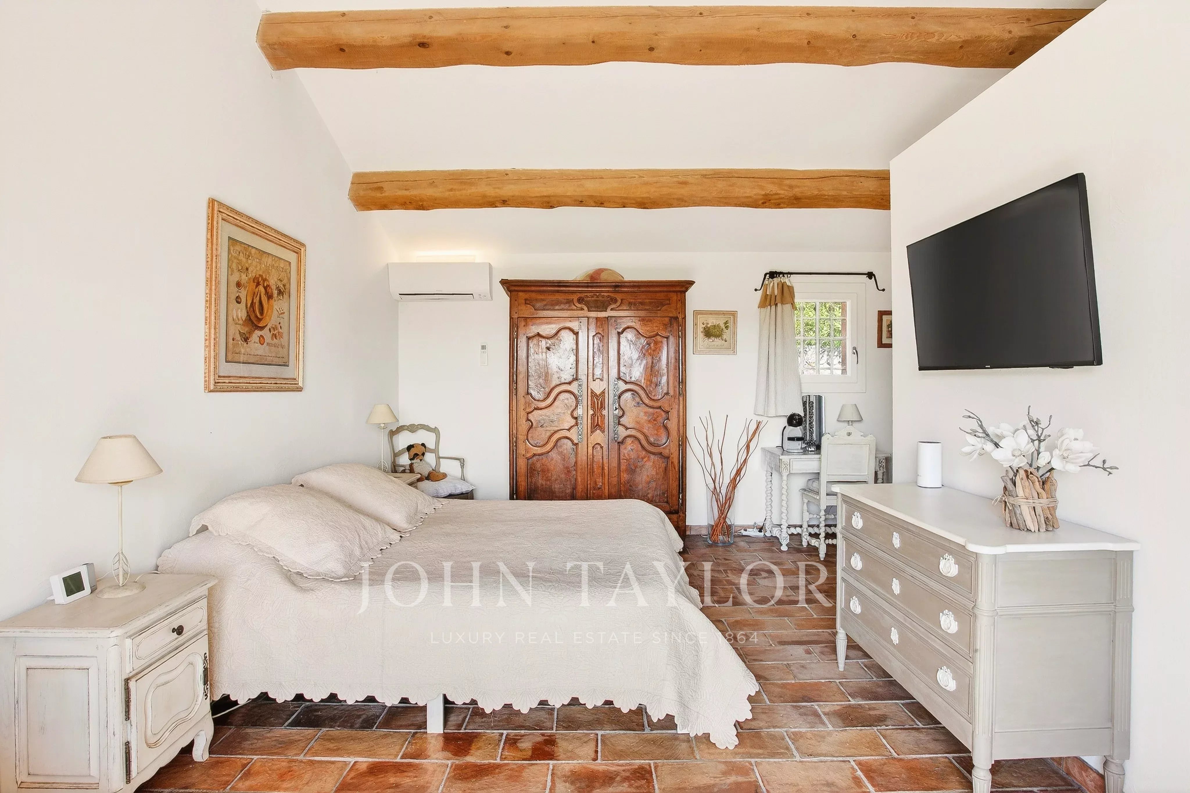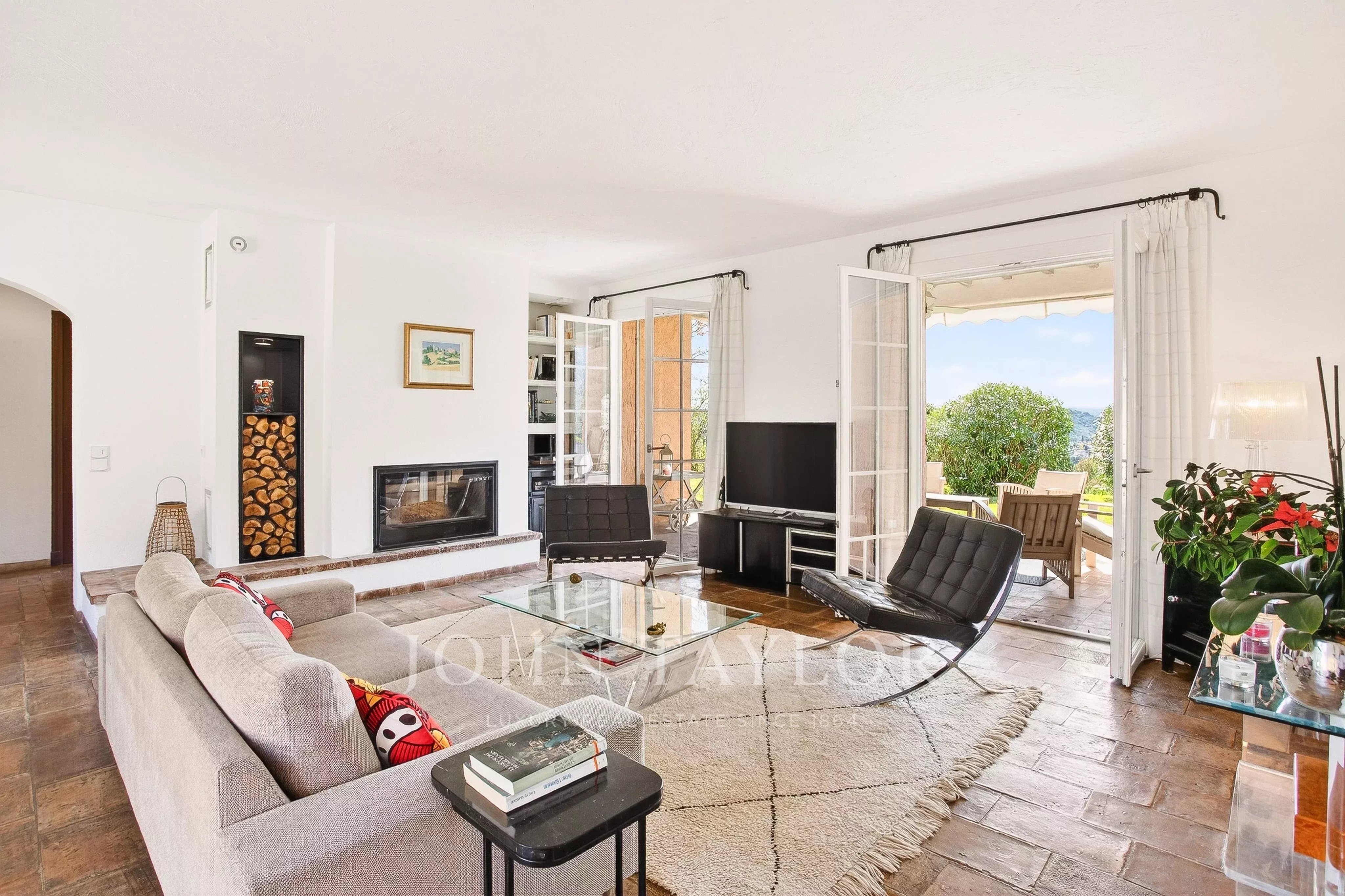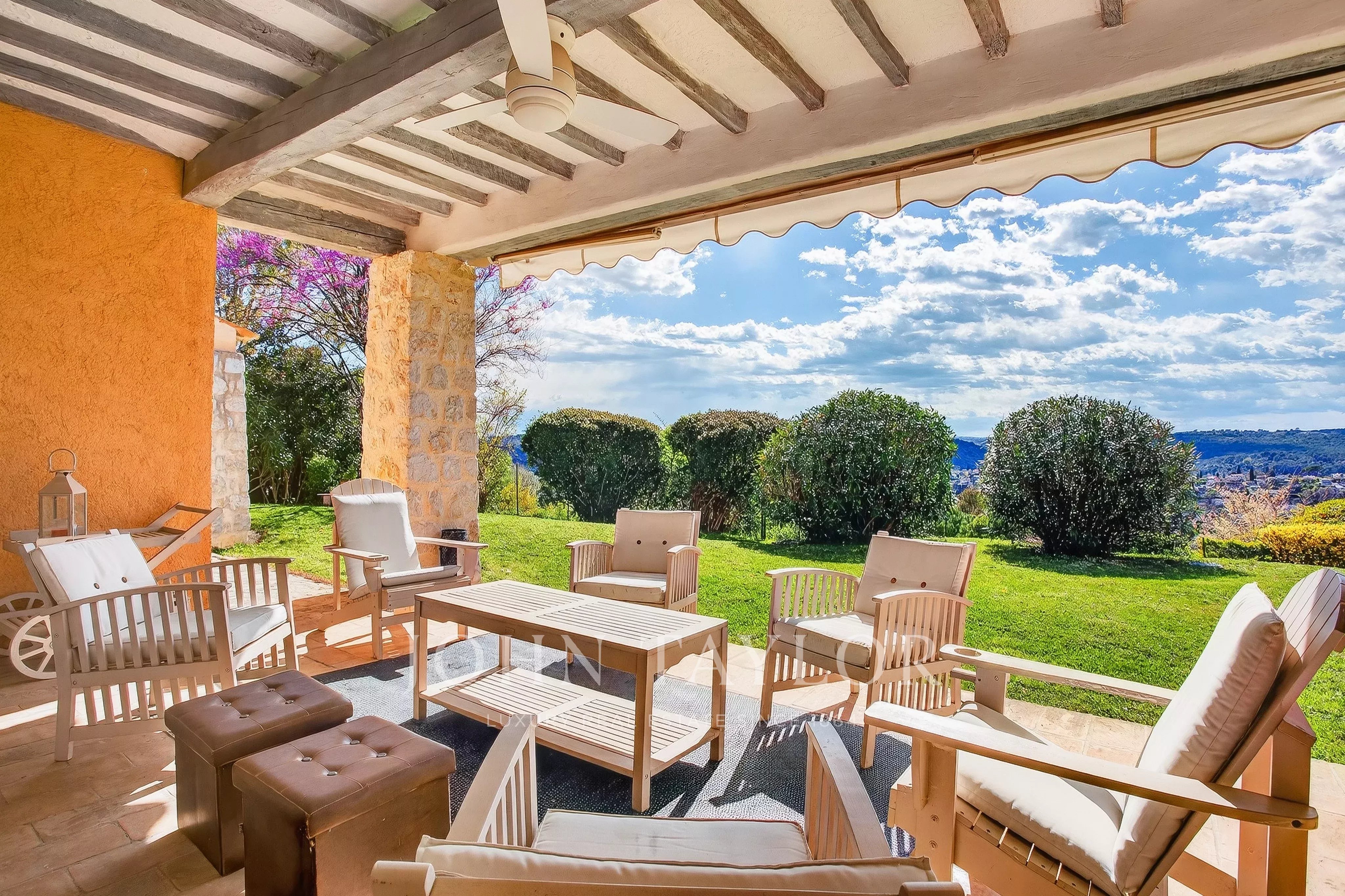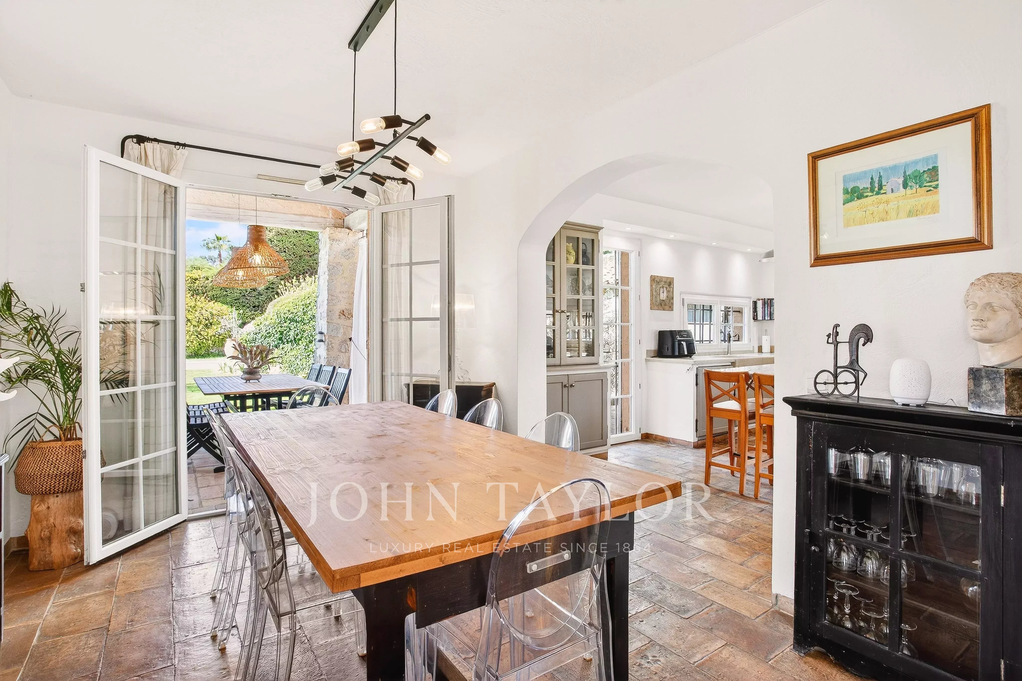 Located on the heights of Saint-Paul de Vence, within a small estate of two properties, this charming single-storey home of 175 sqm, set on a flat plot of 2,358 sqm, offers 4 en-suite bedrooms, a study, a swimming pool, a carport, and open views in a peaceful and green environment.