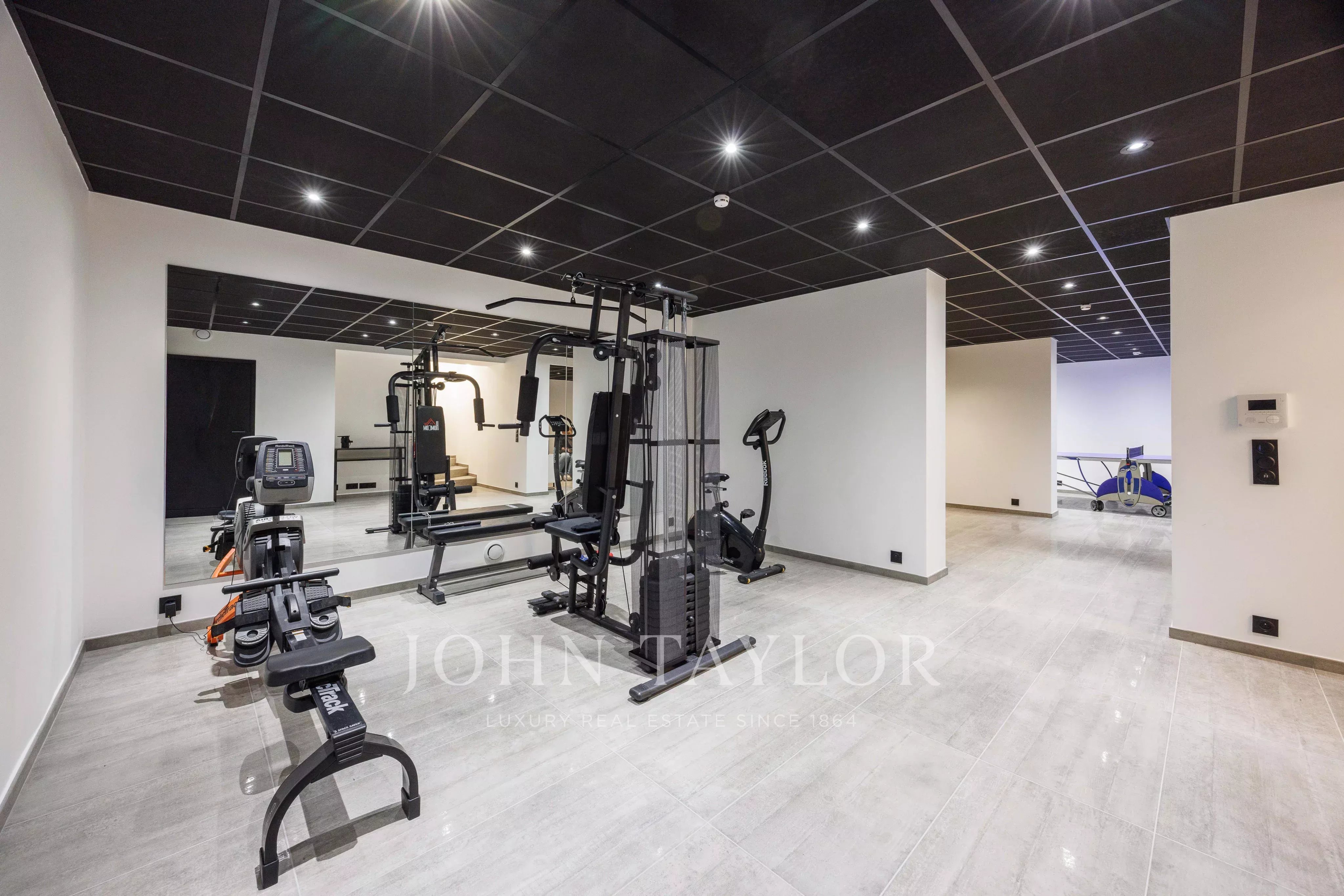 Additional features include a heated pool, games room, home cinema and fitness area, a petanque court (12 x 3 m), parking spaces and a garden shed.