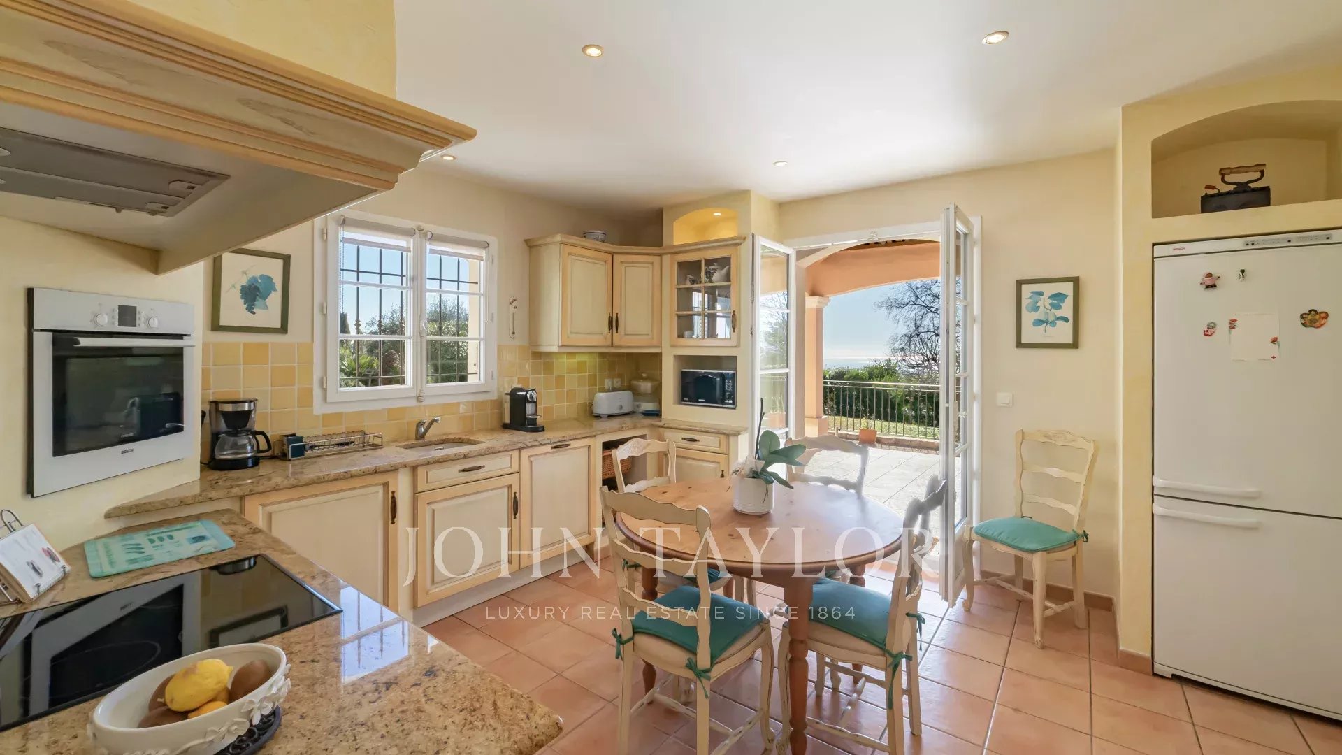 Nestled in a sought-after residential area, this elegant Provençal villa of approximately 158sq.m, featuring 4 bedrooms, offers an exceptional living environment. Set on a beautifully landscaped 1,500sq.m plot, it boasts a stunning swimming pool, panoramic sea views, and a lush, green setting.