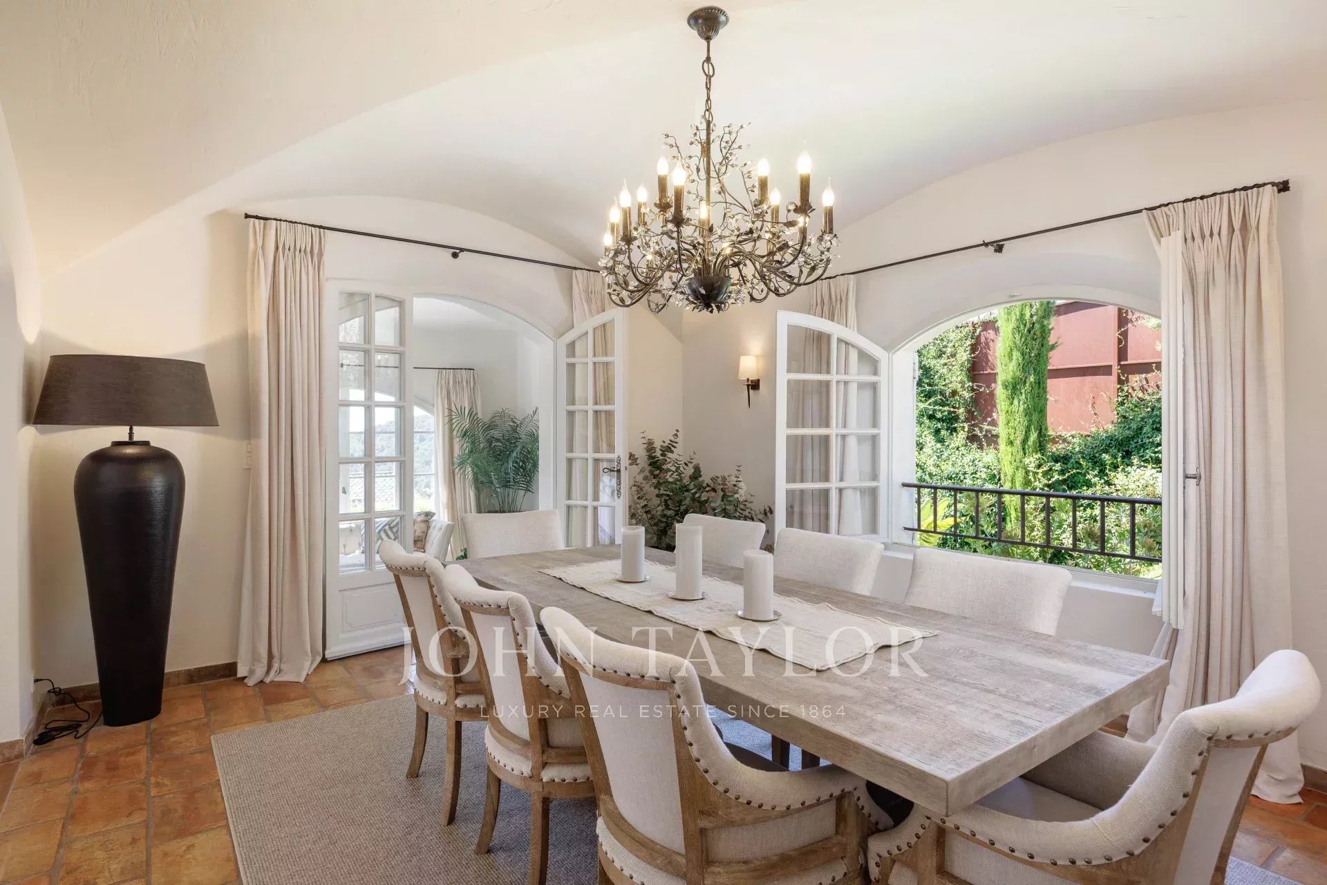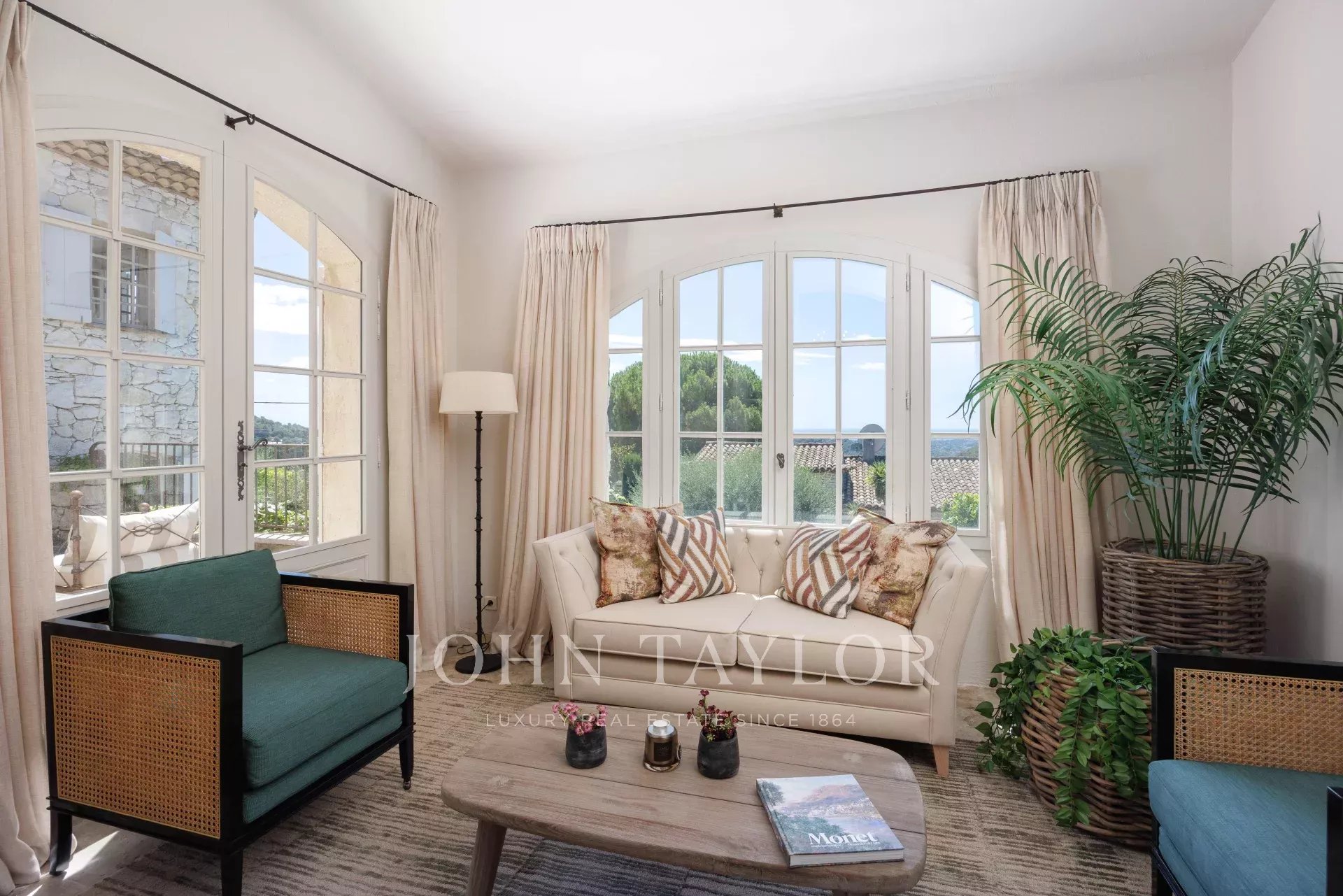 Located just a few minutes' walk from the lively village of Vence, the Cité des Arts, this 320 m² property, originally designed by renowned architect Svetchine and completely renovated in 2023 with noble materials and great taste, enjoys a quiet location and beautiful views all the way to the sea and Cap d'Antibes.
