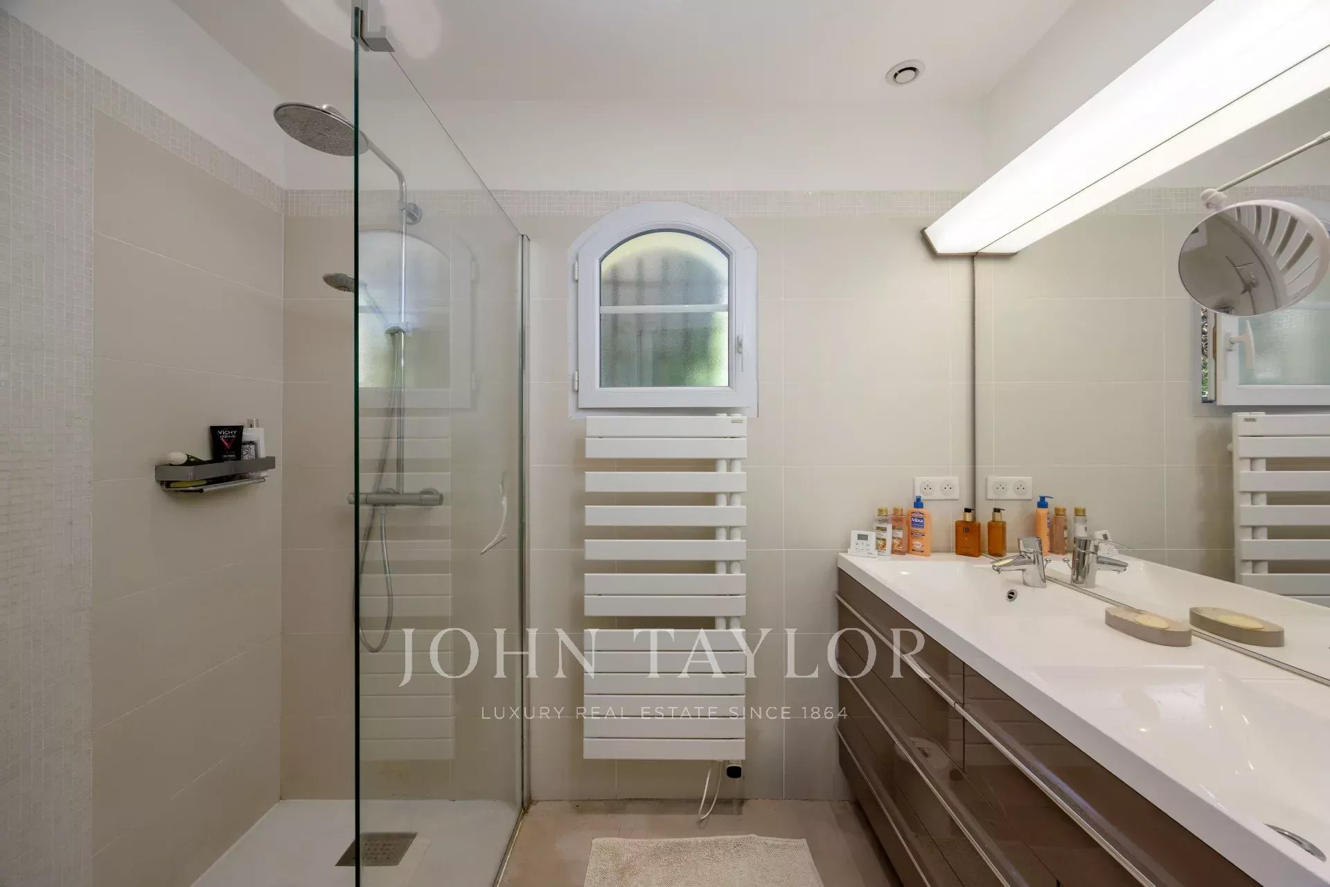 High-quality features include traditional construction with a full crawl space, heating via reversible heat pump air conditioning and underfloor heating, triple-glazed windows in the living room and kitchen, double glazing elsewhere, a central vacuum system, electric gate, and intercom. Ideally located, the property is close to the center of Vence (1.5 km), shops, schools, the sea, and Nice airport, offering the perfect balance of comfort, security, and convenience.