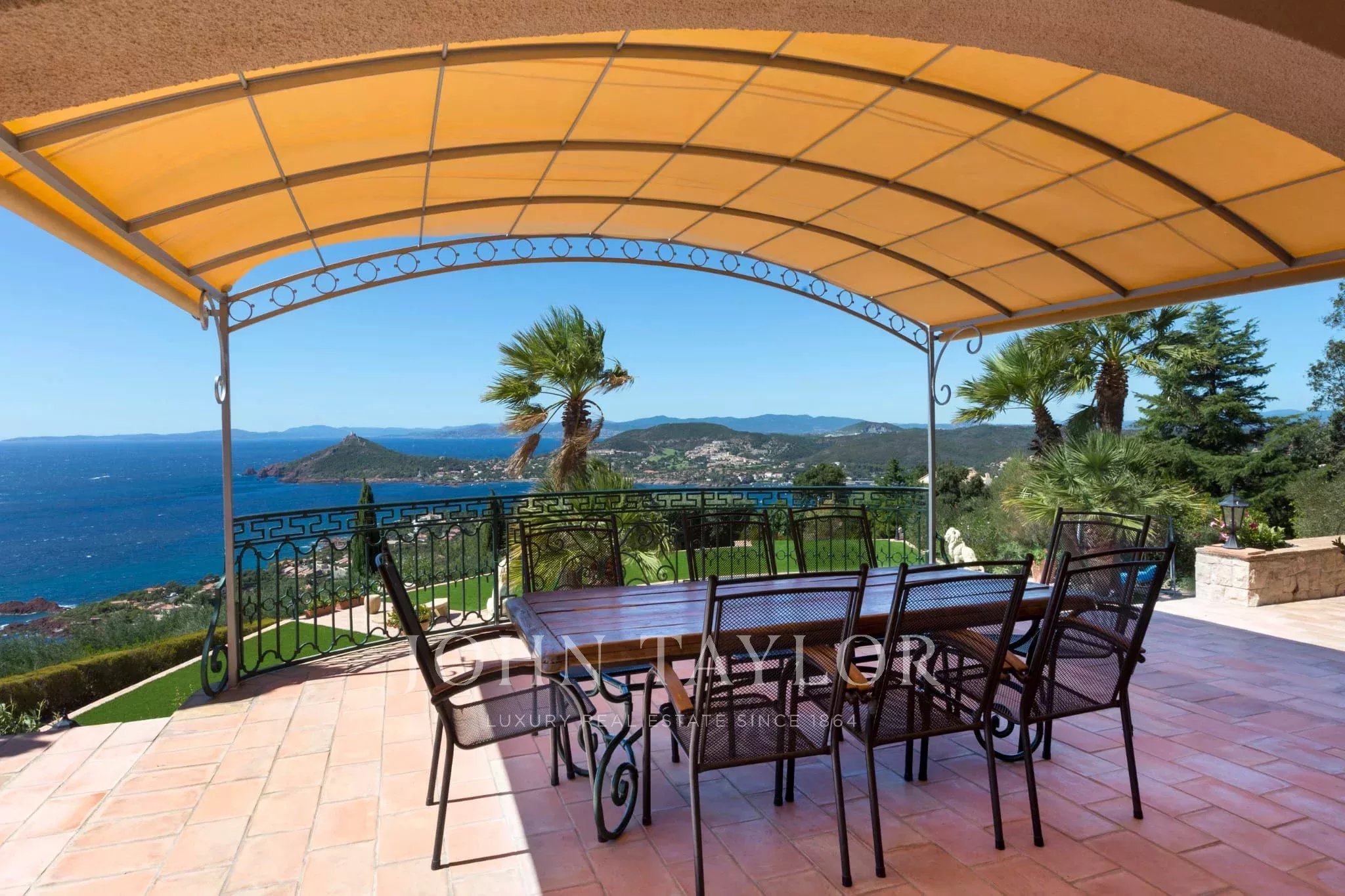 Perched above Agay within a private estate, this elegant character bastide enjoys a due south exposure and remarkable natural light throughout the day. The property commands a truly breathtaking sea view, overlooking the Bay of Agay, the Esterel hills and stretching as far as the Gulf of Saint-Tropez, undeniably one of the most striking panoramas on the entire French Riviera.
