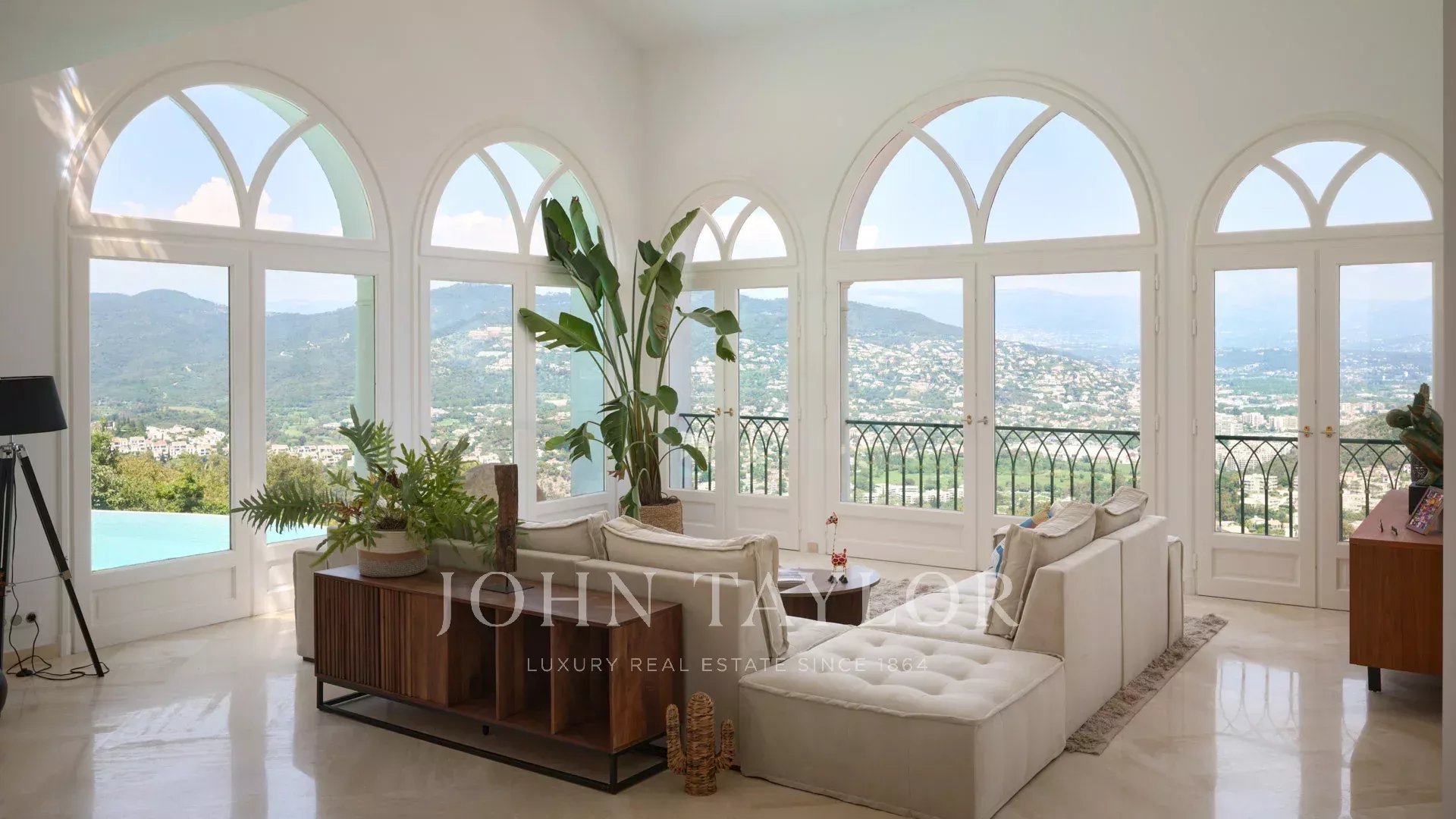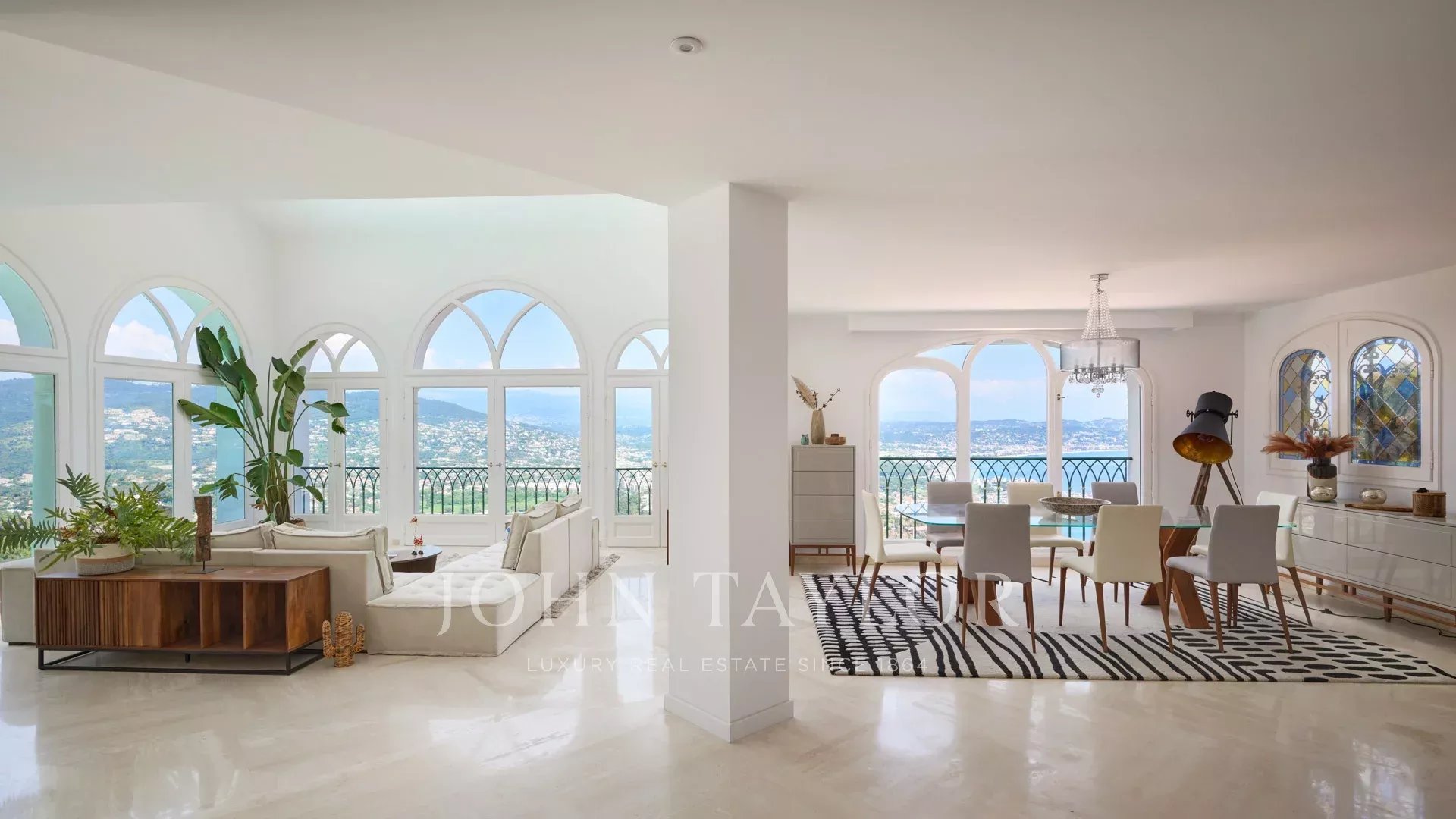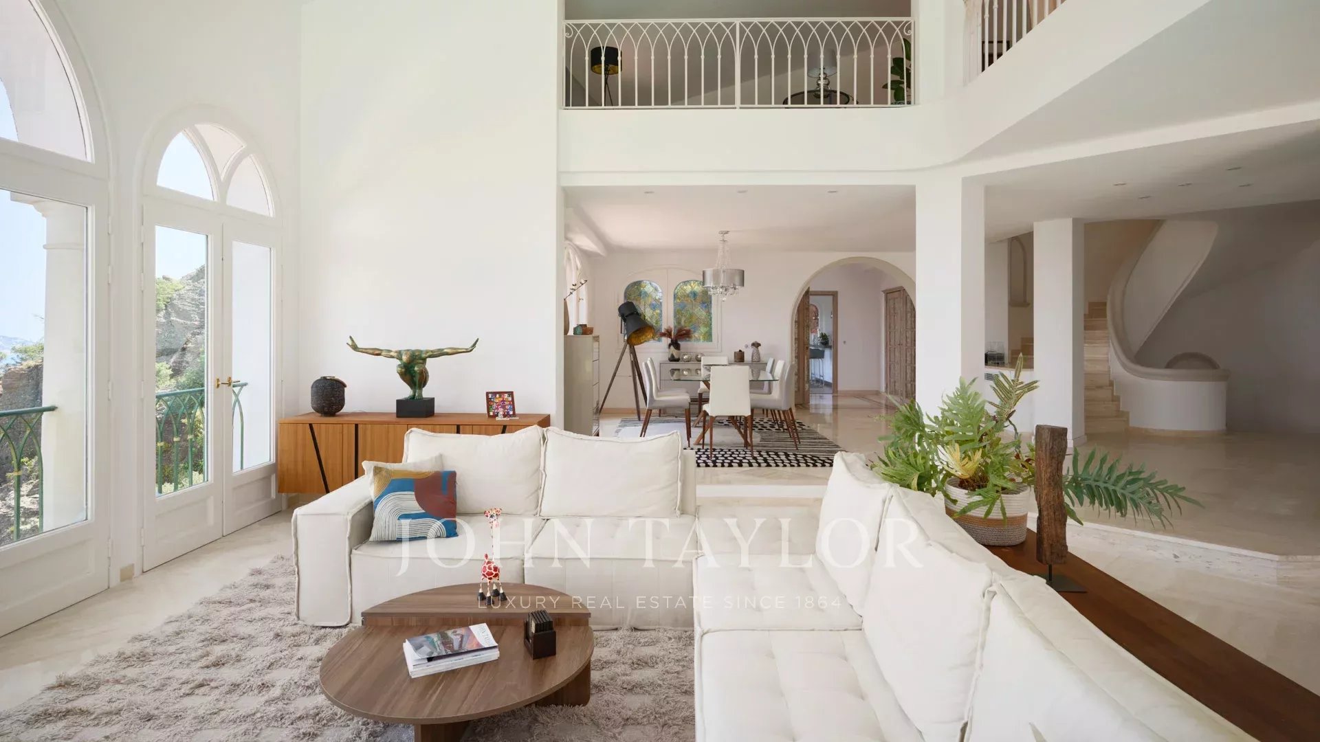 Splendid architect-designed villa set in a dominant position on a listed site, 5 minutes from the village and 15 minutes from Cannes, offering panoramic views of the sea and Cannes hinterland.