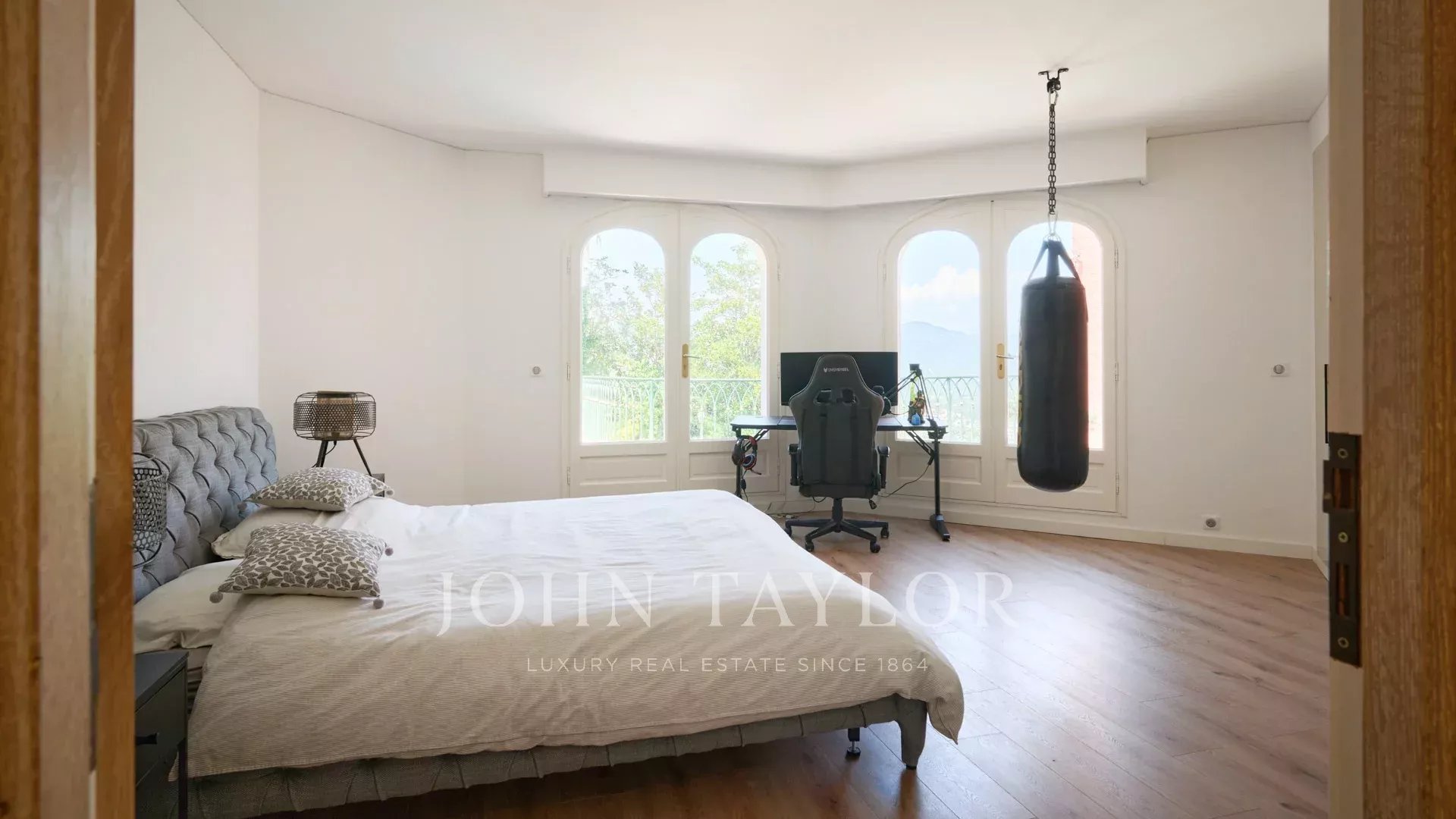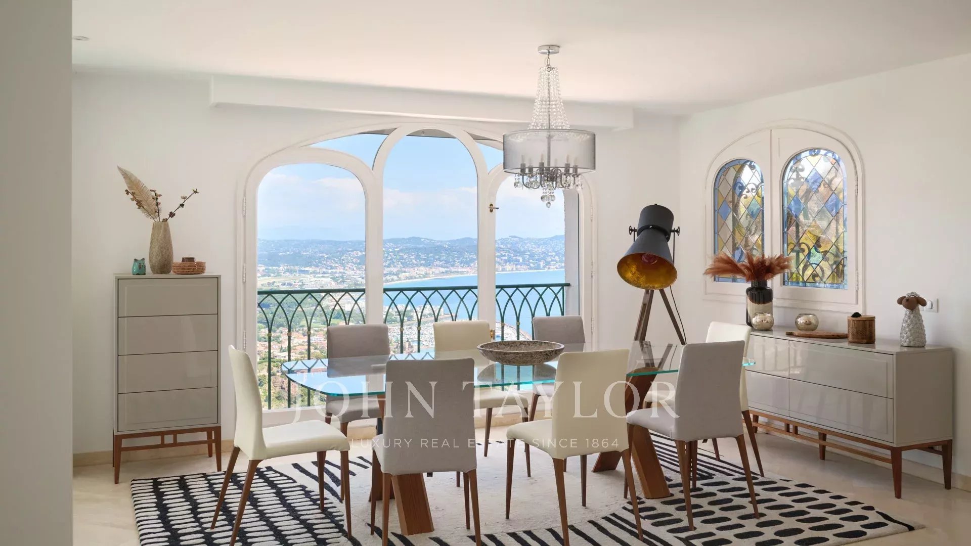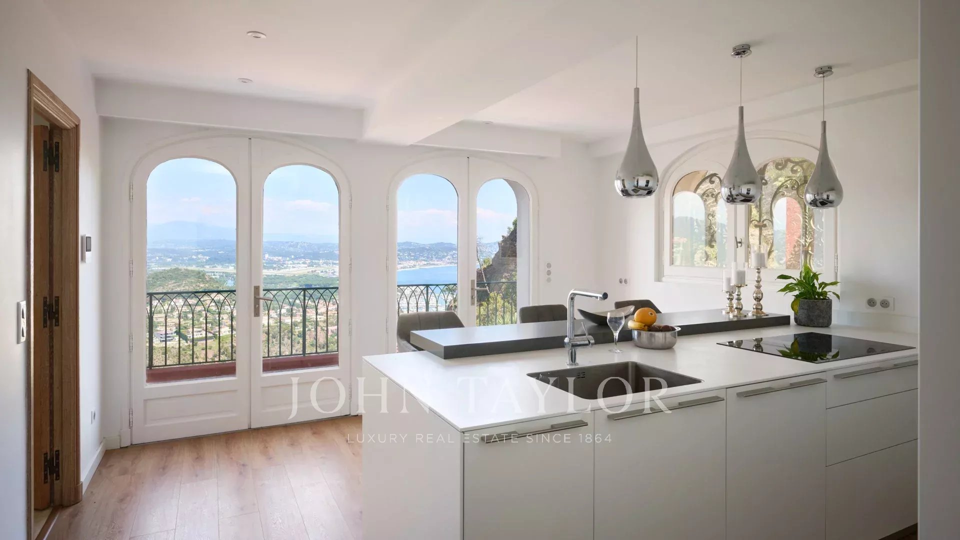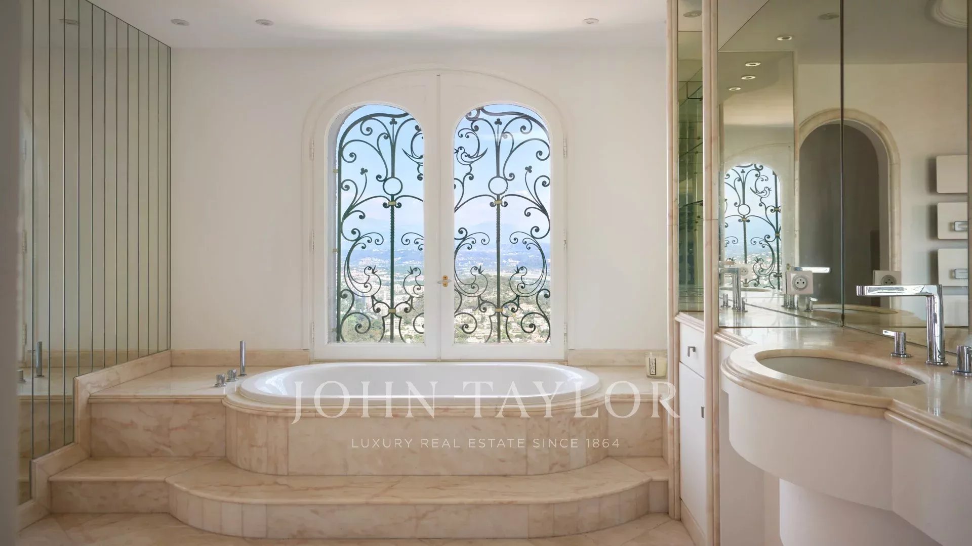 Splendid architect-designed villa set in a dominant position on a listed site, 5 minutes from the village and 15 minutes from Cannes, offering panoramic views of the sea and Cannes hinterland.