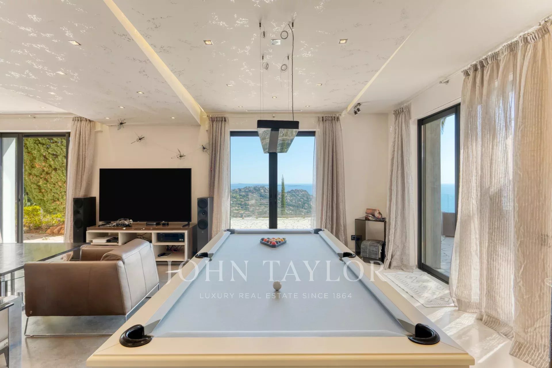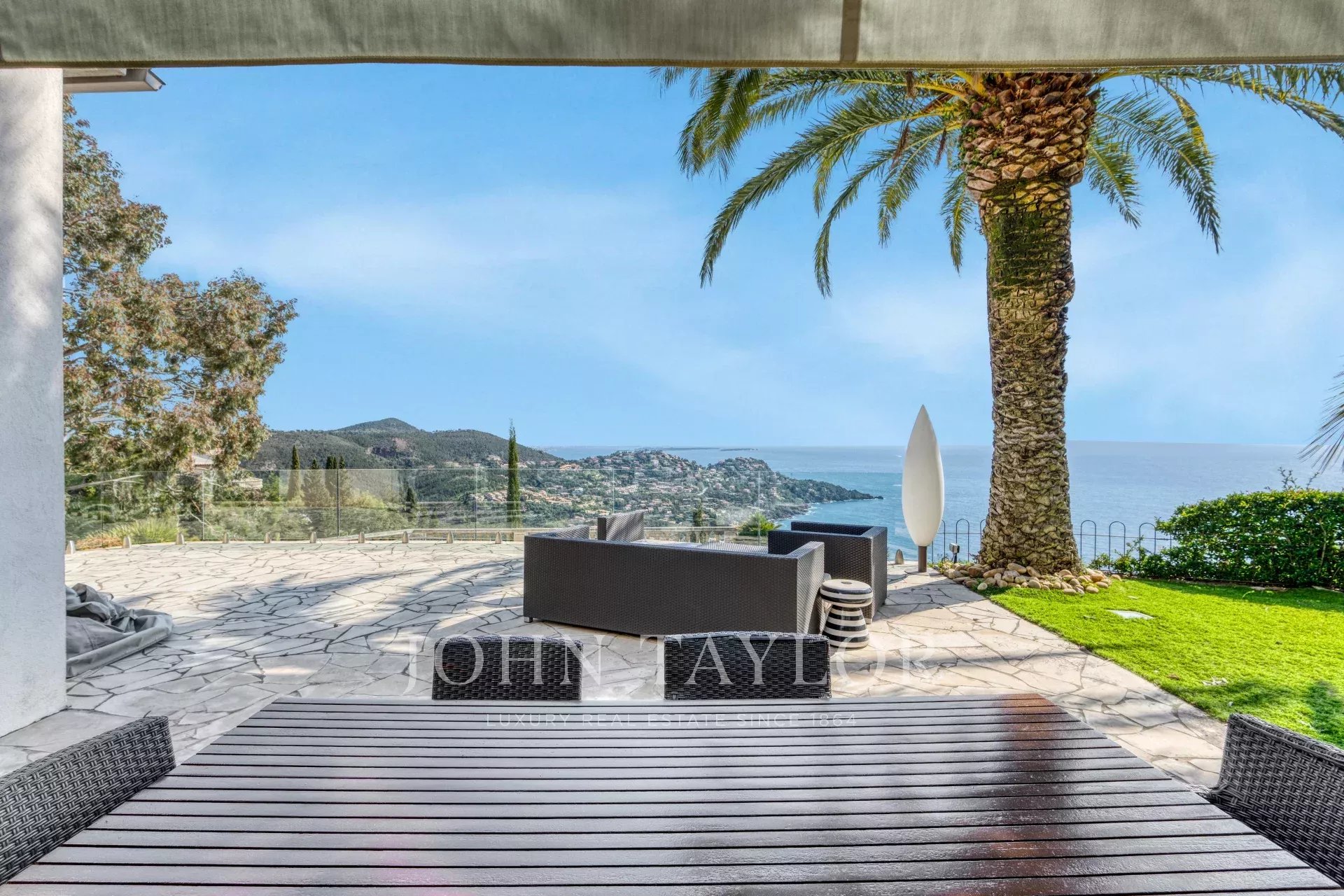 Situated on the heights of a gated estate in the Esterel, this villa boasts top-of-the-range features and a breathtaking panoramic sea view.