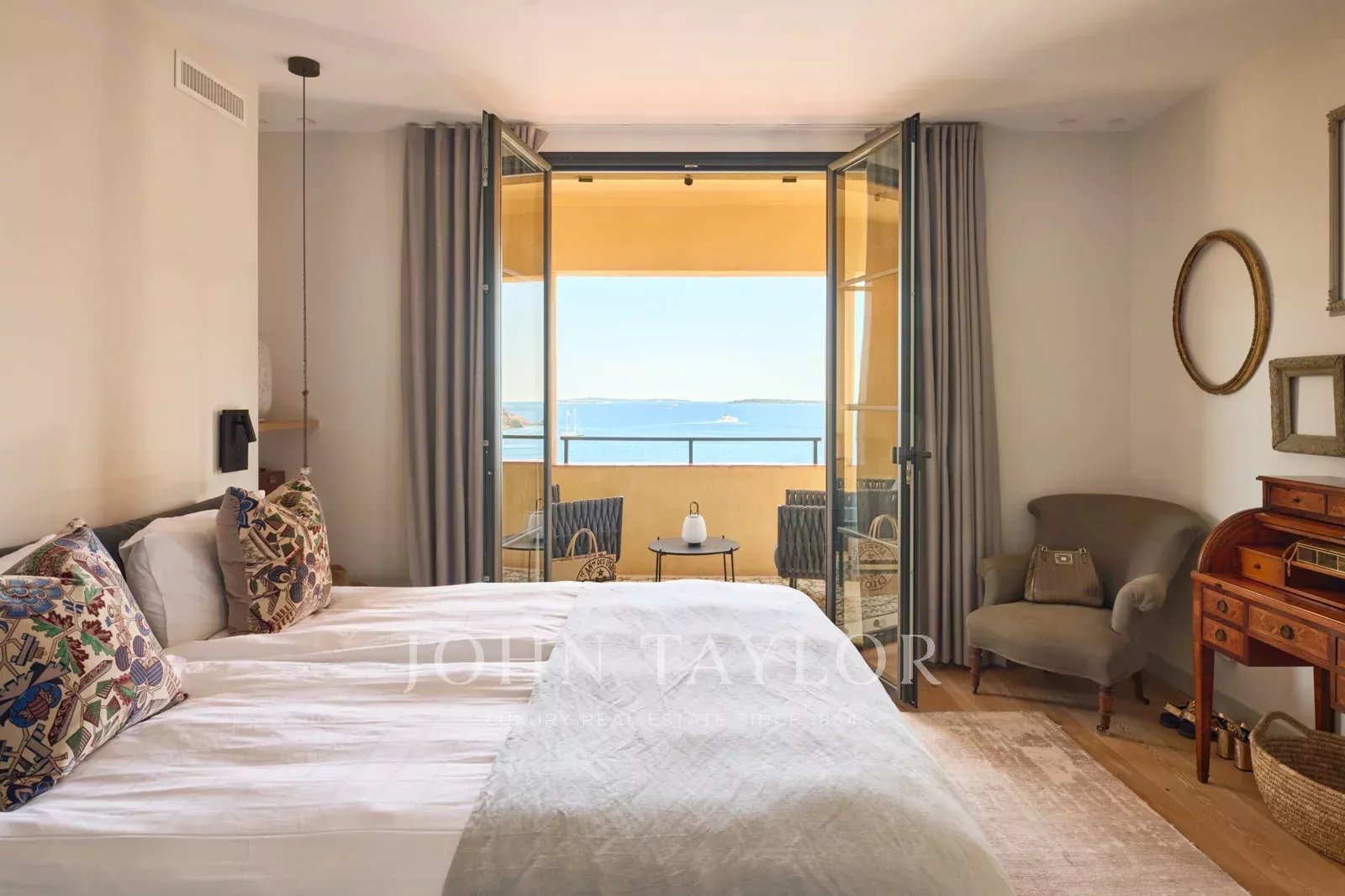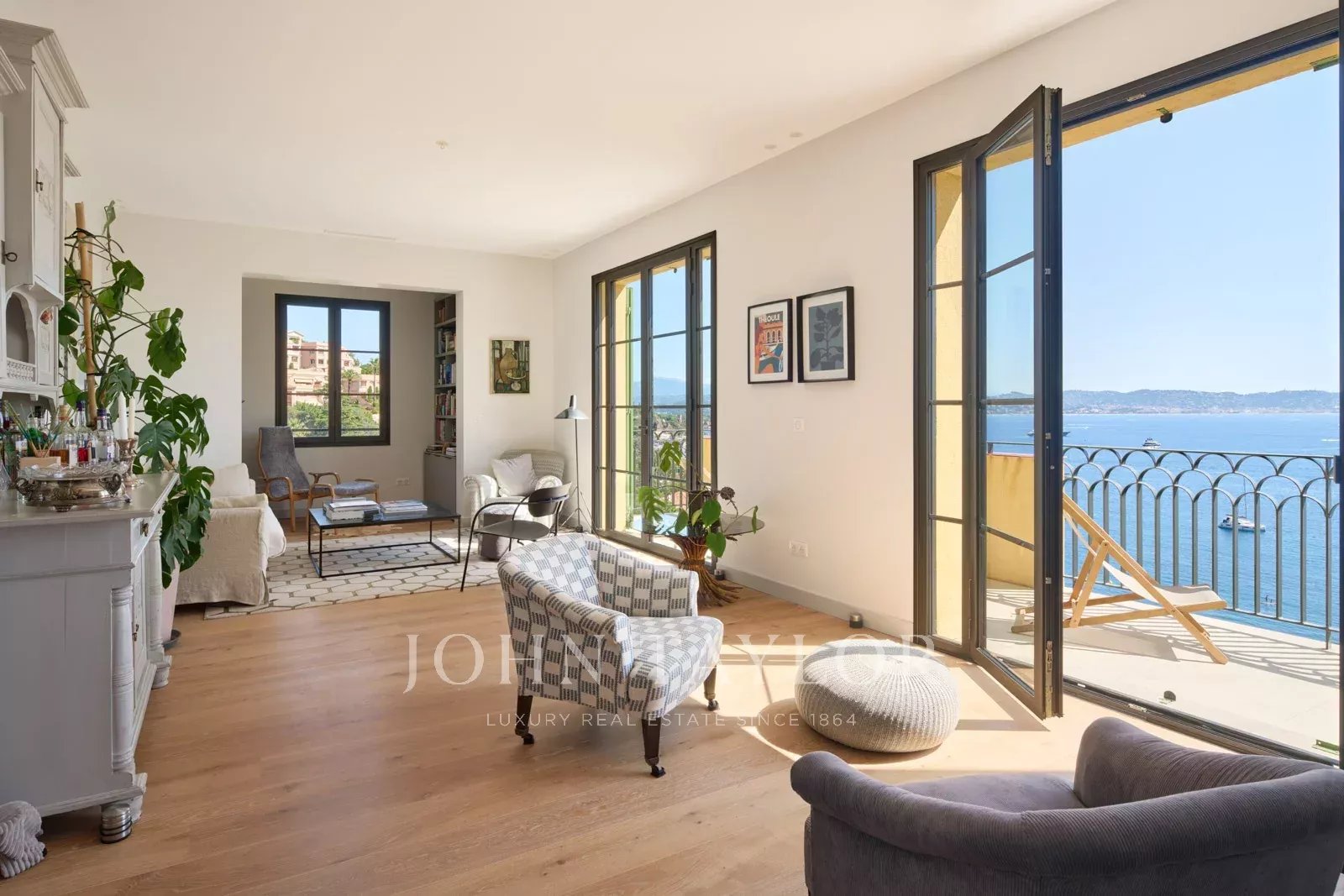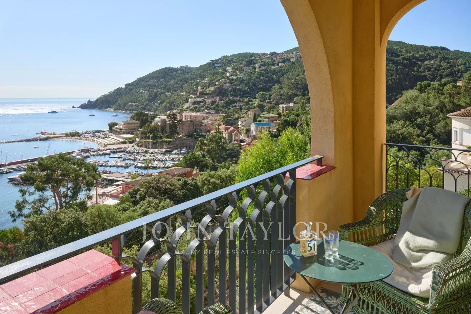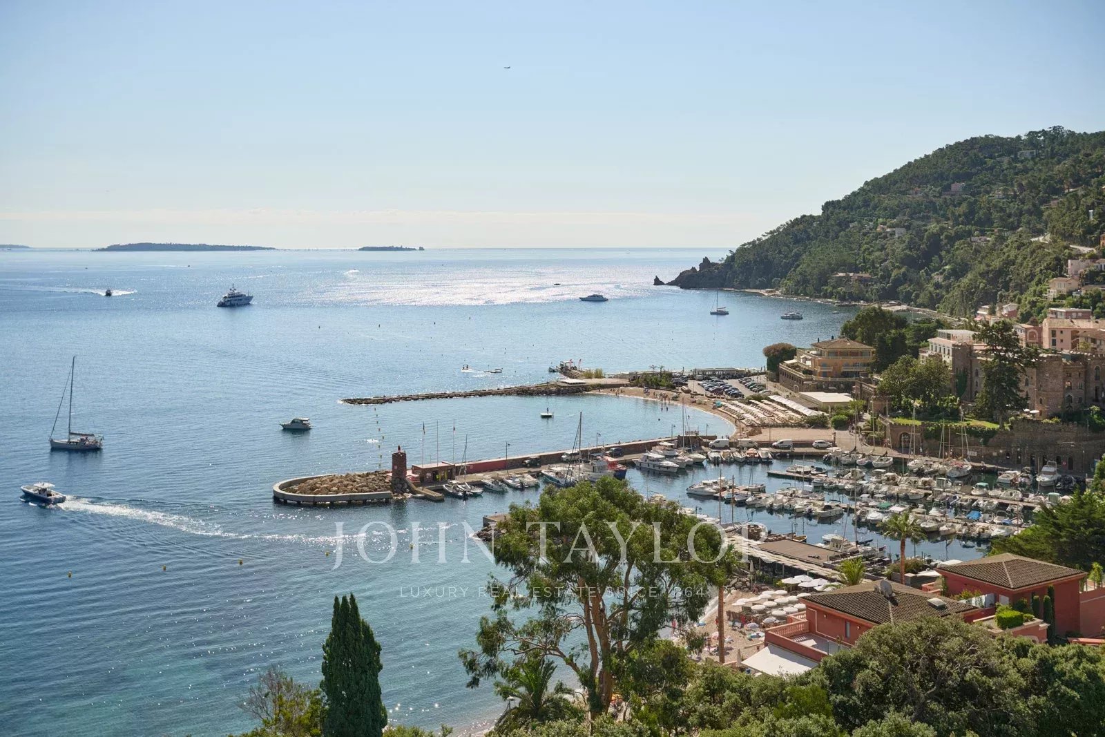 Located within walking distance of the village of Théoule-sur-Mer and the sea, this fully renovated villa offers high-end amenities and spectacular views of the Bay of Cannes from every room.