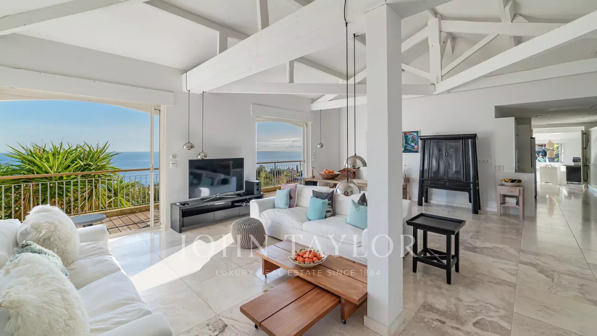 Located in a quiet residential neighborhood, just 10 minutes from shops and the village of Théoule-sur-Mer, this light-filled, south-facing house enjoys superb views of the sea and the Lérins Islands.
