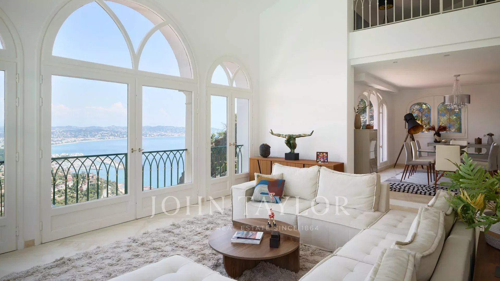 Splendid architect-designed villa set in a dominant position on a listed site, 5 minutes from the village and 15 minutes from Cannes, offering panoramic views of the sea and Cannes hinterland.
