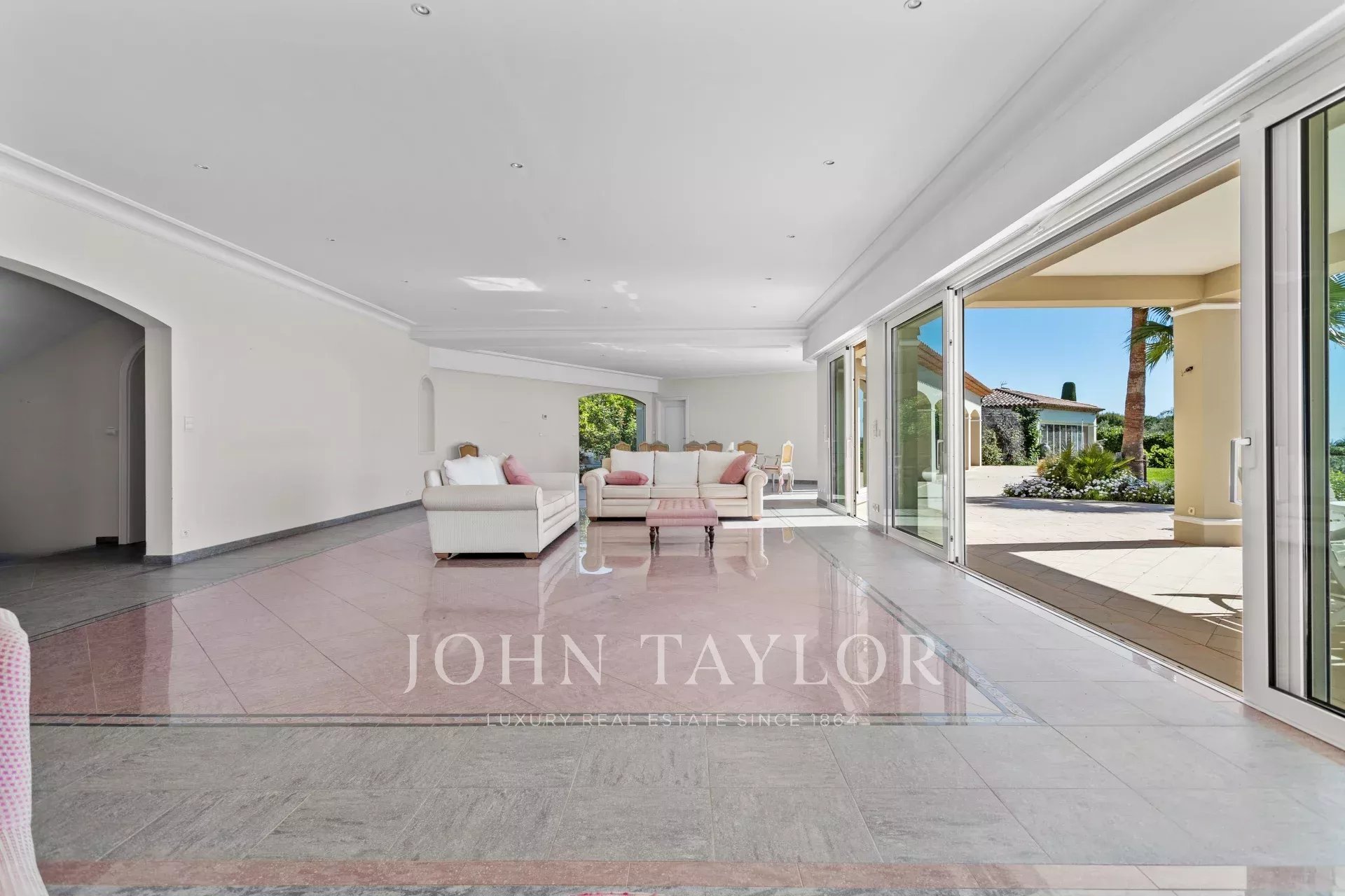 It comprises a magnificent entrance hall, a vast reception room, a fitted kitchen, four en suite bedrooms and a study. A large covered terrace with barbecue area and summer lounge completes the living space.