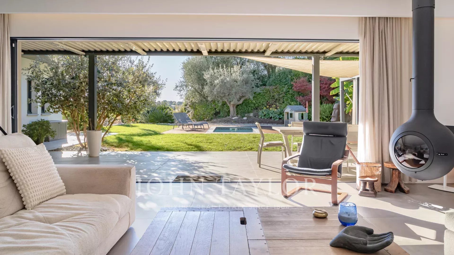 Beautiful contemporary single-storey villa, in a private gated domaine, set in a privileged location overlooking the protected Domaine des Aspres. Recently built, the property has been finished to a high standard both inside and out, creating a serene and relaxing atmosphere in complete tranquillity. Thoughtfully designed, the villa enjoys open views throughout.