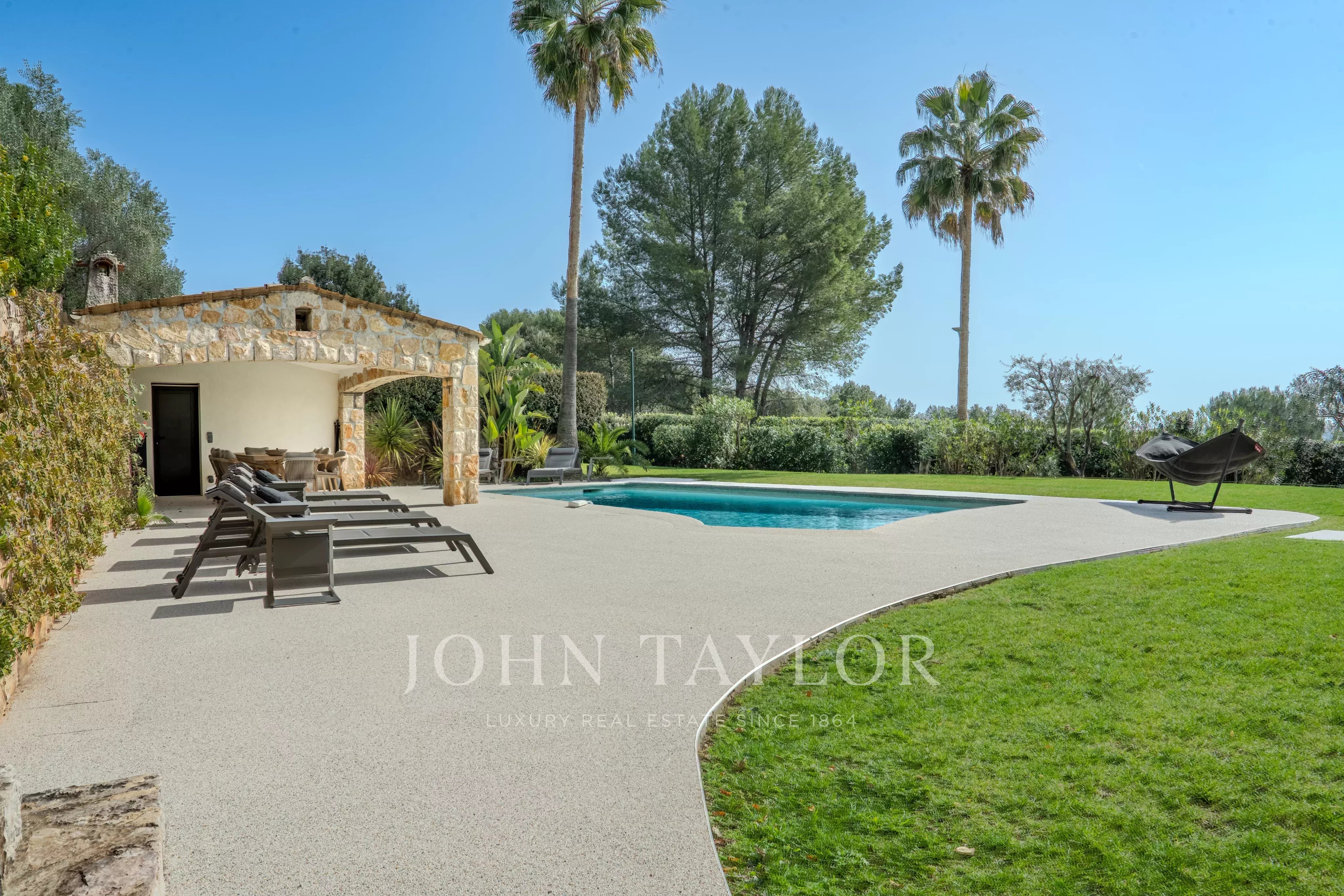 EXCLUSIVE: Located in one of Biot's most desirable areas, this exceptional property offers approximately 364 m² of living space in the heart of magnificent landscaped grounds of around 4,000 m², featuring panoramic views of the surrounding hills and the sea.
