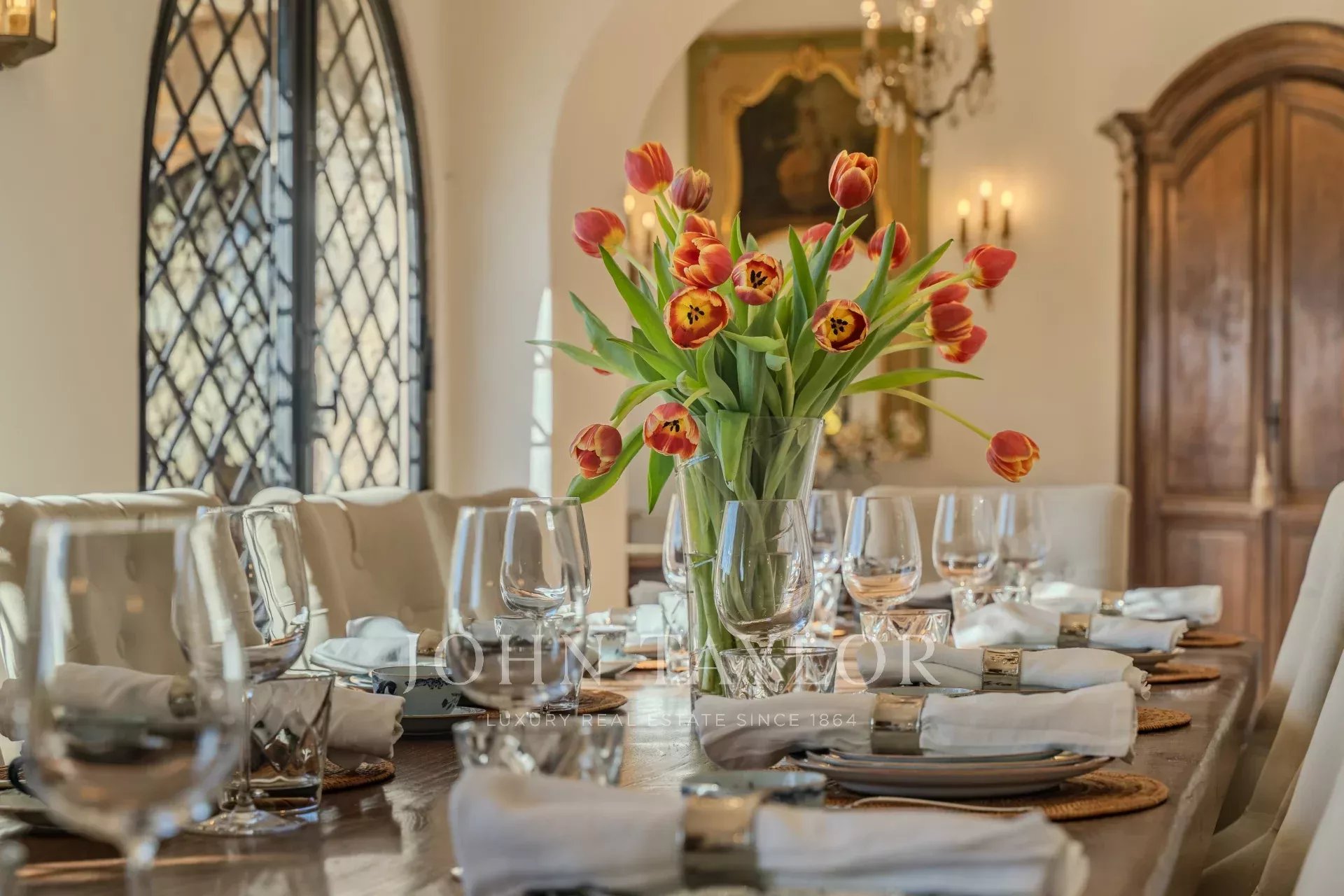 On the garden level, the Provençal kitchen – with its own separate entrance and dating from 1784 – opens onto a bright dining room that leads out to a spacious terrace.