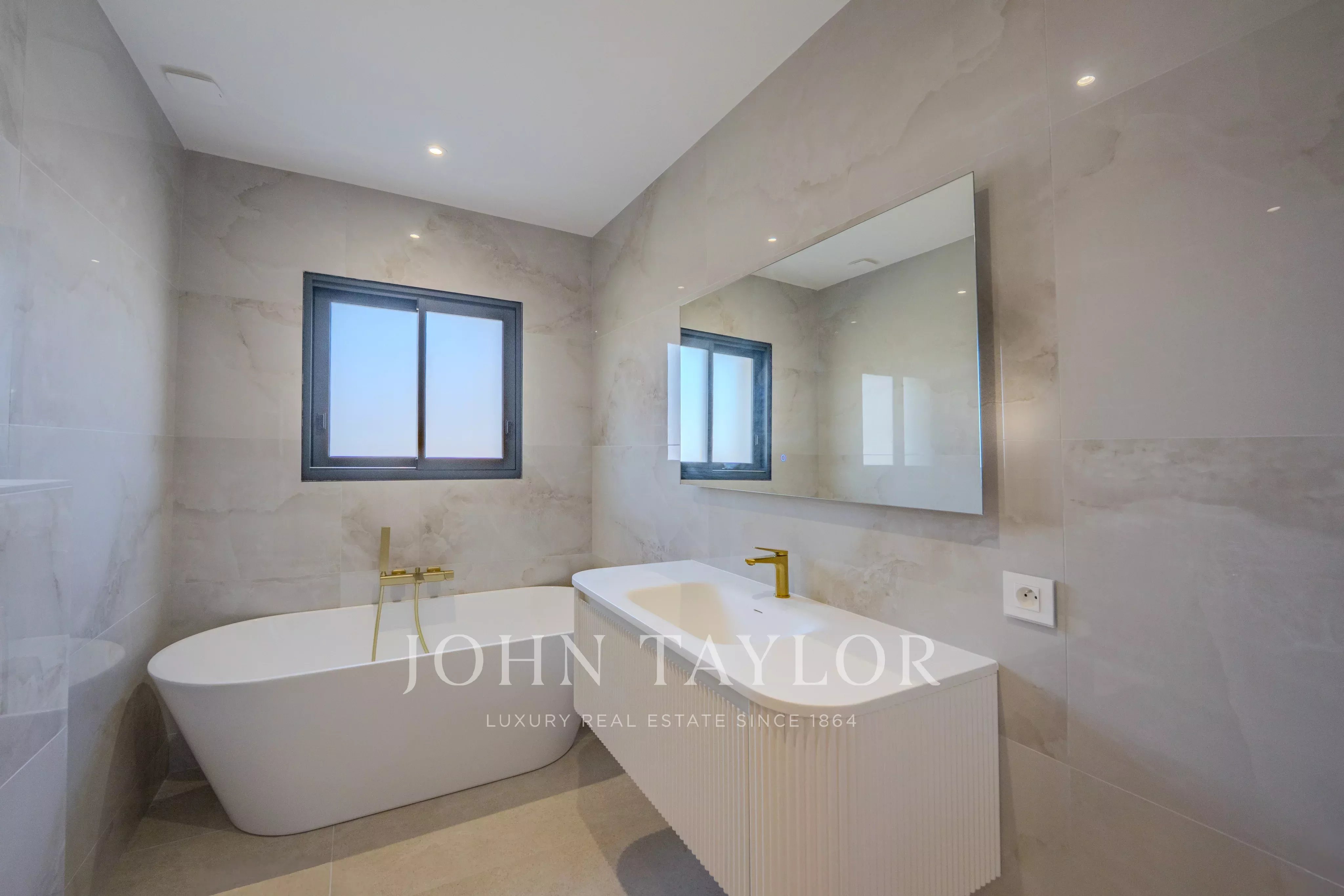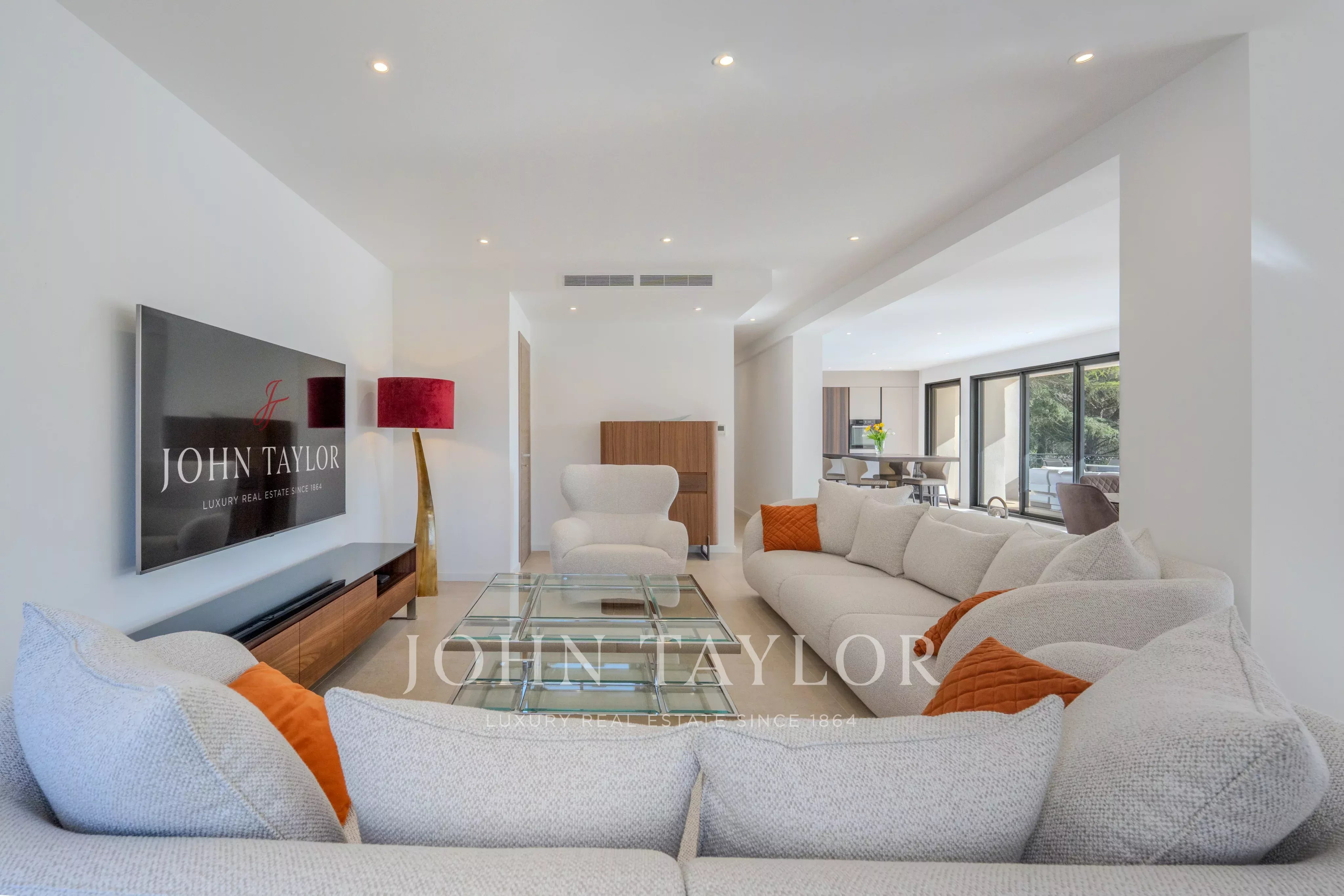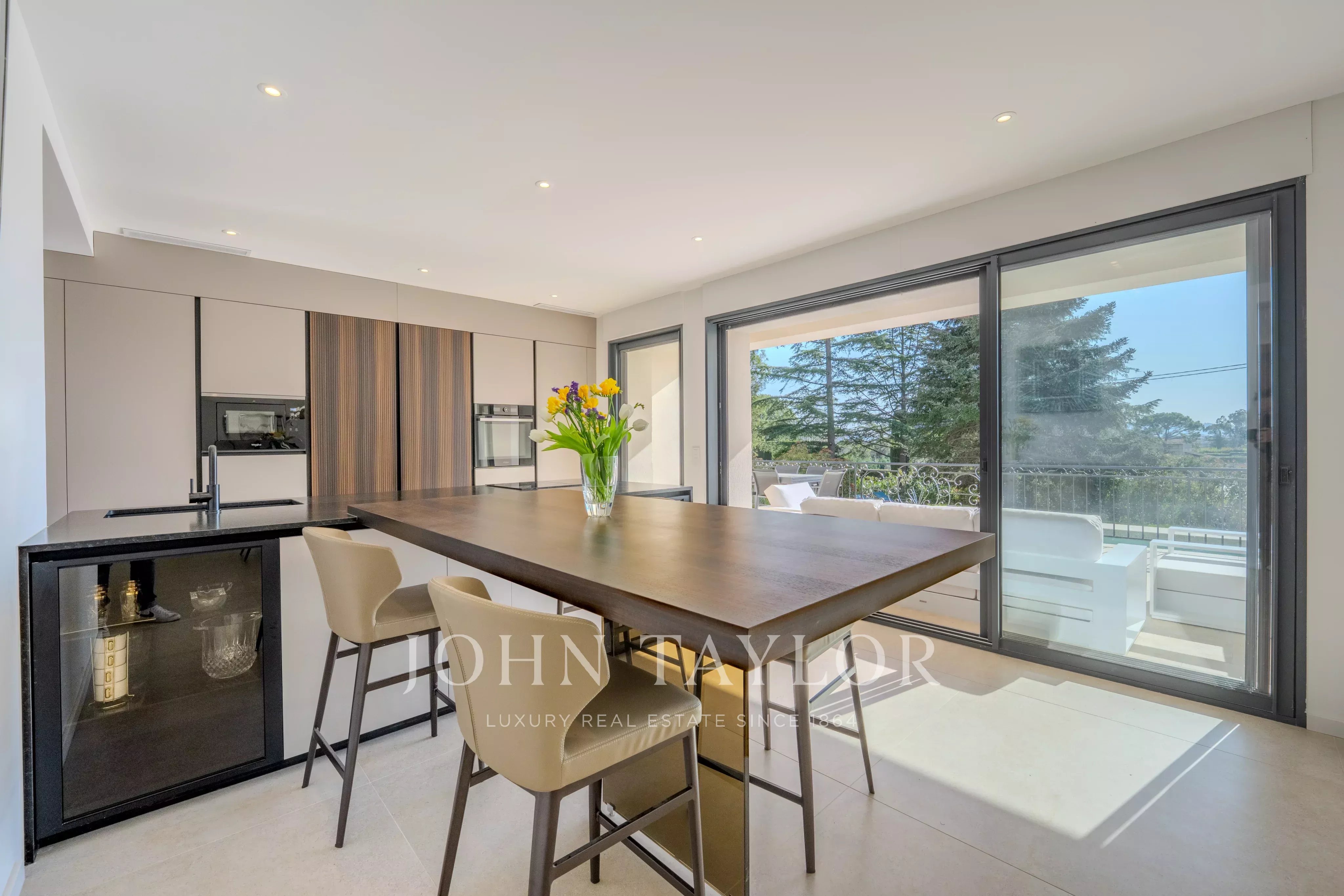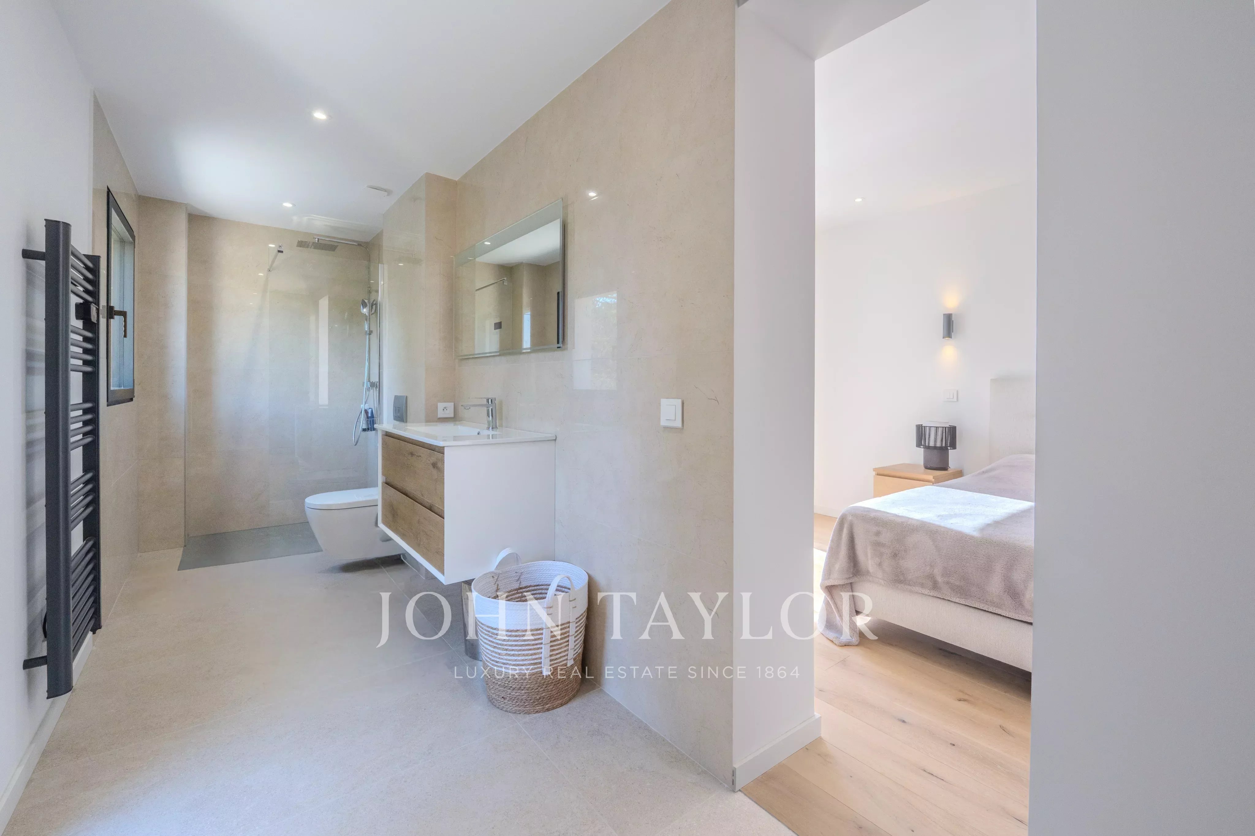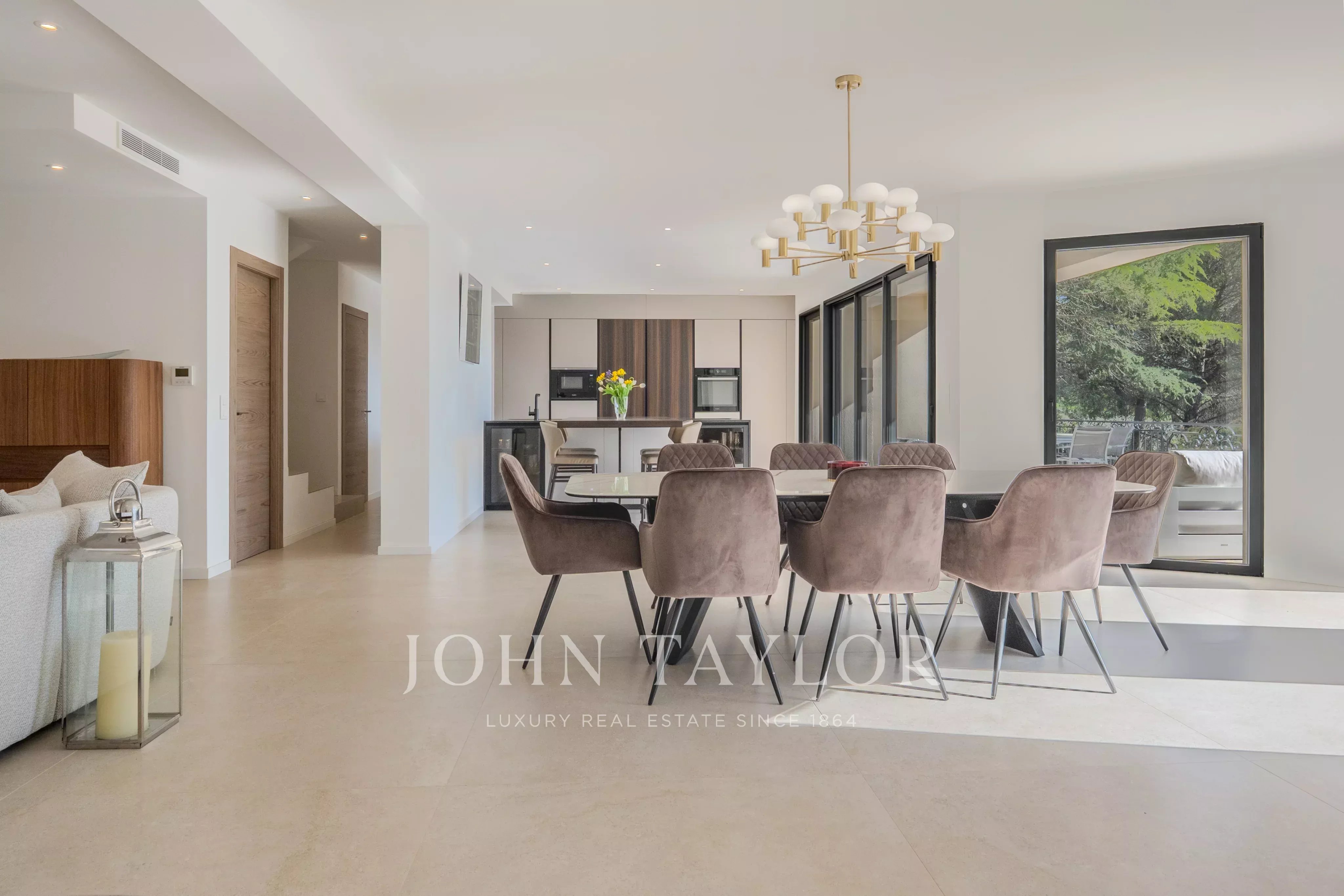 Developing about 320 m² (' 260 m2 + 60 m2 semi-basement converted), the villa has undergone a complete renovation with particularly meticulous finishes. The reception areas, flooded with light, open onto a large living room with a fully equipped contemporary kitchen, in natural continuity with the terraces and landscaped garden.