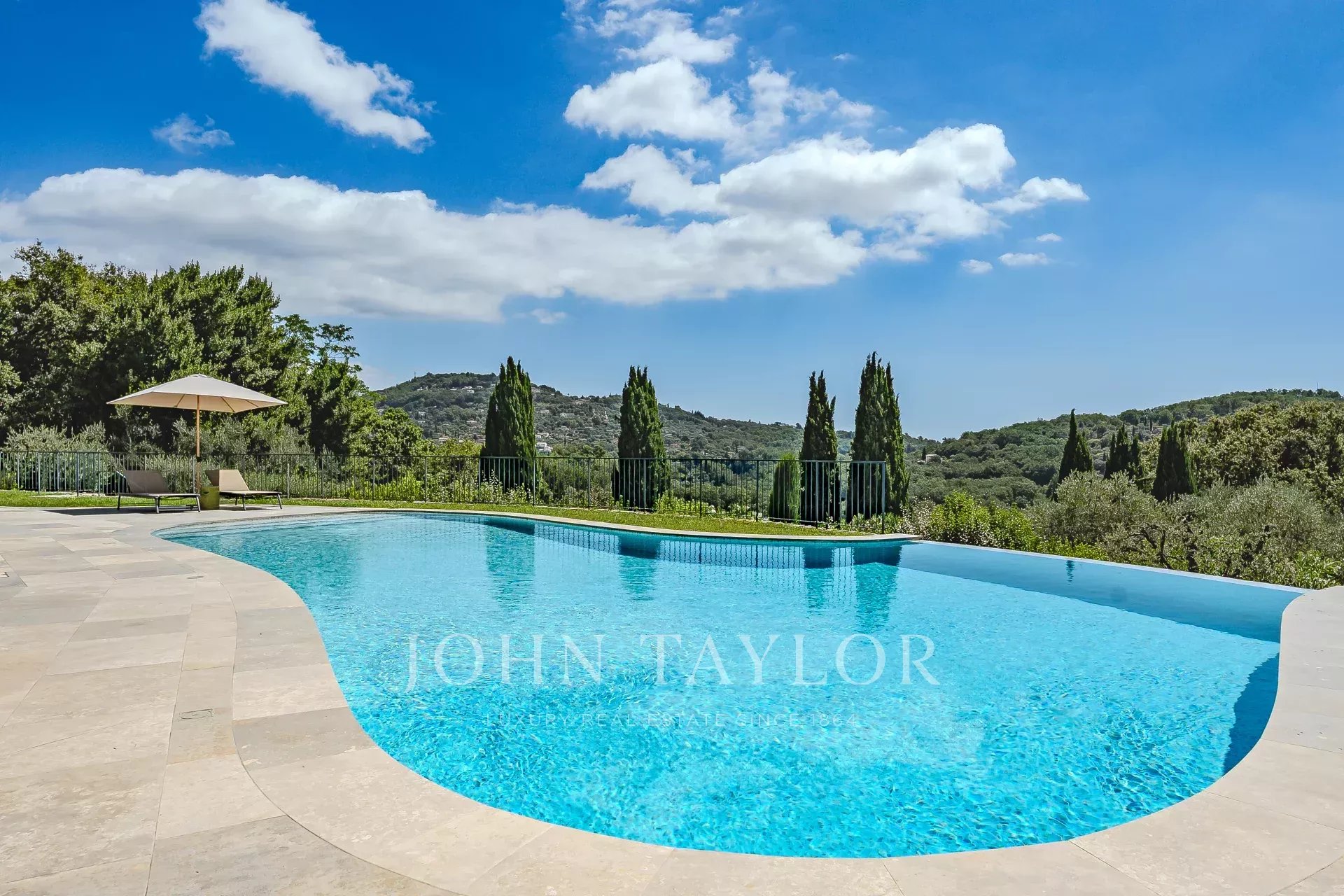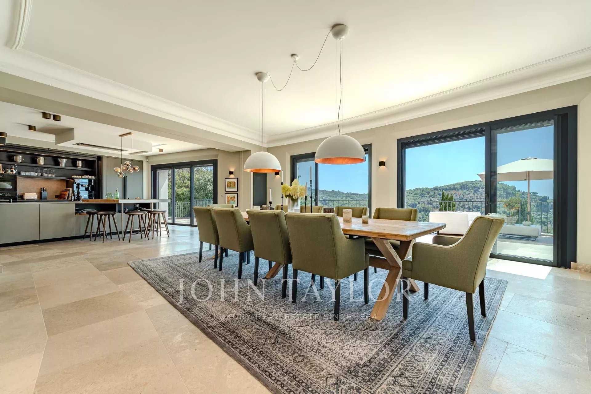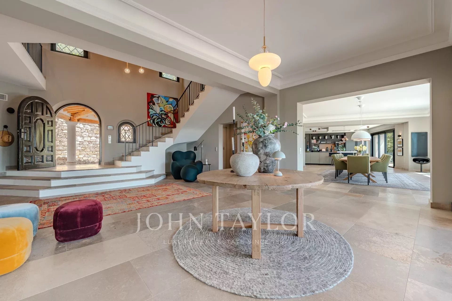 Nestled in the picturesque hills of the backcountry of Cannes, this recently renovated Provençal villa epitomises comfort, luxury, modernity and unrivalled quality, coupled with breathtaking panoramic views as far as the bay of Mandelieu.