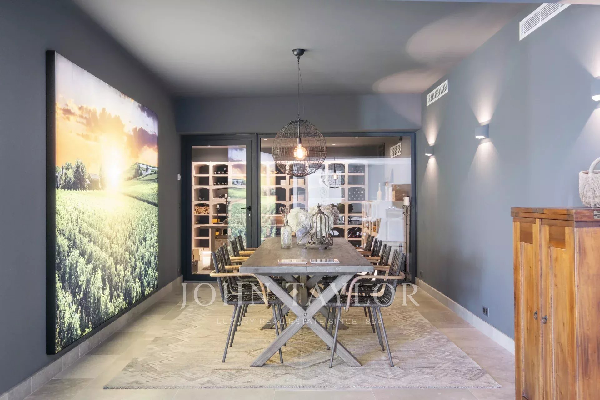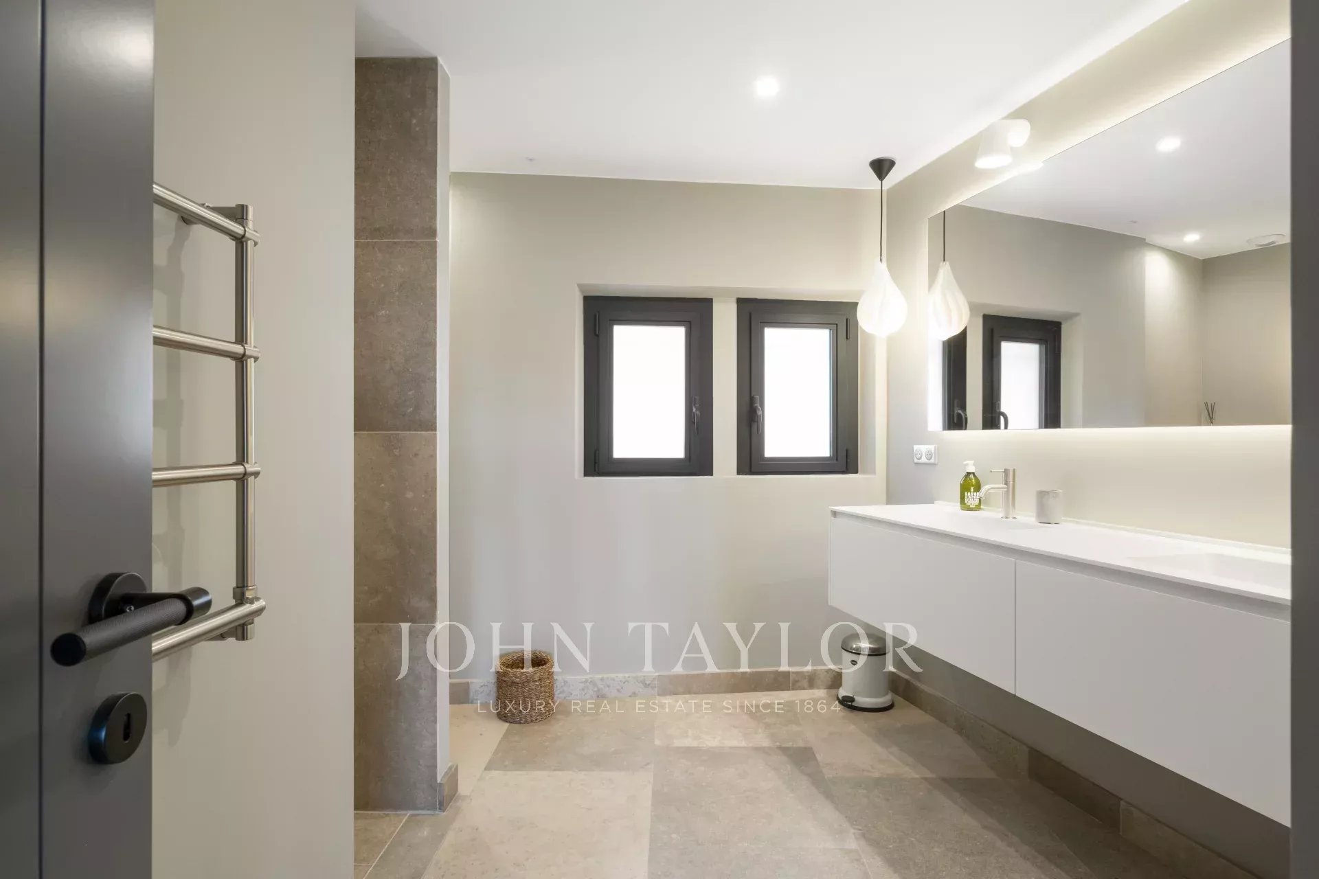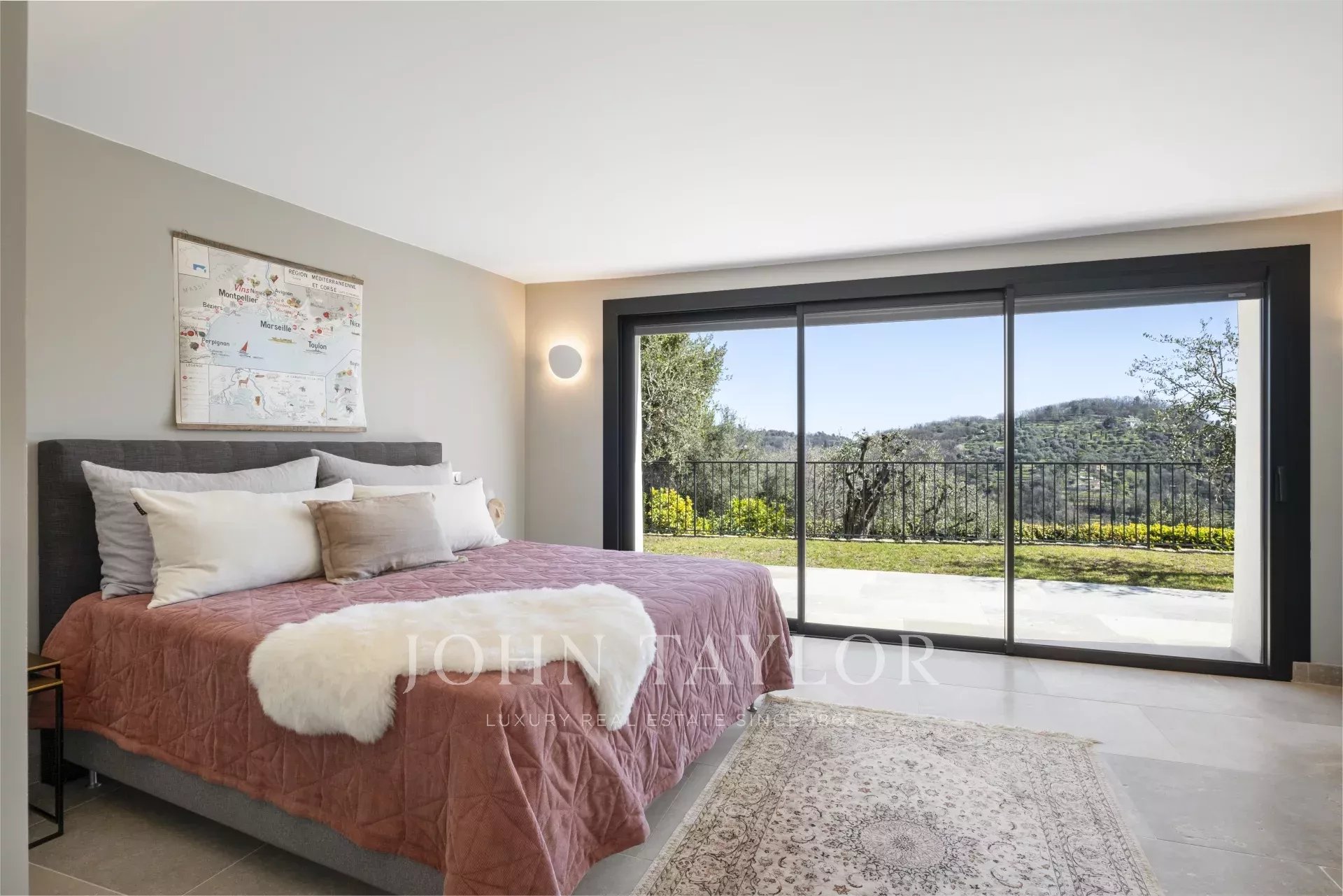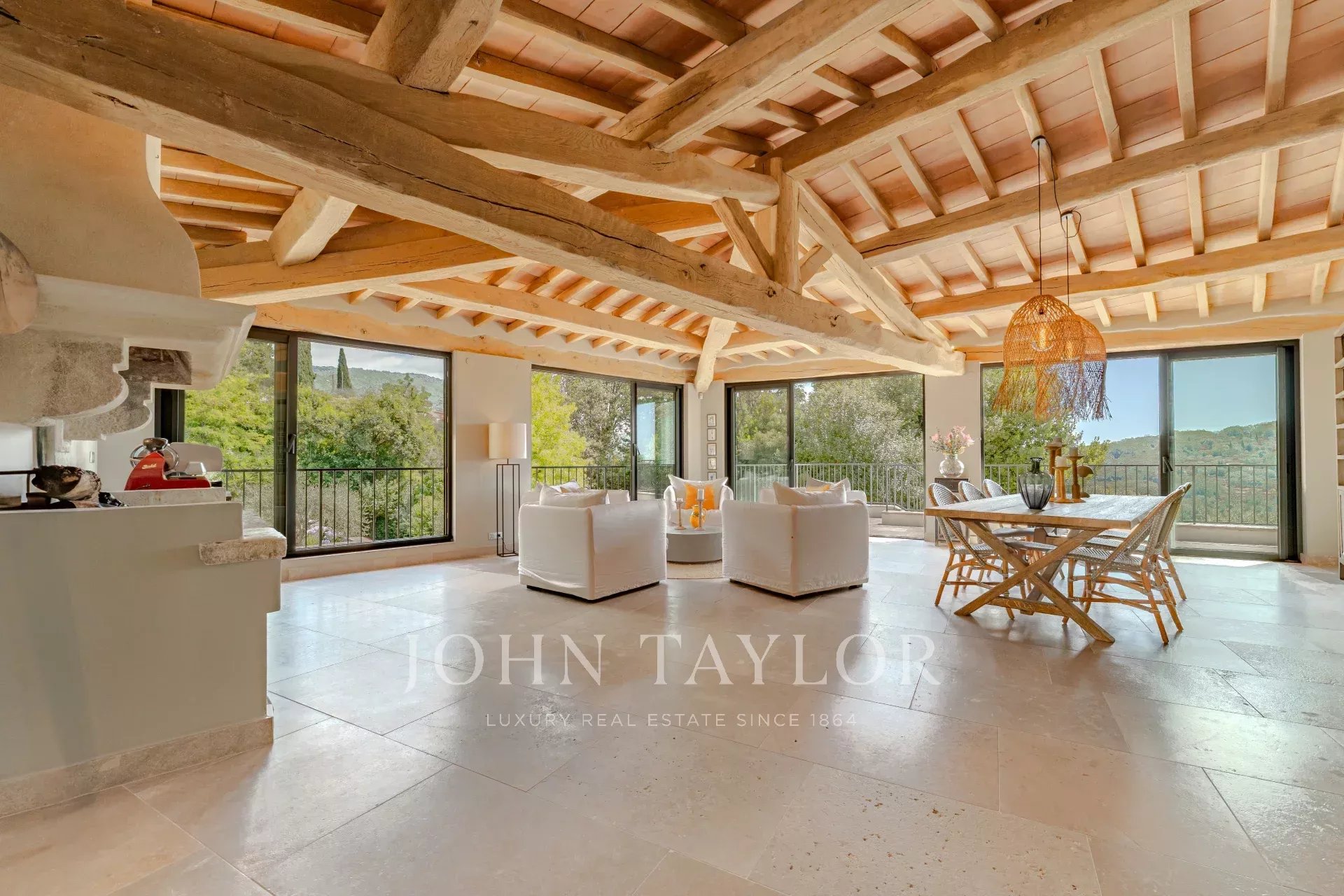 Nestled in the picturesque hills of the backcountry of Cannes, this recently renovated Provençal villa epitomises comfort, luxury, modernity and unrivalled quality, coupled with breathtaking panoramic views as far as the bay of Mandelieu.