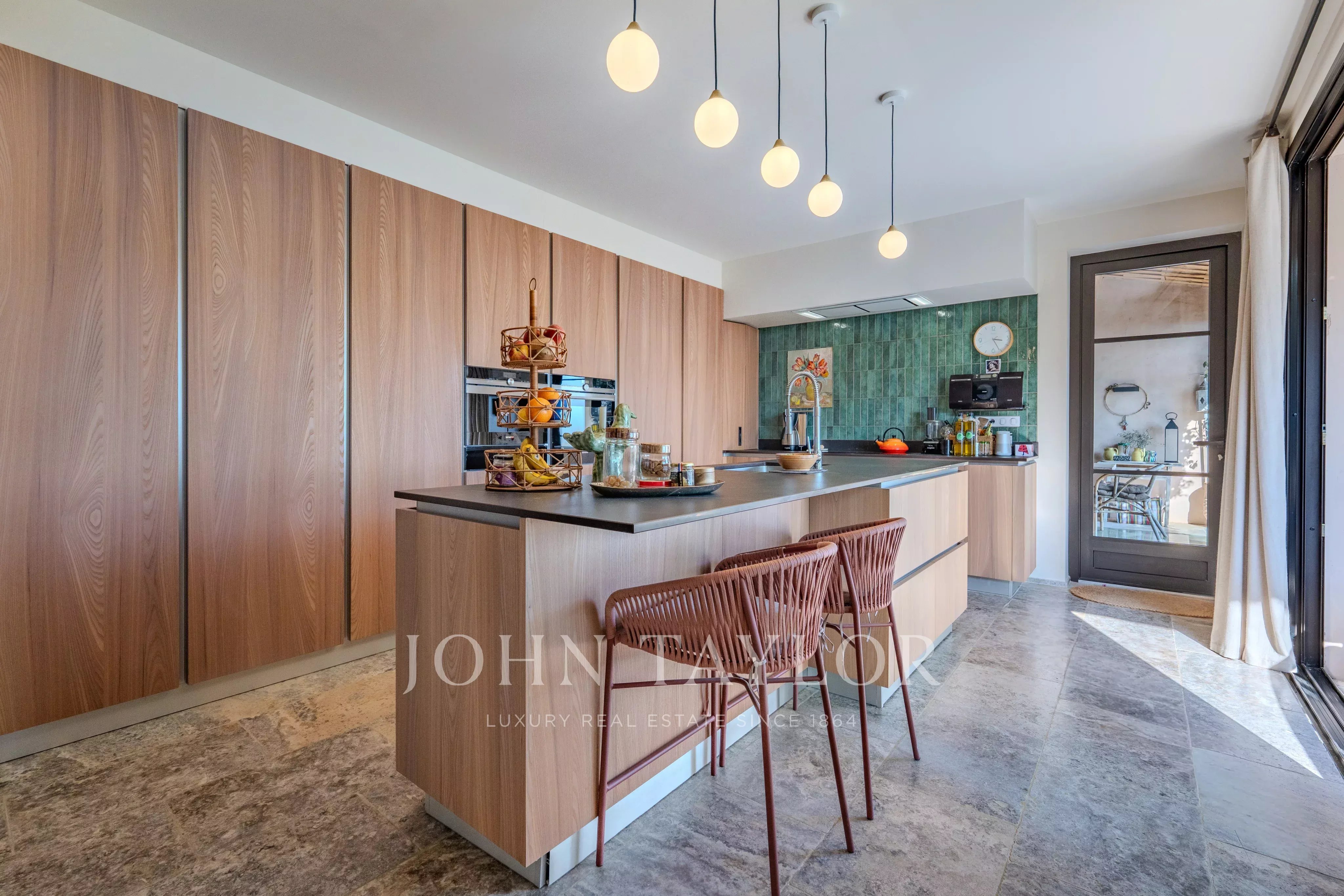 Bathed in natural light, the villa captivates with its generous proportions and refined atmosphere. The impressive living room, enhanced by a fireplace and soaring ceilings of approximately 3.20 metres, flows seamlessly into an inviting dining area. The fully fitted, high-specification kitchen features an adjoining pantry and laundry room, combining elegance with practicality. Expansive pocket sliding glass doors open onto a superb terrace, a fully equipped summer kitchen, and a workshop, creating a perfect harmony between indoor and outdoor living and embracing the essence of the Mediterranean lifestyle.