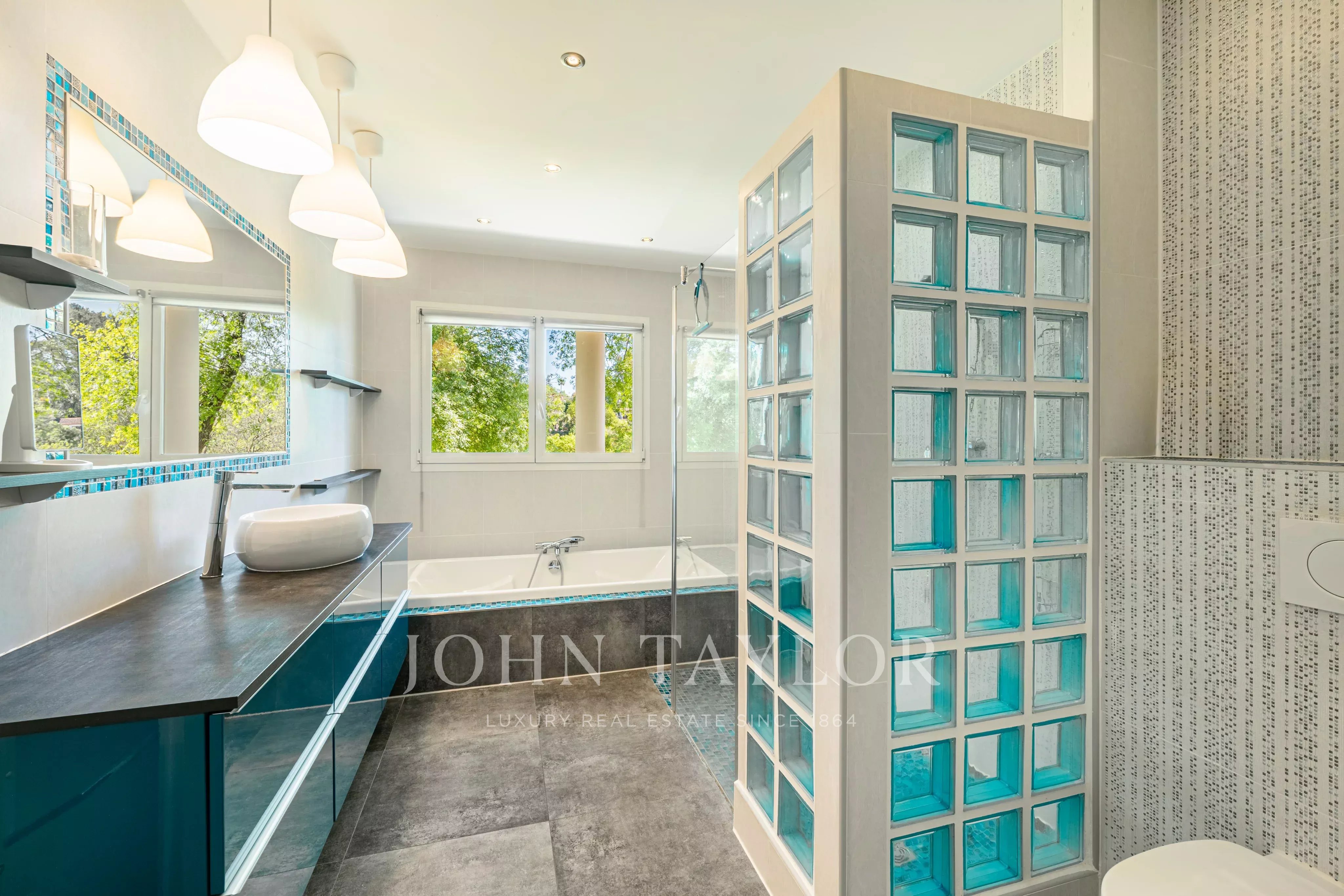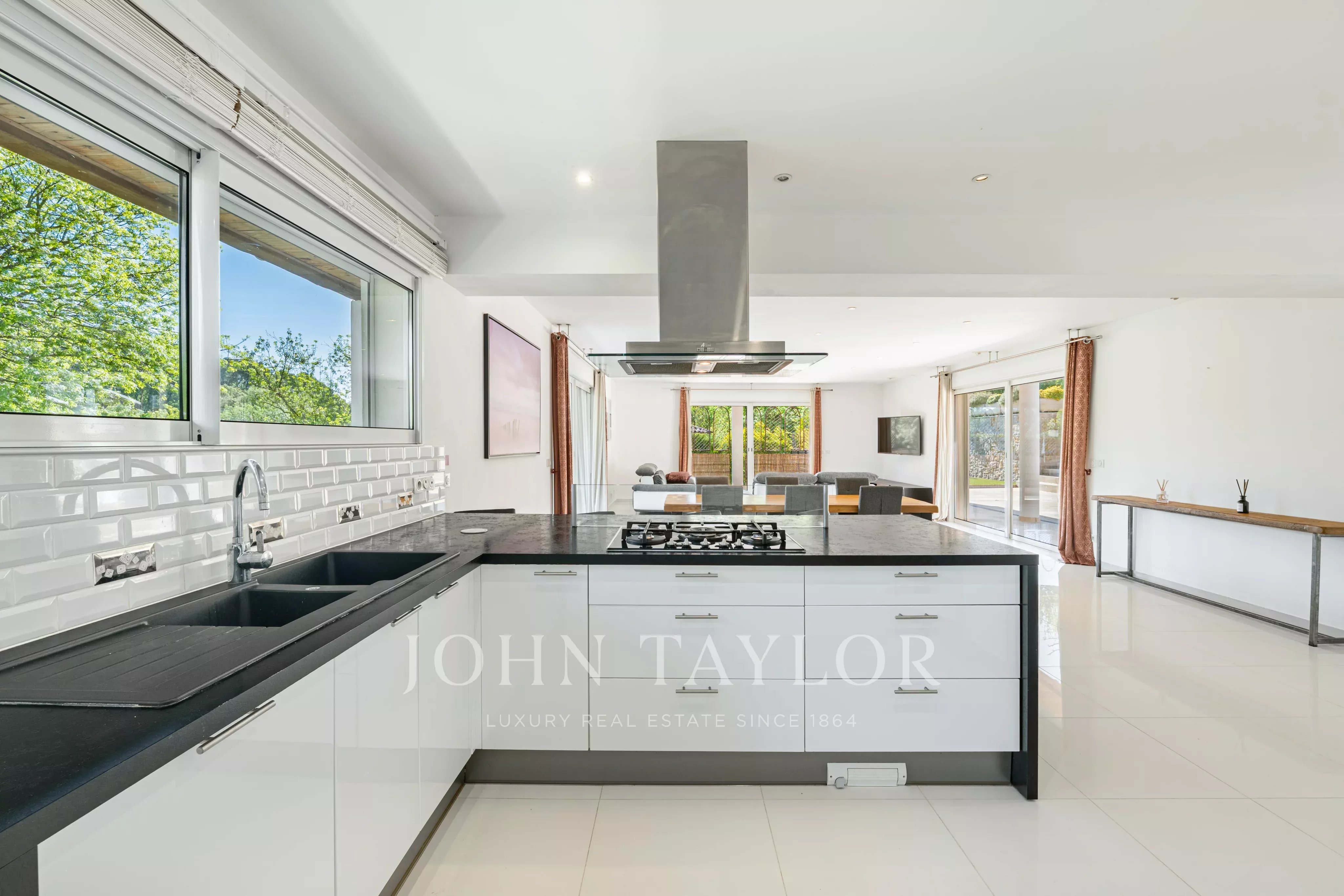 The garden level includes a vast master suite with bathroom and dressing room, a third bedroom with shower room, a gym and hammam.