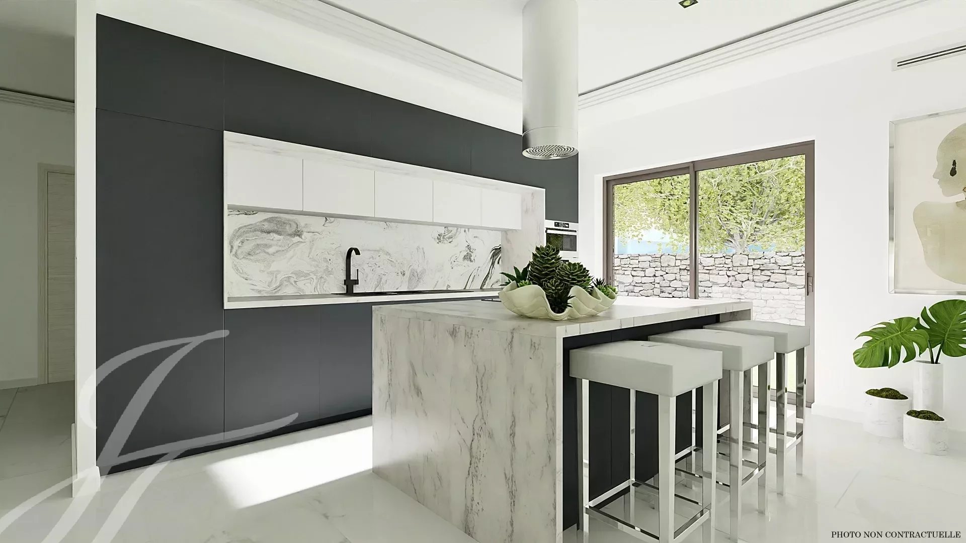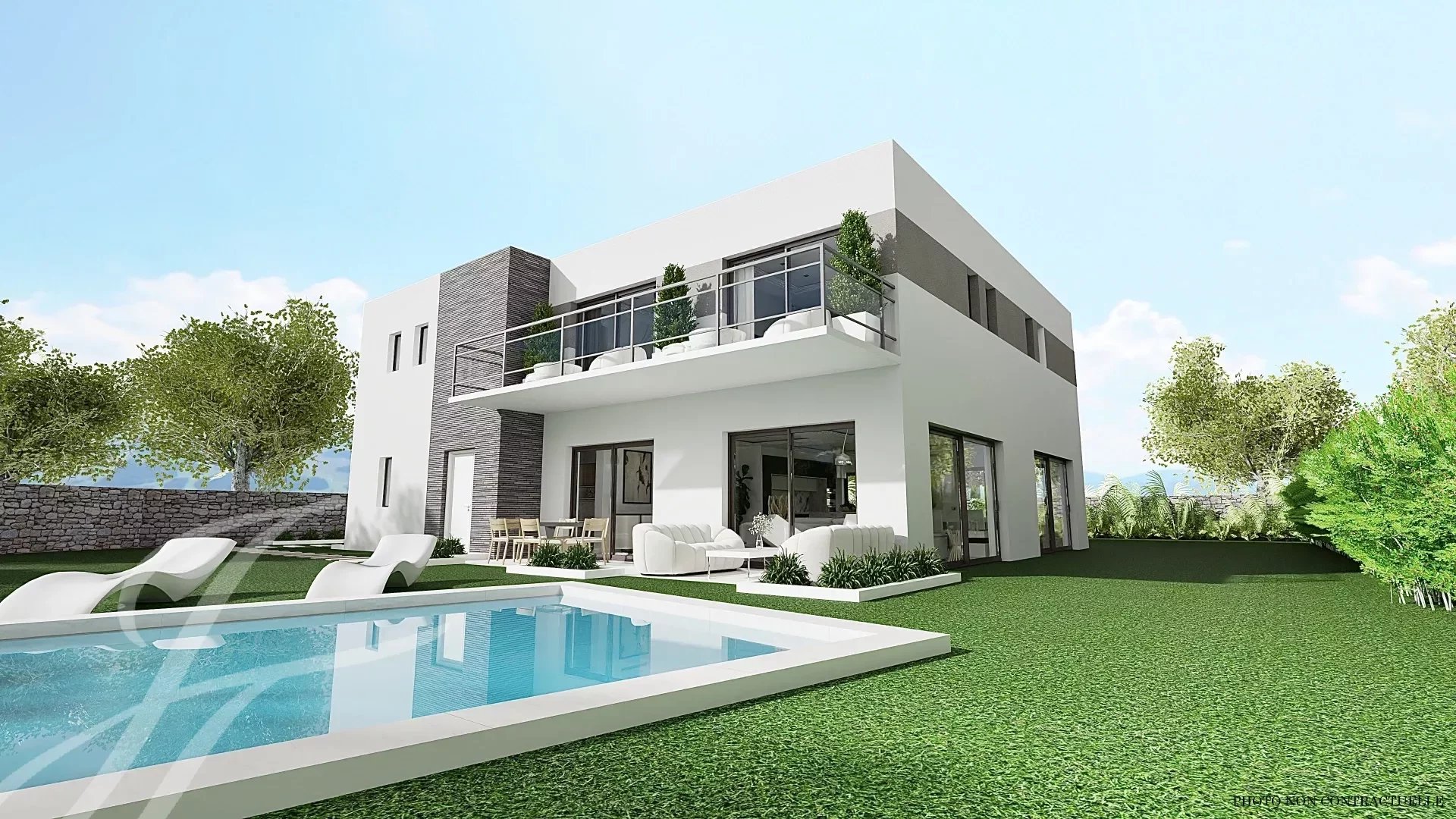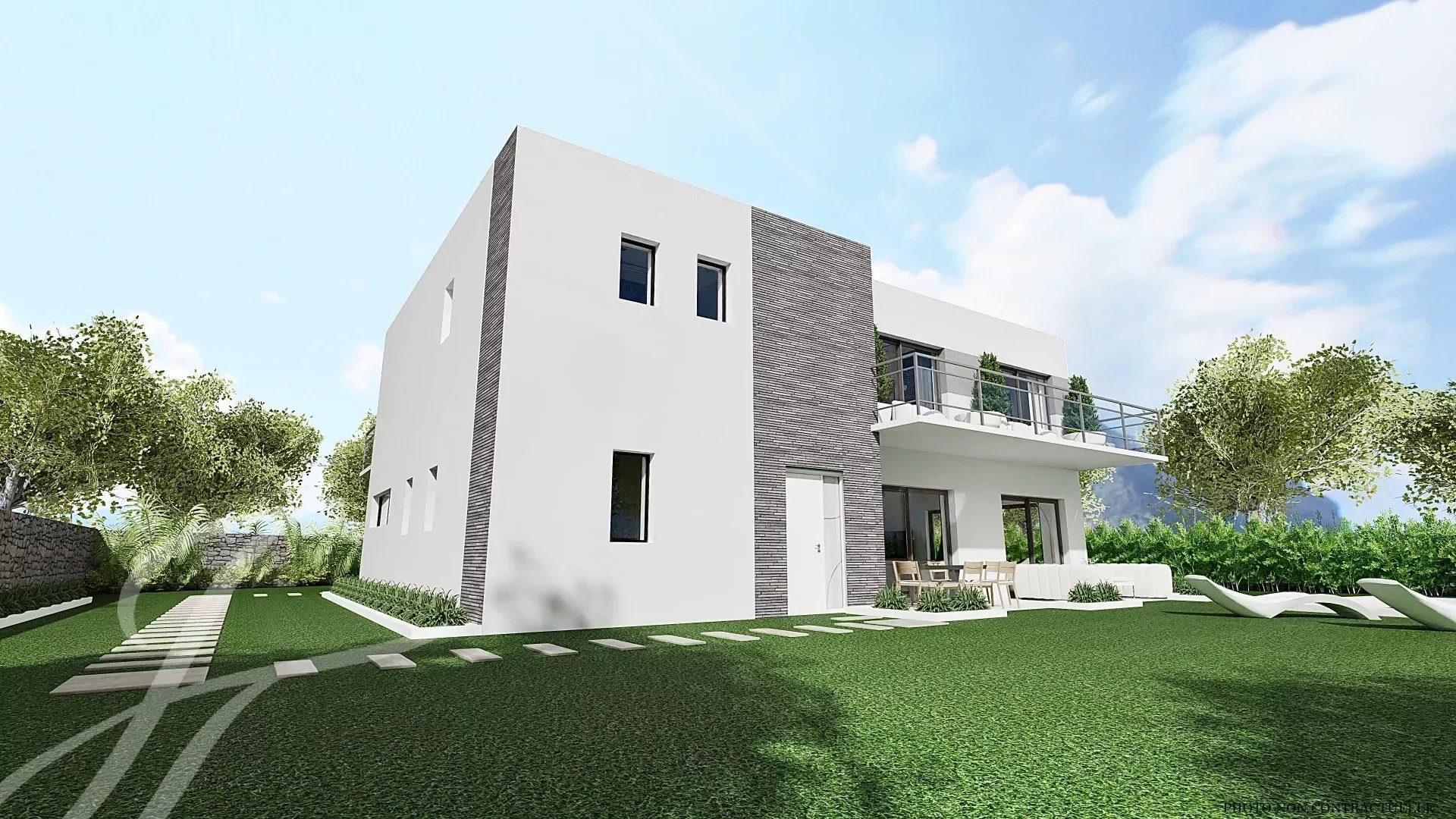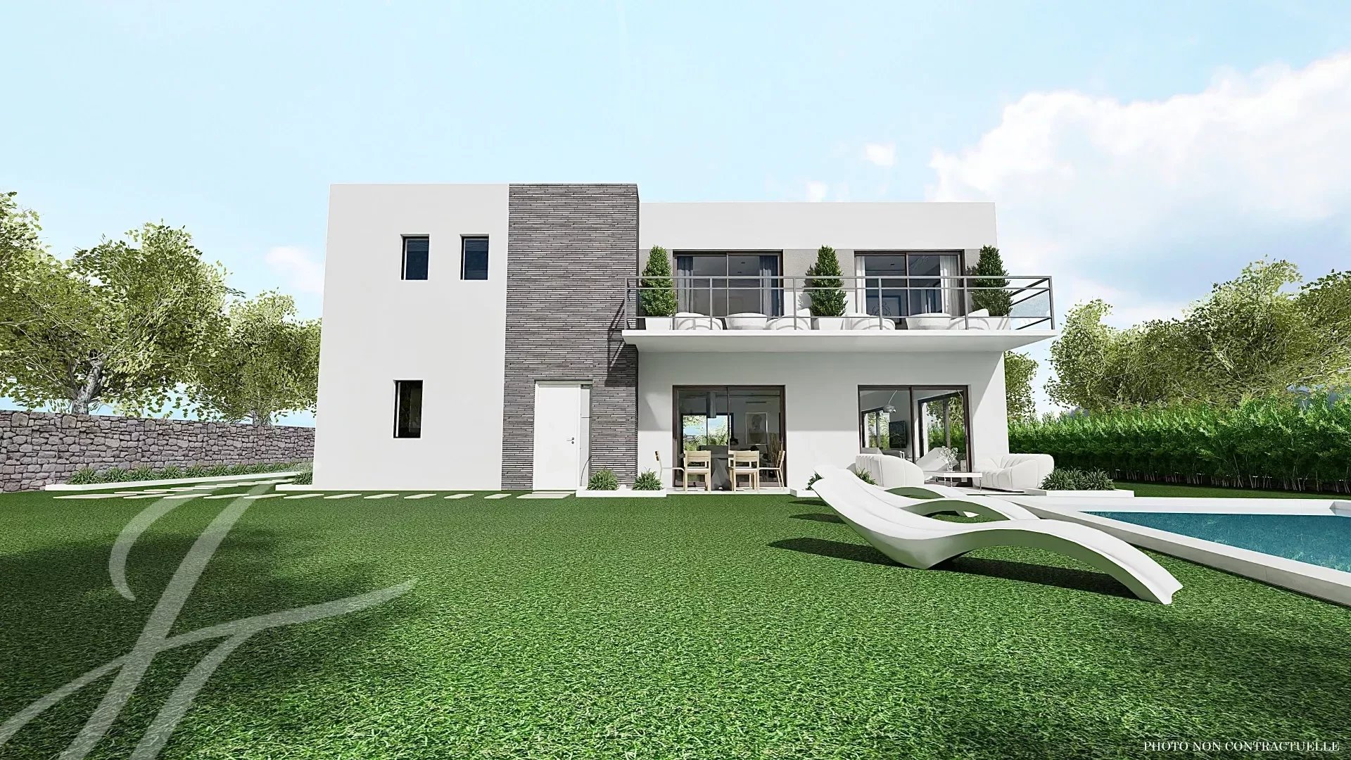 Superb contemporary house under construction, high-end materials and equipment.