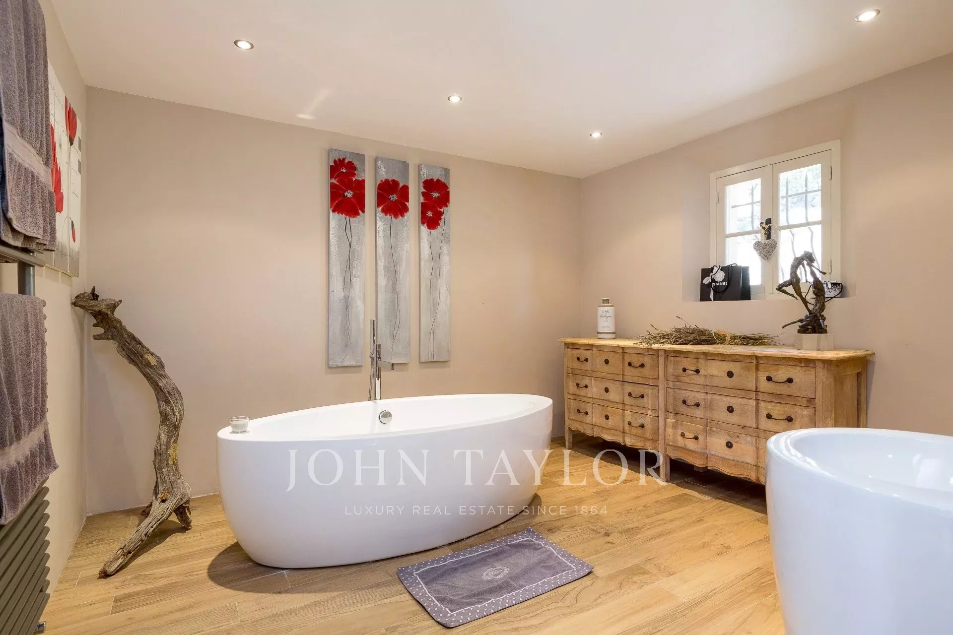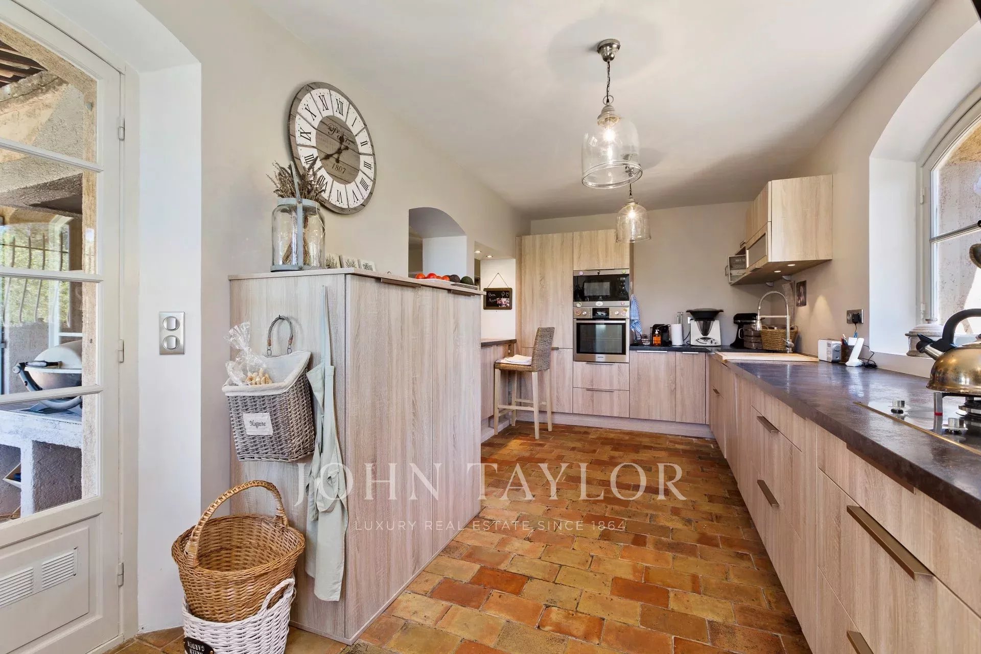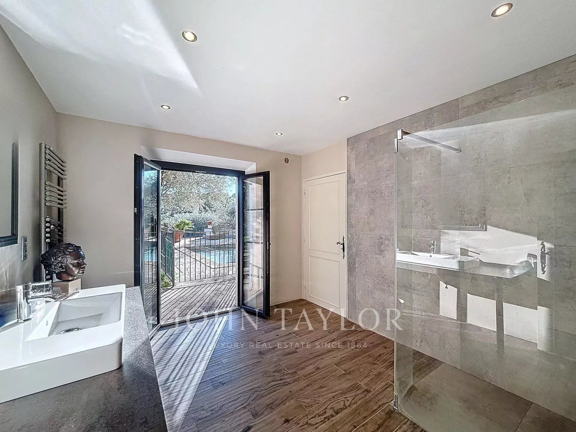 Comprising a charming Provencal double living room with fireplace, a beautiful master bedroom on the ground floor with dressing room and bathroom, a pleasant library and office area, as well as three other spacious bedrooms, all set around a magnificent patio, this property offers generous volumes for an exceptional, relaxing living environment.