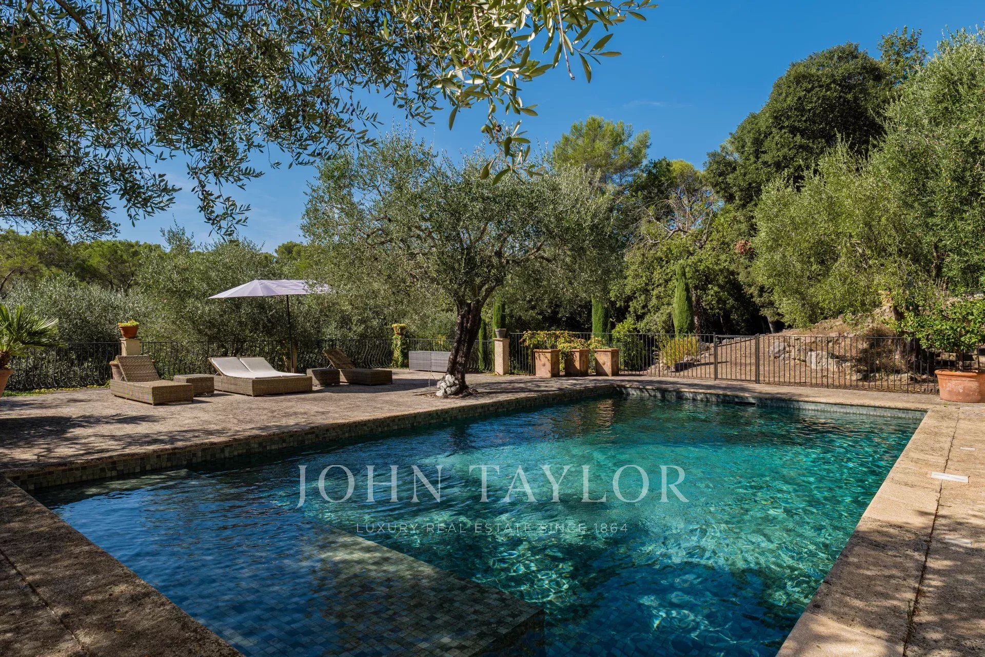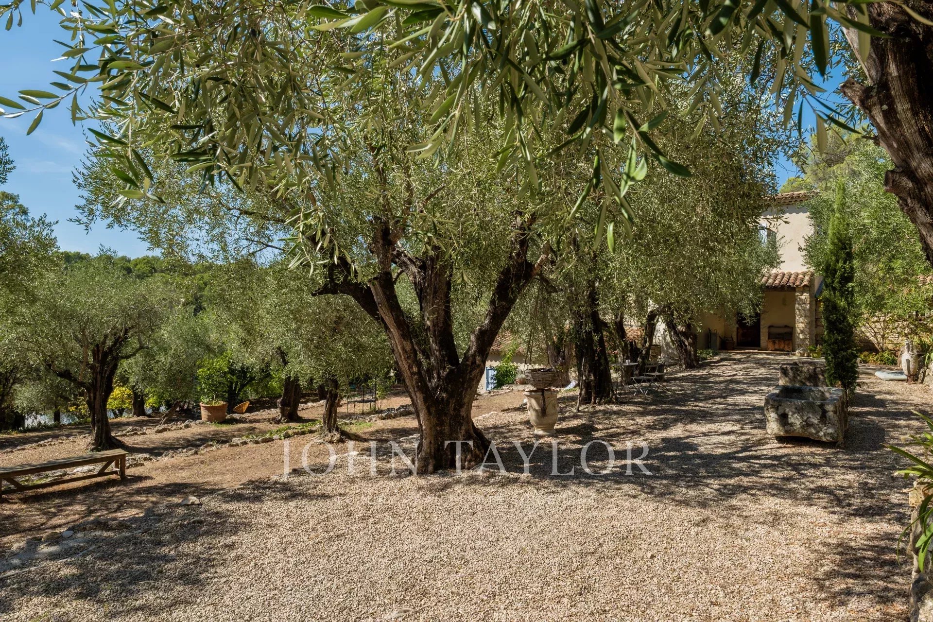In a bucolic setting with almost 70 olive trees spread over a two-hectare park, discover this magnificent 280 m² Provencal bastide with swimming pool, just a stone's throw from golf courses and the picturesque village of Valbonne.