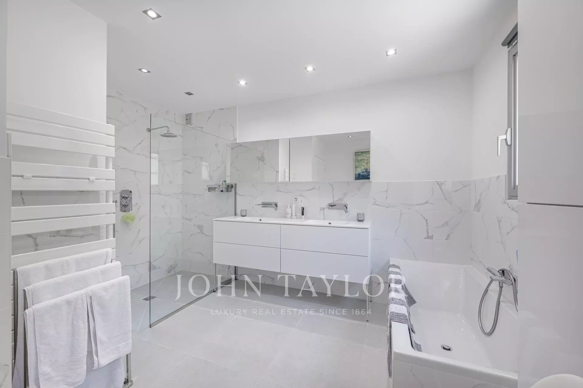 The ground floor boasts a master suite with en-suite bathroom, dressing room and access to the garden and pool. There is a second en-suite bedroom on this level.
