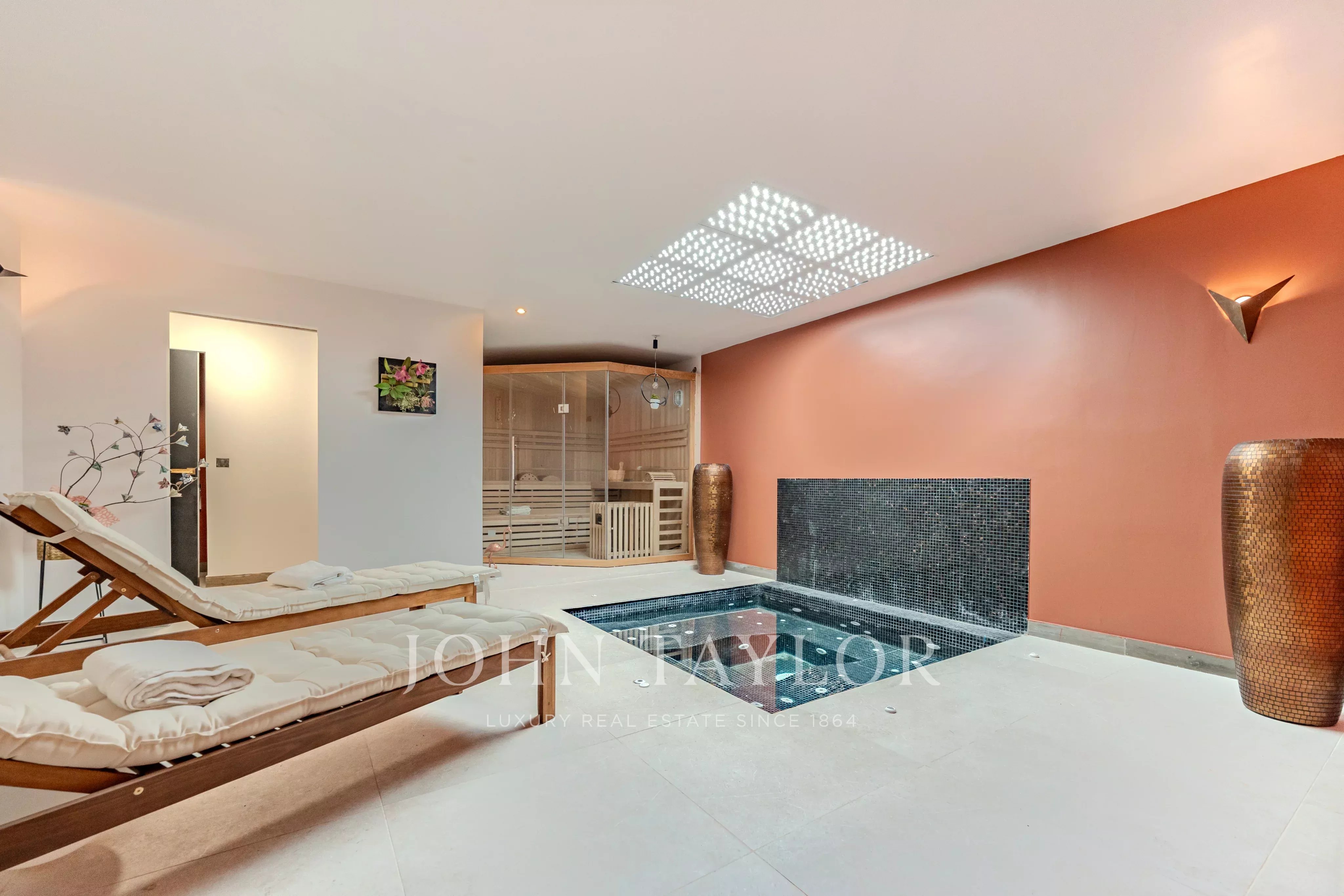 Designed for an exclusive lifestyle, the villa also features a wellness area with gym, sauna and spa, a game room, a closed garage and numerous parking places.