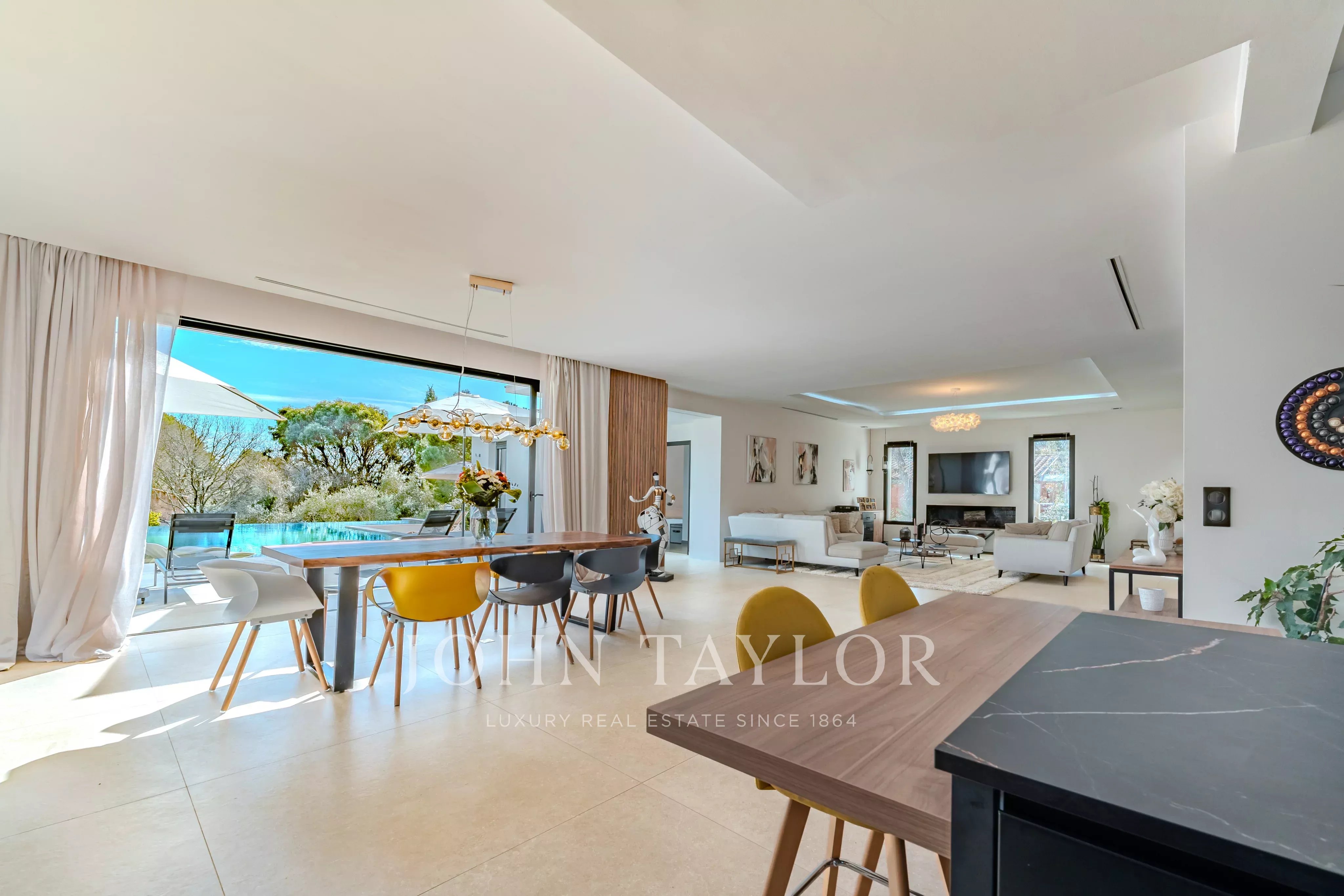 This newly built contemporary villa of approximately 323 sqm captivates with its generous volumes and remarkable natural light.