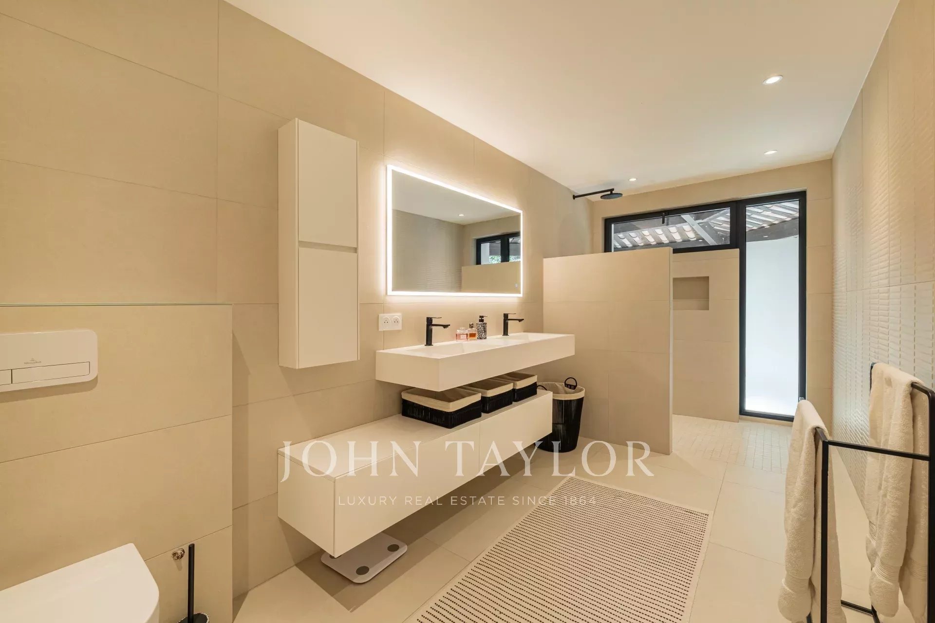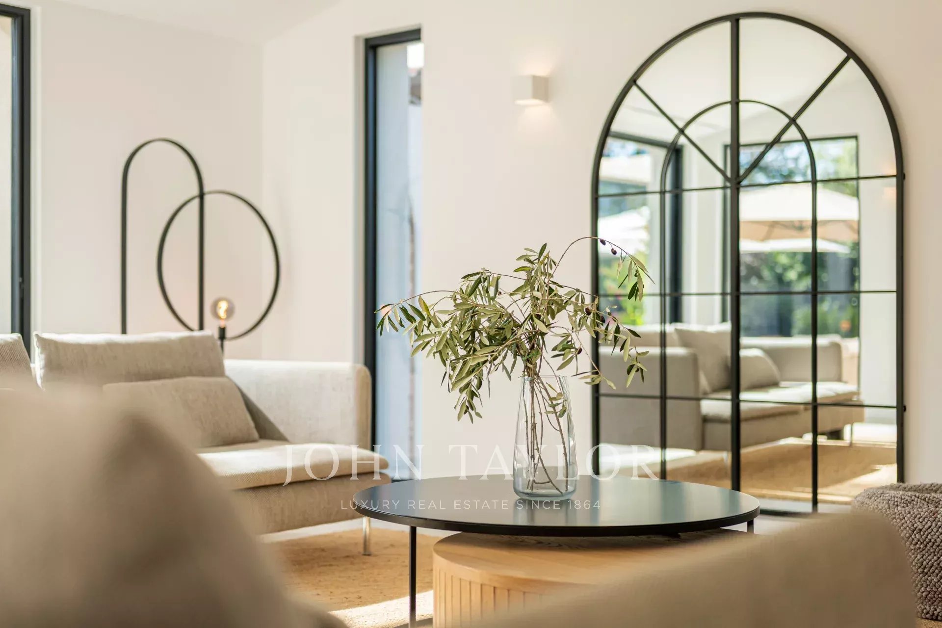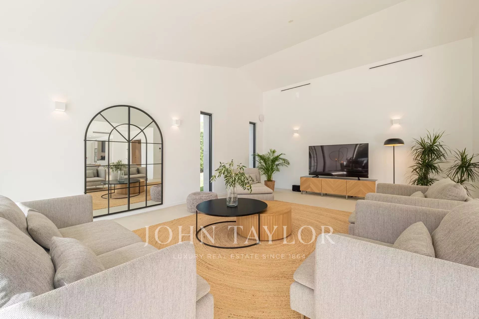 The villa offers spacious, light-filled living areas with open-plan living room and kitchen, as well as refined bedrooms including a sumptuous master suite with shower room and dressing room. The upper floors offer bedrooms with terraces, ideal for families or guests.