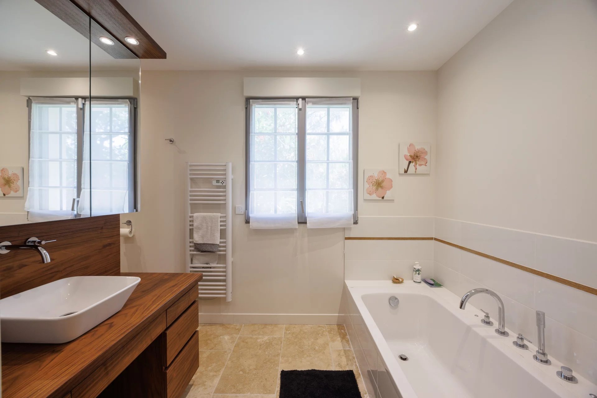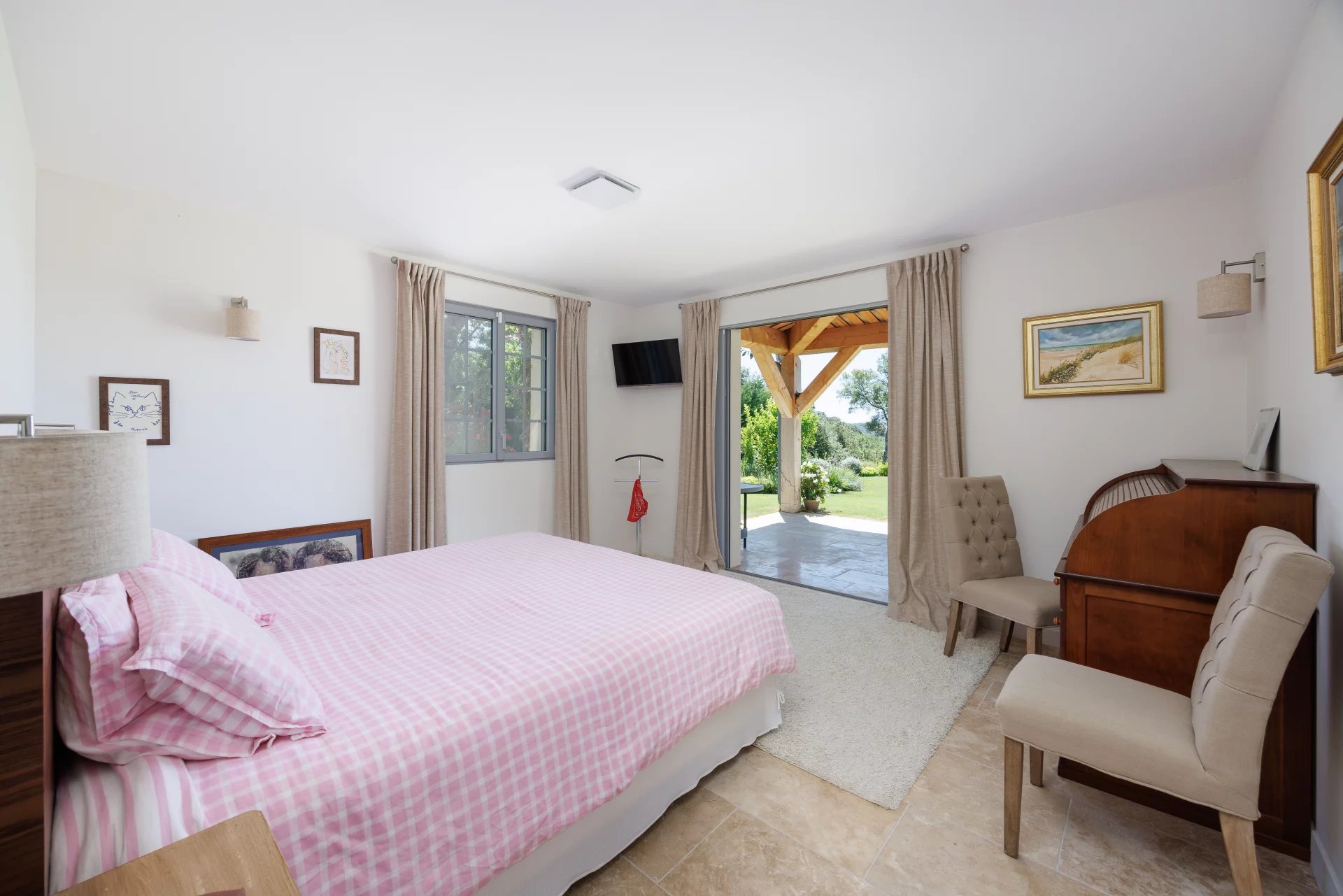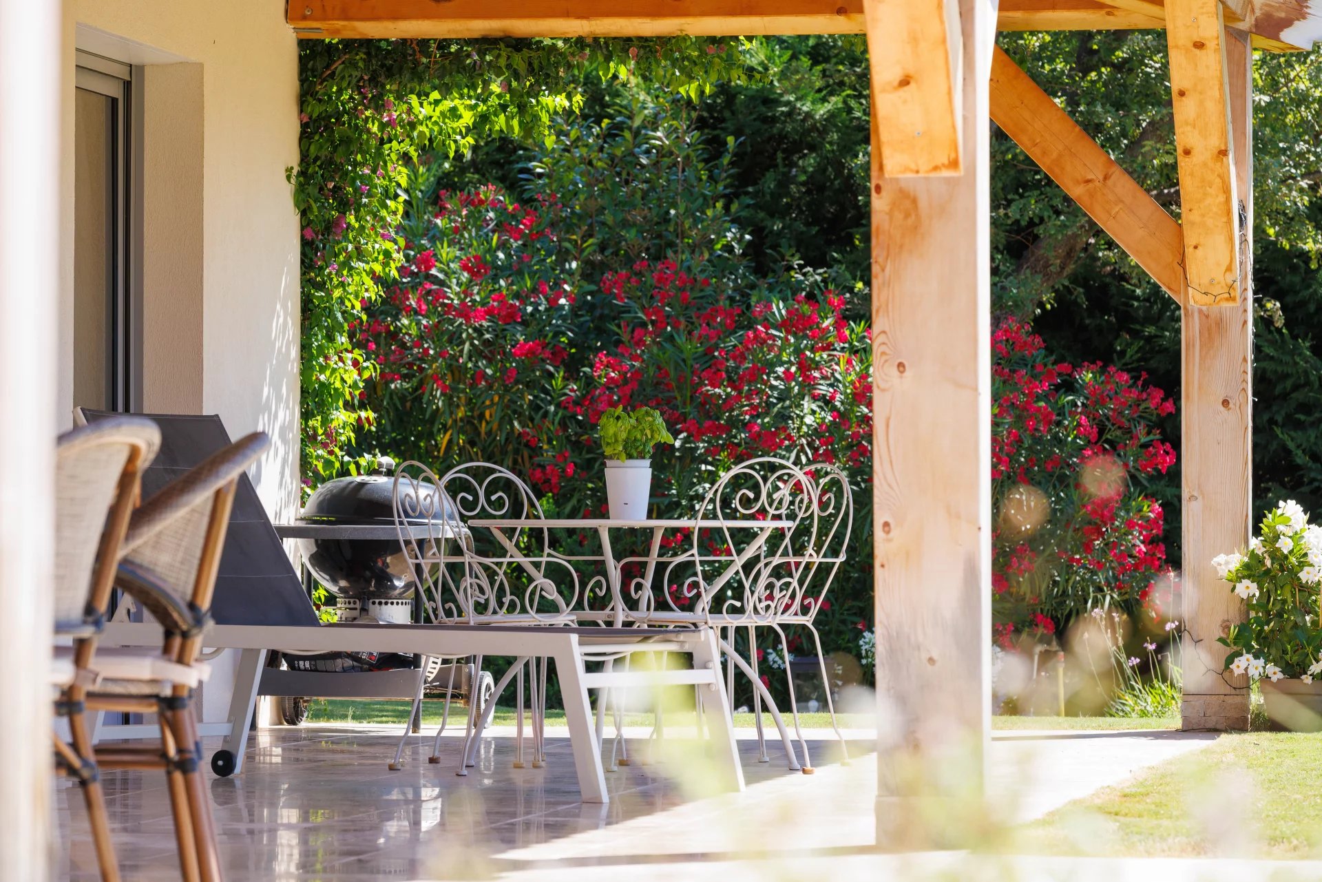 The 2,430 m² landscaped garden, designed by a pupil of the renowned landscape architect Mr. Jean MUS, is sumptuous and boasts a magnificent 12x5 heated, covered, saltwater swimming pool, surrounded by large, comfortable terraces and a pétanque court. The various areas are very well maintained, allowing adults to relax and the youngest members of the family to enjoy memorable moments of play!