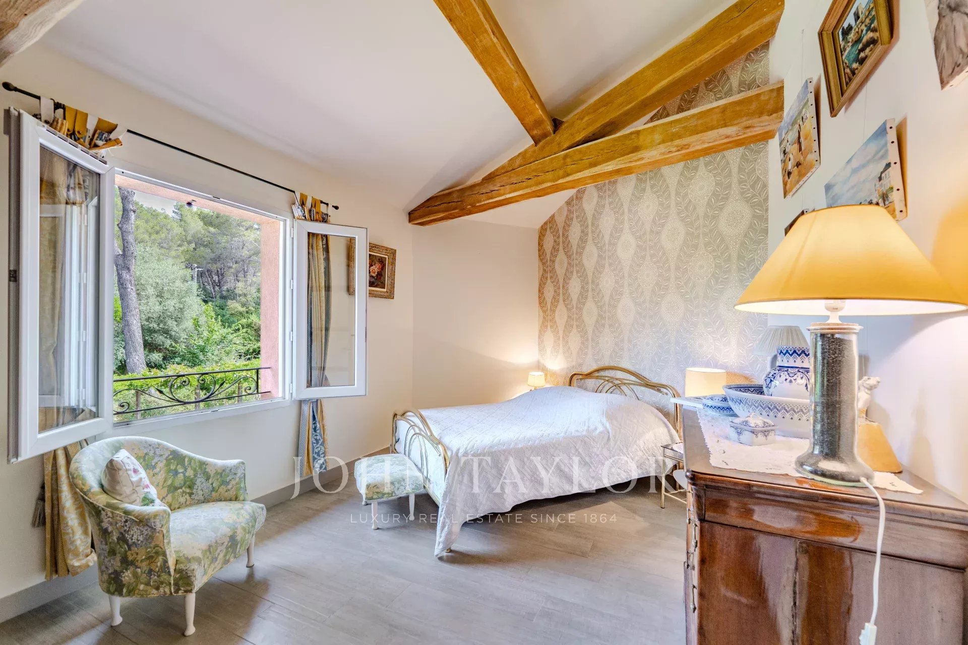 Built on a large, flat plot of 3,171 m², the property enjoys a south-facing exposition and a beautifully maintained Provençal garden planted with Mediterranean species, complete with a pond and a fountain that bring a sense of serenity and charm.