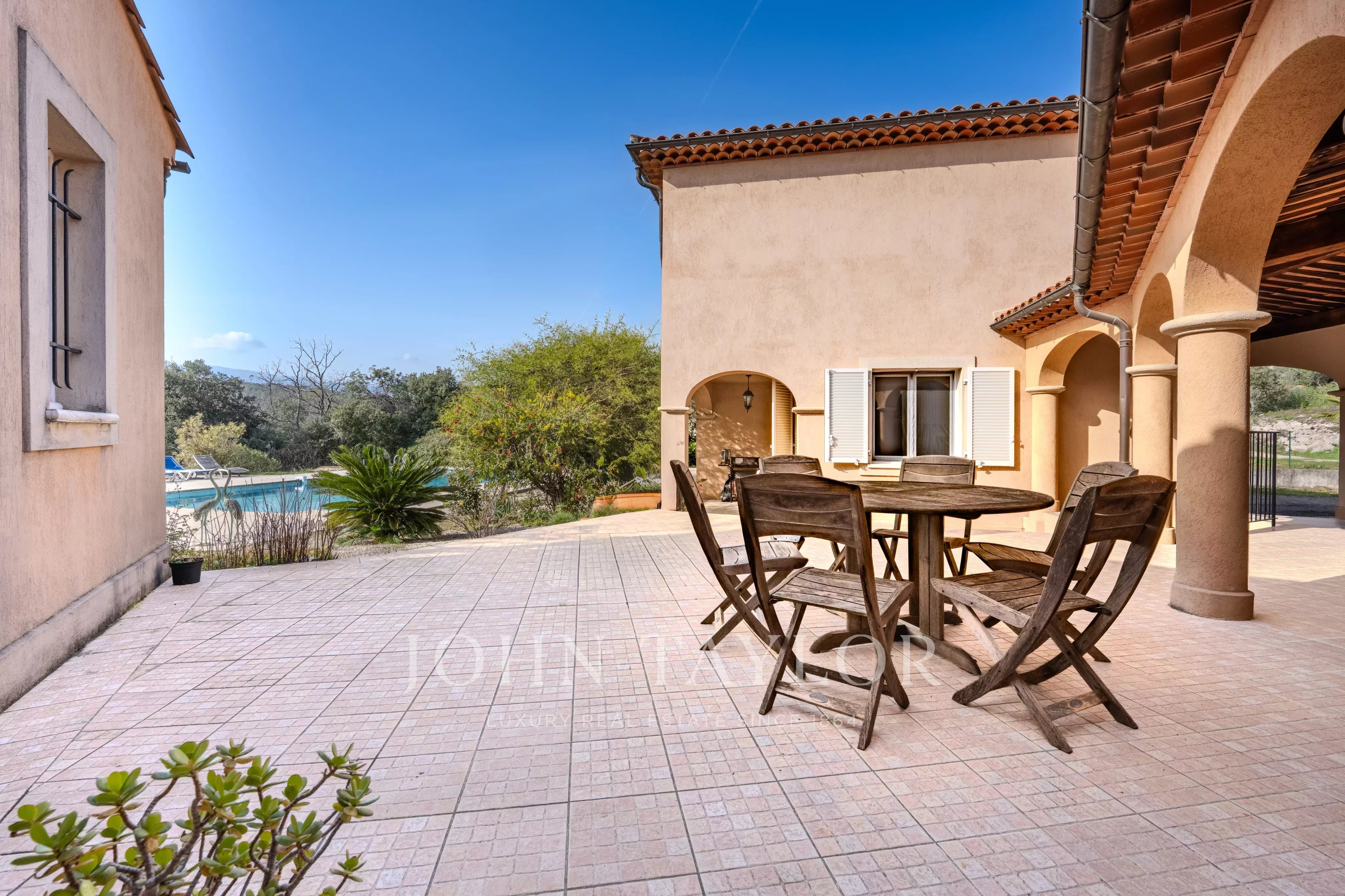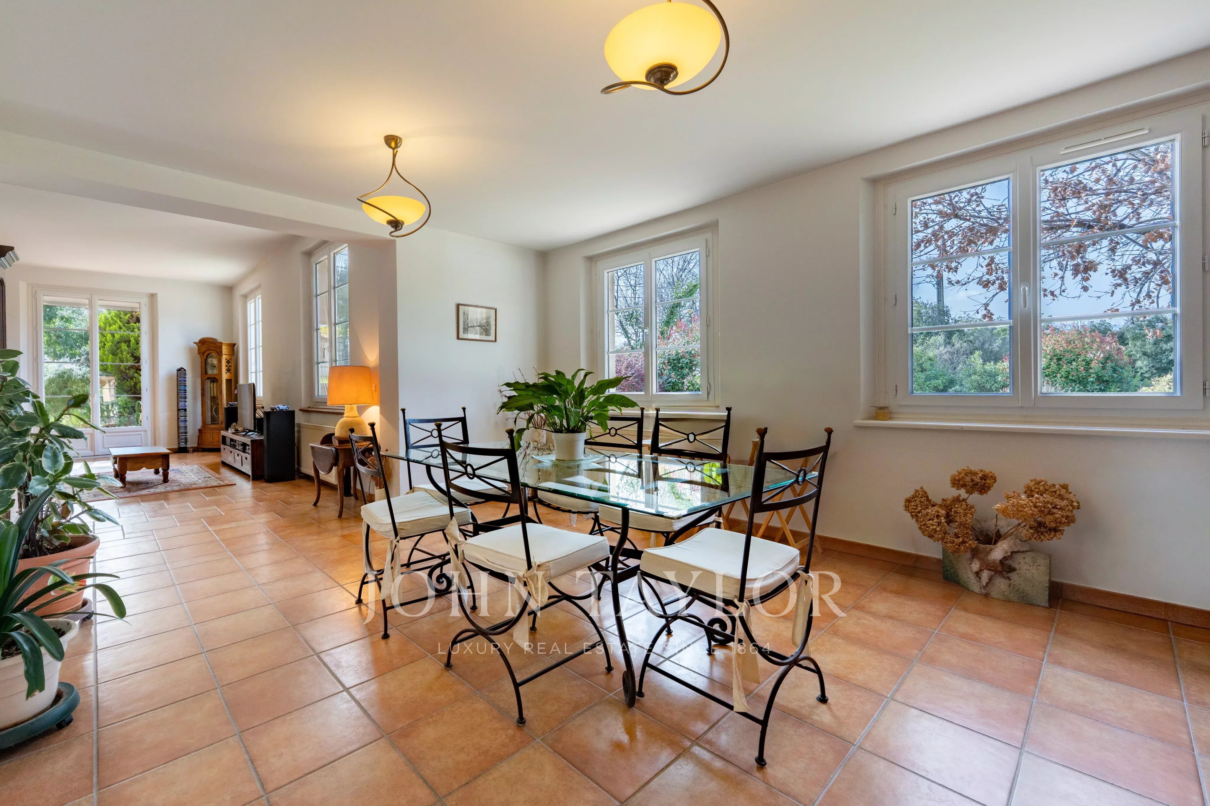 Nestled in one of the most sought-after neighborhoods of Roquefort-les-Pins, discover this rare property offering absolute peace and quiet, along with breathtaking mountain views. It is set on 5,600 m² of flat land. Offering 433 m² of living space, complemented by a large garage and a 117 m² basement, this home features generous volumes and unique potential thanks to its three separate plots. The main single-story villa (272 m²) opens onto a spacious 90 m² living room with a fireplace and high ceilings, extended by a separate 24 m² kitchen. The 52 m² master bedroom is a true private space, complete with a dressing room, full bathroom, and study. Two additional bedrooms, a shower room, and a spacious 31 m² game room complete this level. Two independent duplex apartments, each 80 m², are ideal for entertaining family and friends, generating rental income, or housing staff. Each apartment features a kitchen opening onto the living room, three bedrooms, and shower rooms. Outside, the swimming pool blends harmoniously into the privileged natural environment, guaranteeing privacy and serenity, while the barbecue area invites conviviality. A rare property, ideal for a large family, a multi-generational project, or a quality second home on the Côte d'Azur.