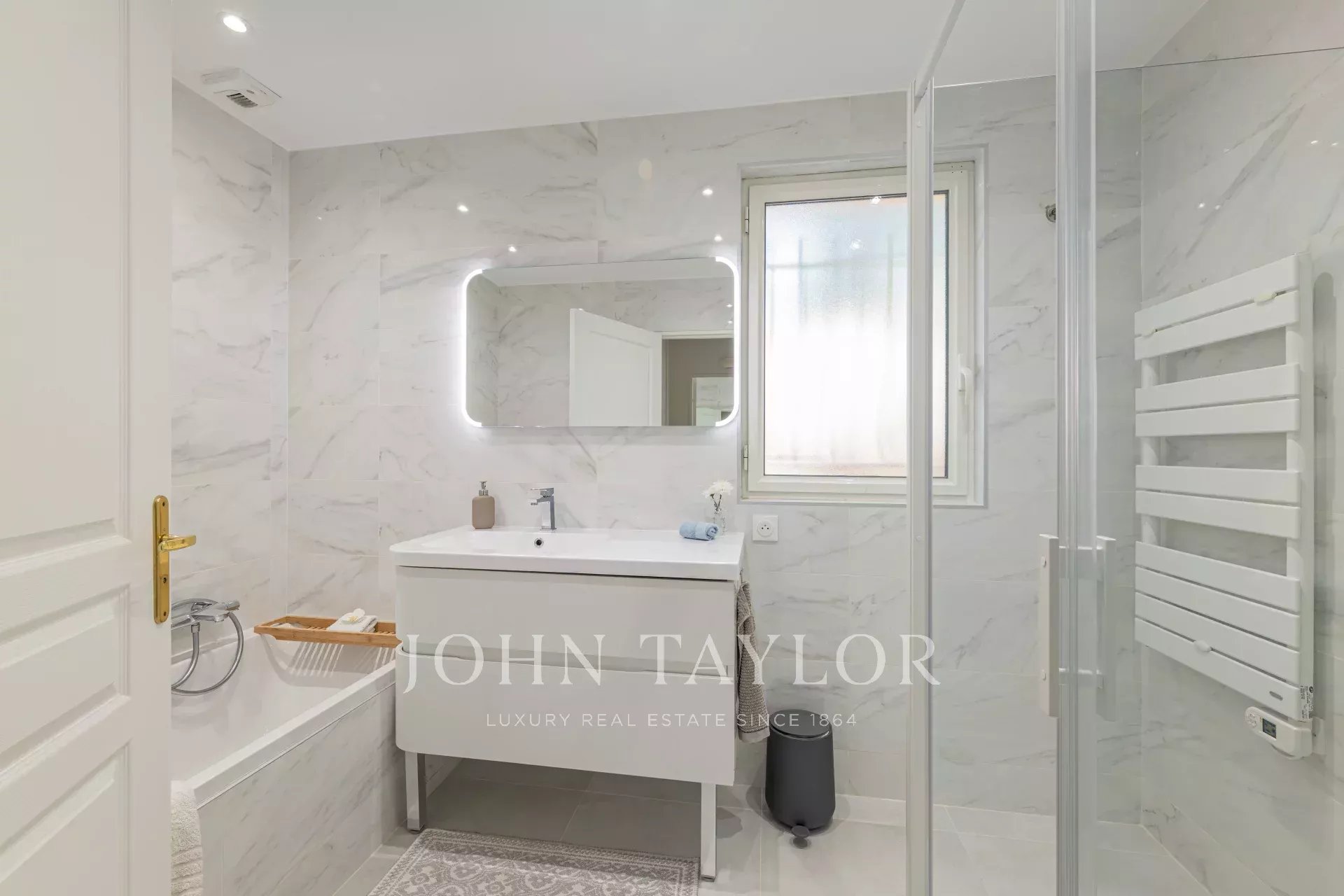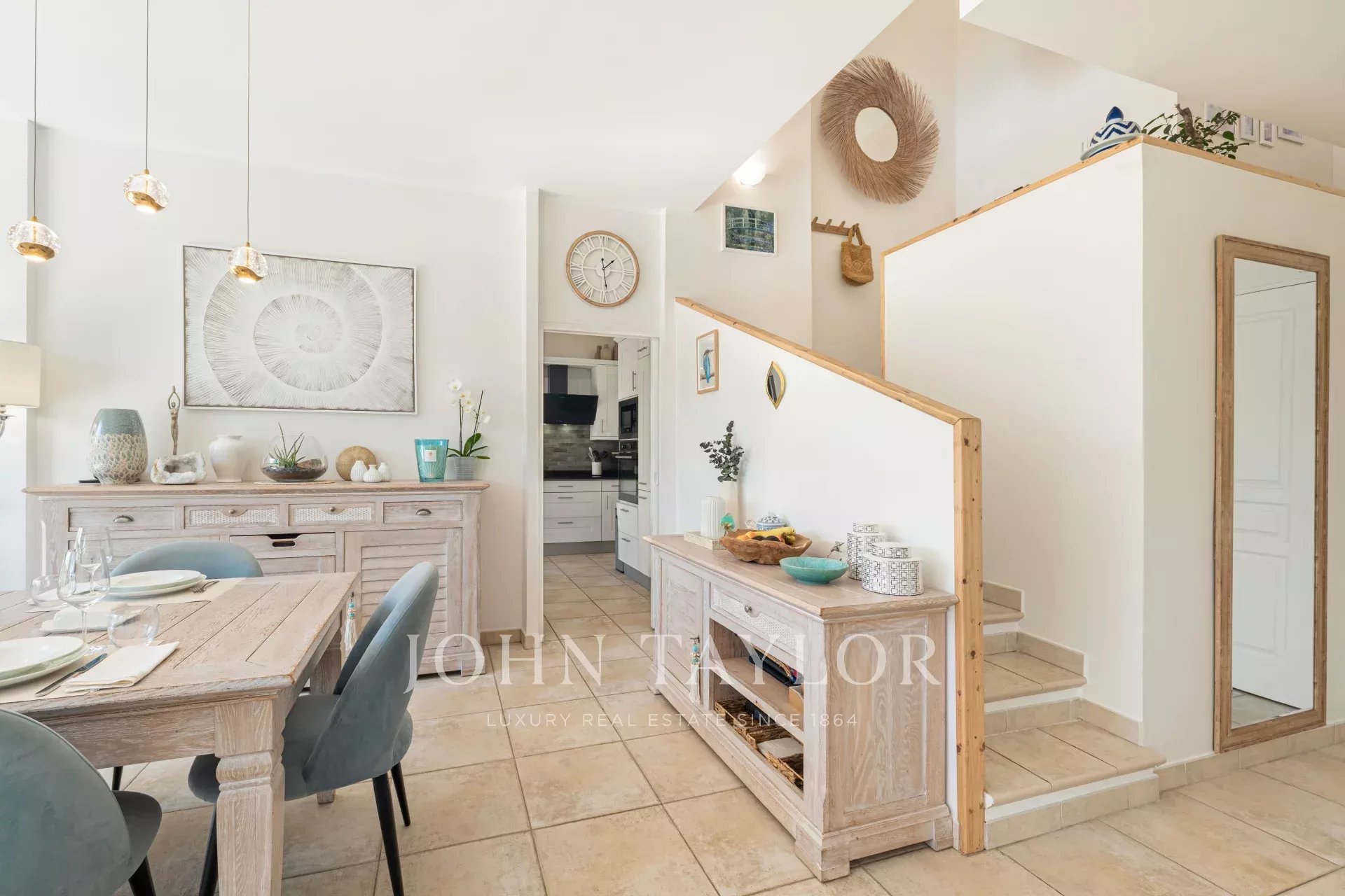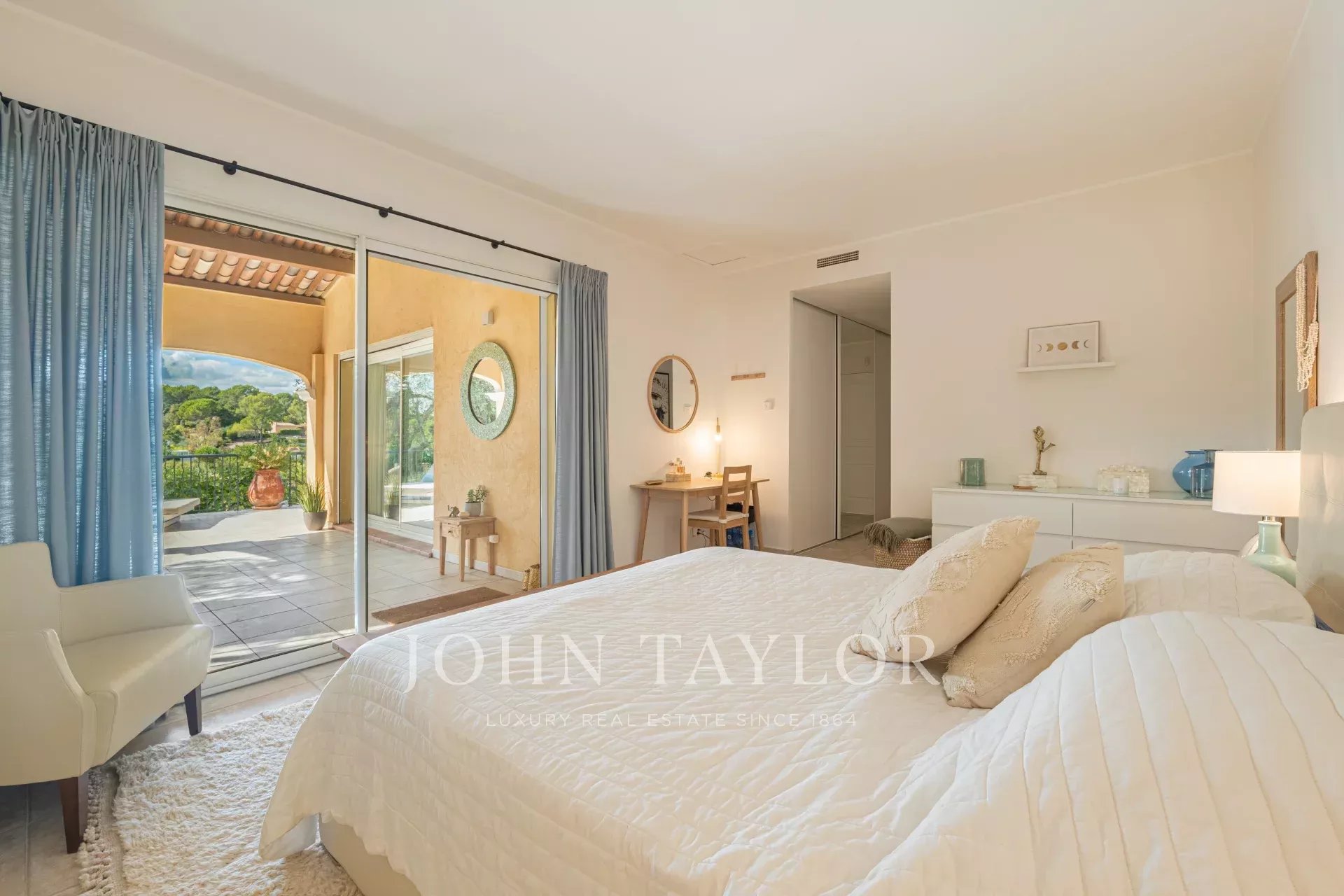 Situated in a sought-after gated estate, in a dominant position and benefiting from a westerly exposure, this elegant family villa offers a bright, serene living environment. On one level, it offers a vast living space, an independent kitchen and two en suite bedrooms, including a spacious master suite. Upstairs, an office area opens onto two additional bedrooms and two shower rooms, one of which is en suite.