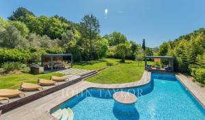 The swimming pool impresses with its exceptionally attractive shape and is surrounded by a summer kitchen with barbecue and a pretty pergola.