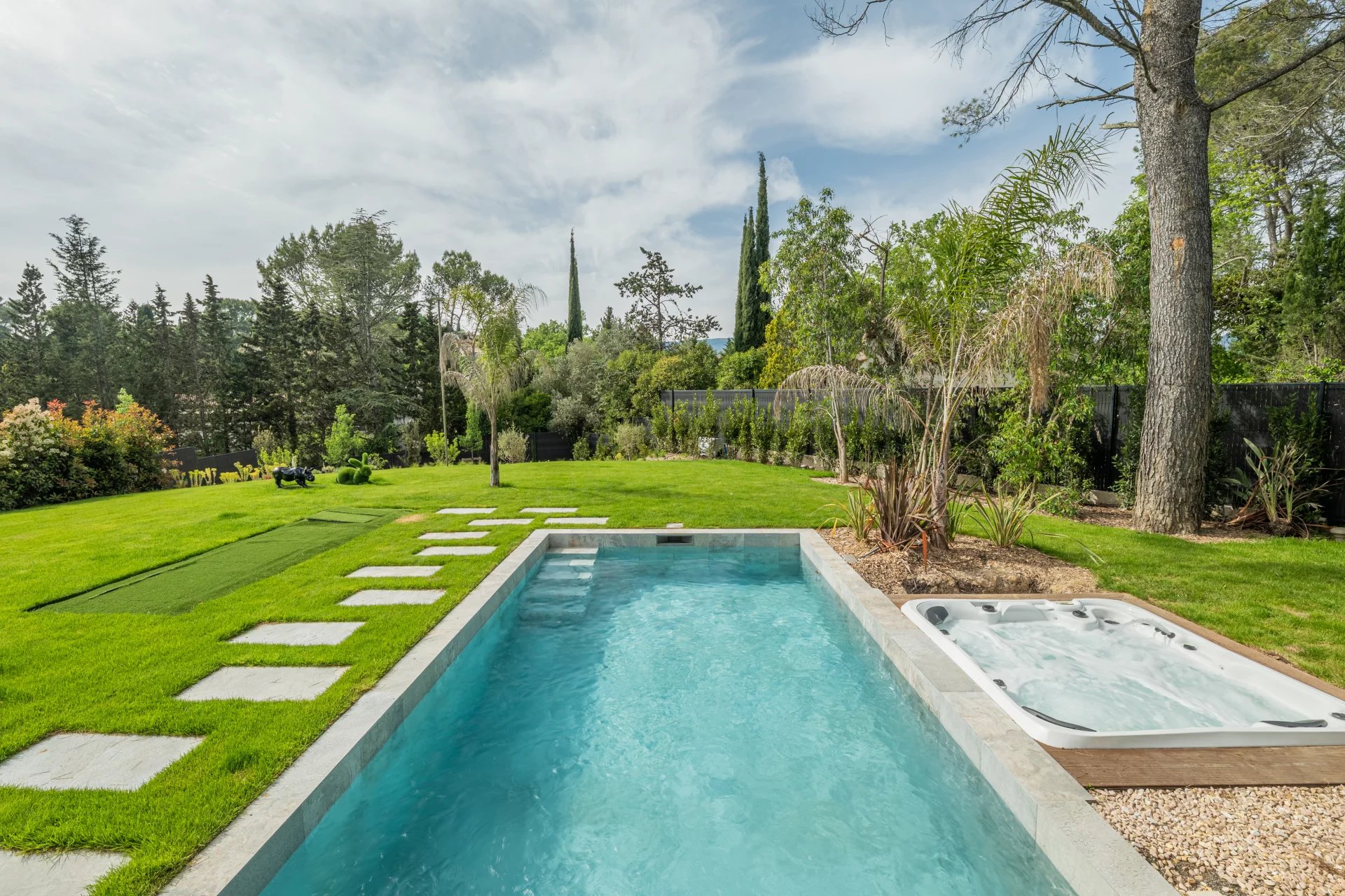 Its exceptional location – just 5 minutes from the historic center of Valbonne and 10 minutes from Mougins – is sure to delight both your family and guests.