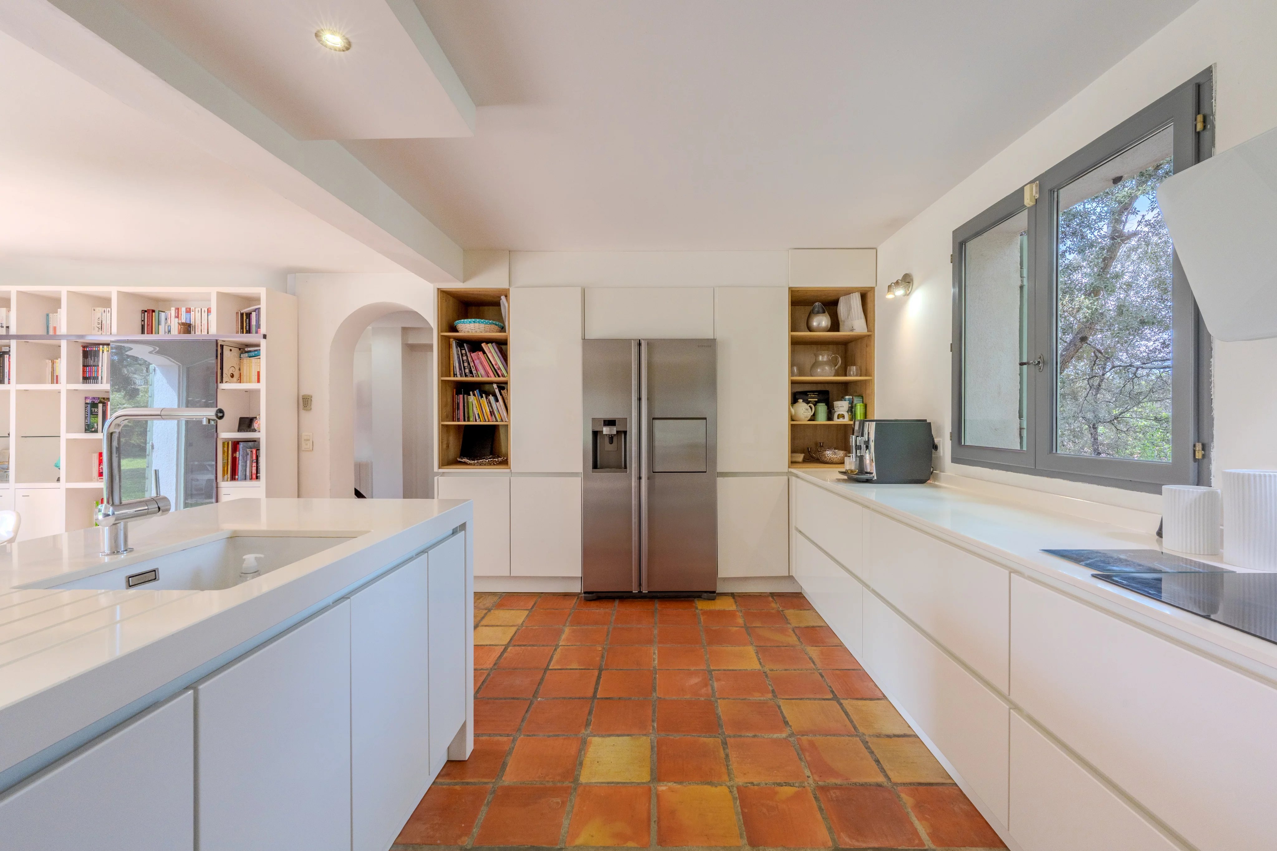 In terms of amenities, the villa benefits from underfloor heating powered by a heat pump on the ground floor, as well as ducted reversible air conditioning for optimal comfort in all seasons.