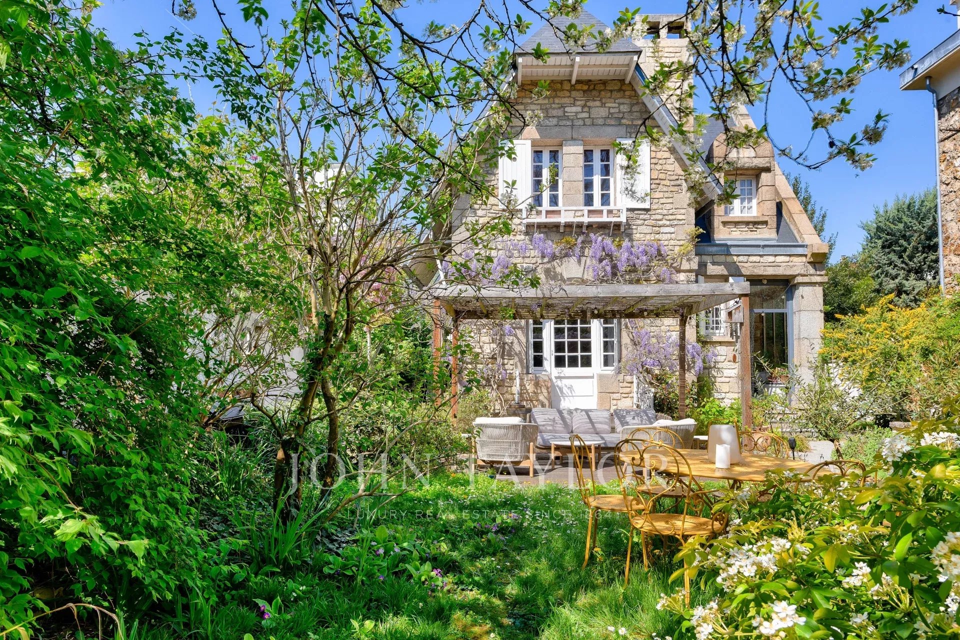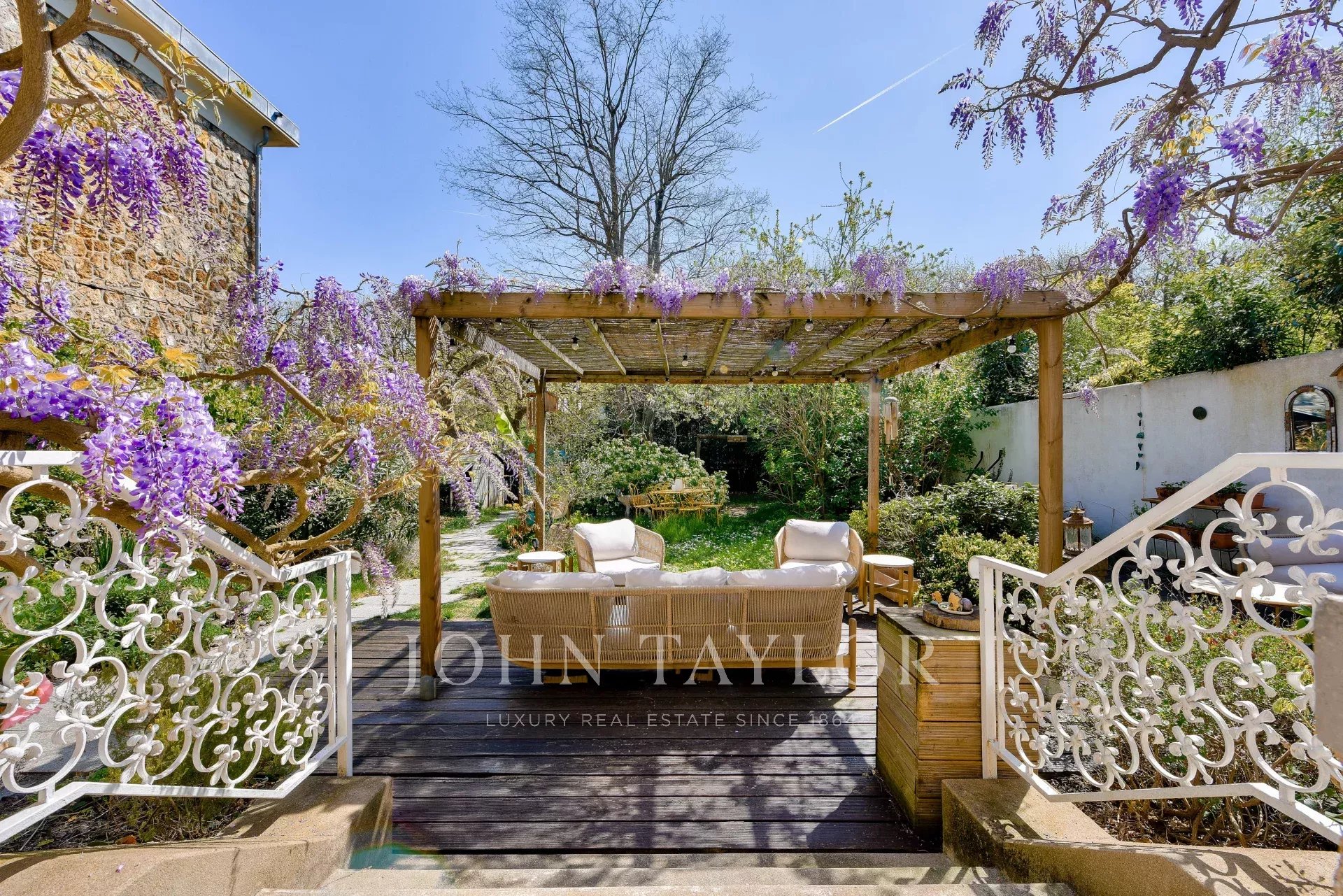 A pergola-covered terrace opens onto a beautiful 340 m2 south-facing garden.