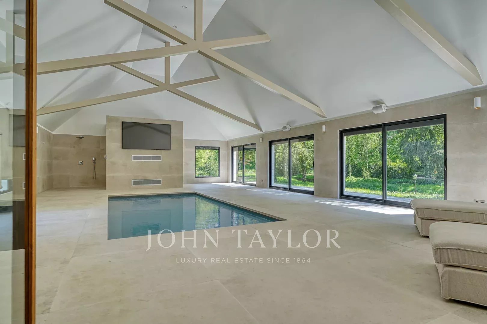 Located in the charming village of Fontaine-Chaalis, just 10 minutes from the prestigious Morfontaine golf course and 15 minutes from Senlis, this contemporary home is nestled in the heart of nature.