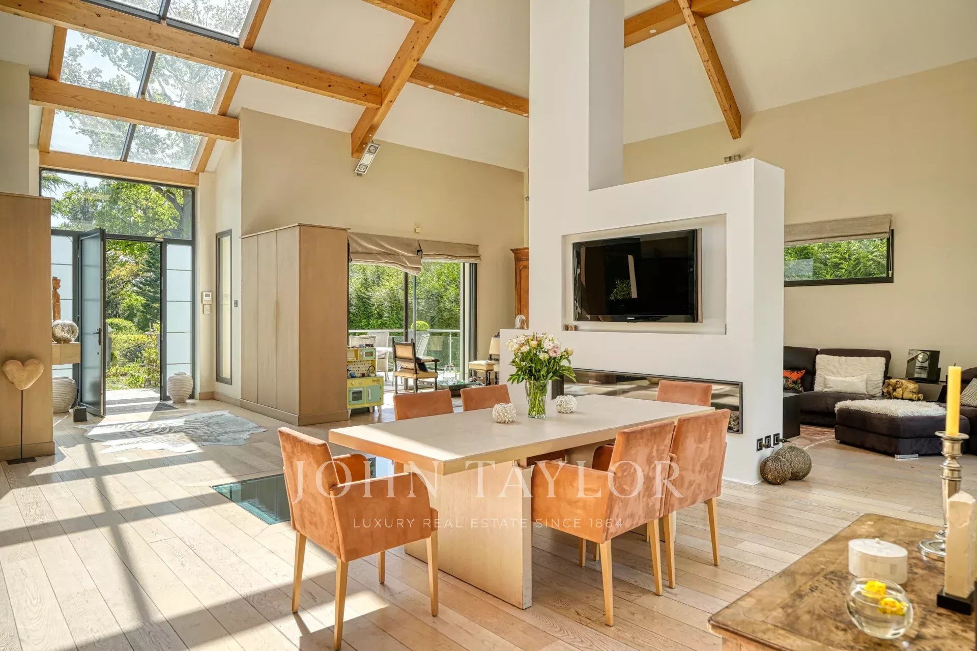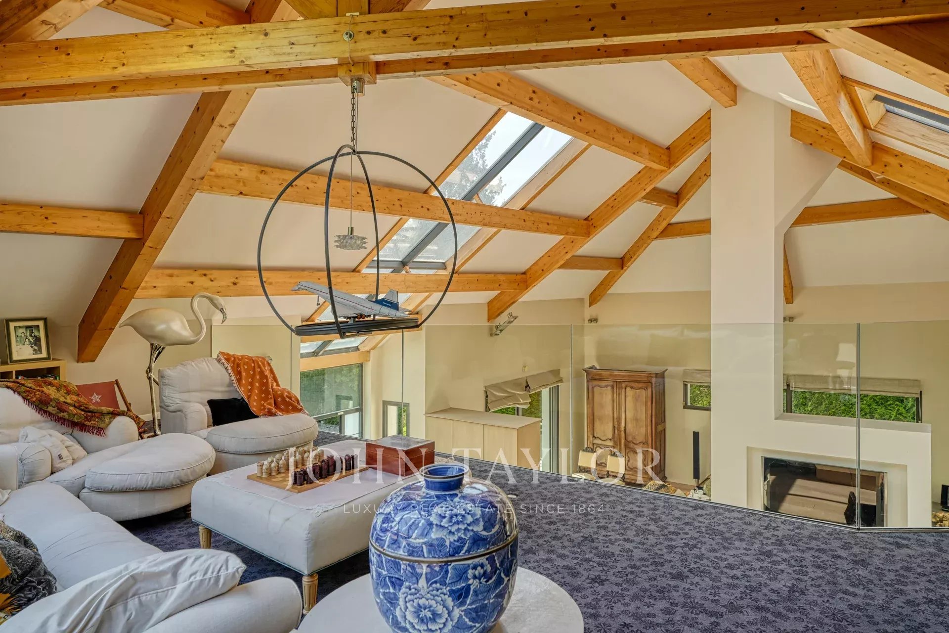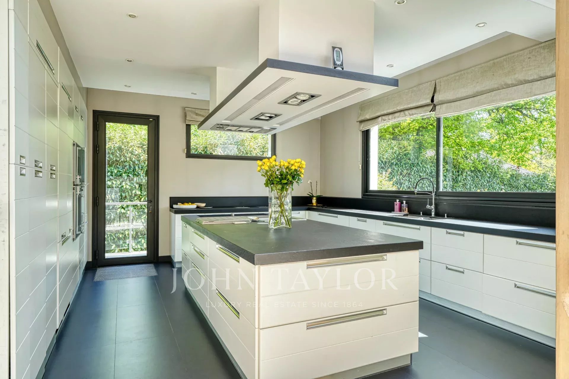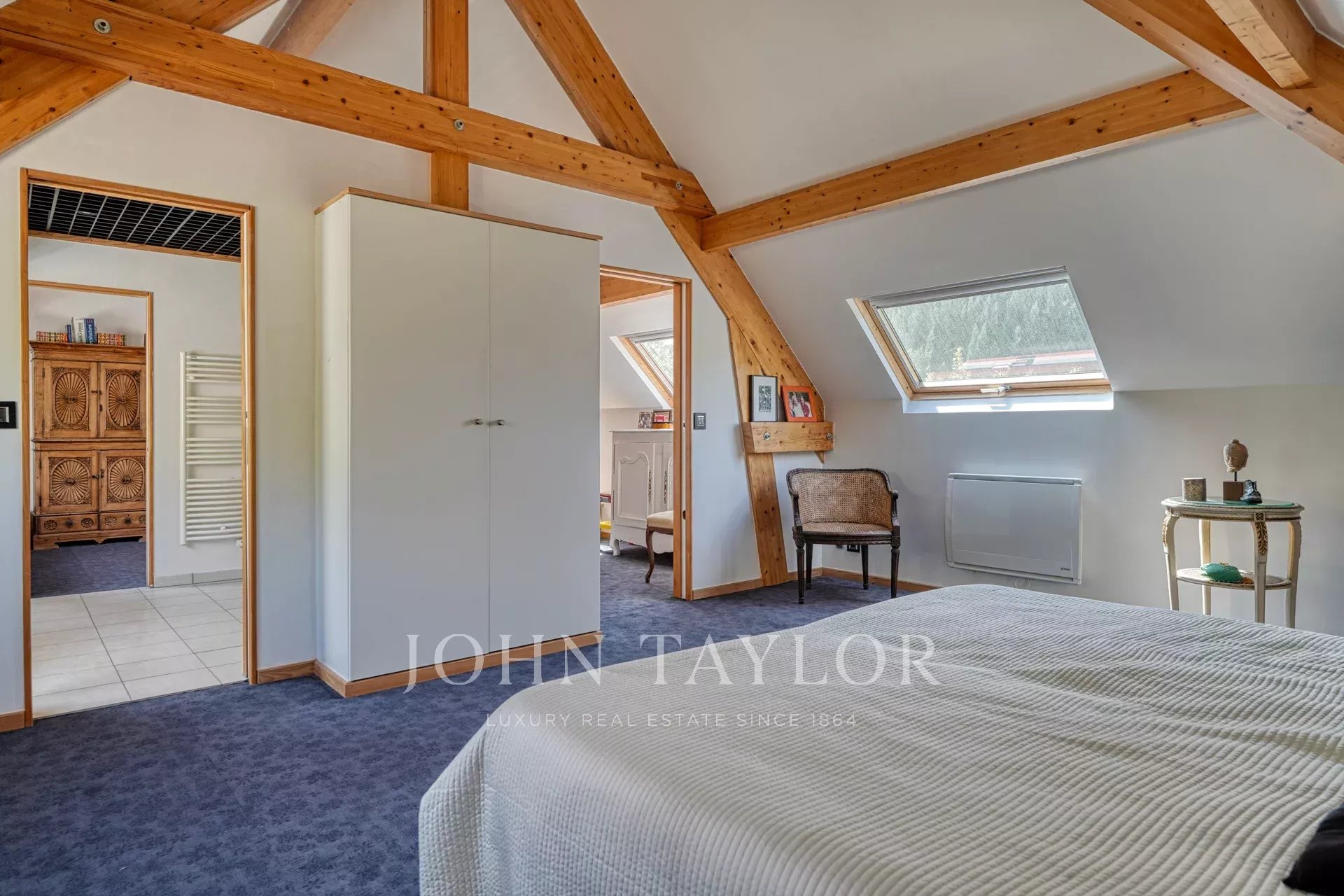 Just 45 minutes from Paris and 25 minutes from CDG Airport, nestled within the private and golf estate of Le Lys, this early 2000s architect-designed home enjoys a preserved setting, entirely sheltered from view.