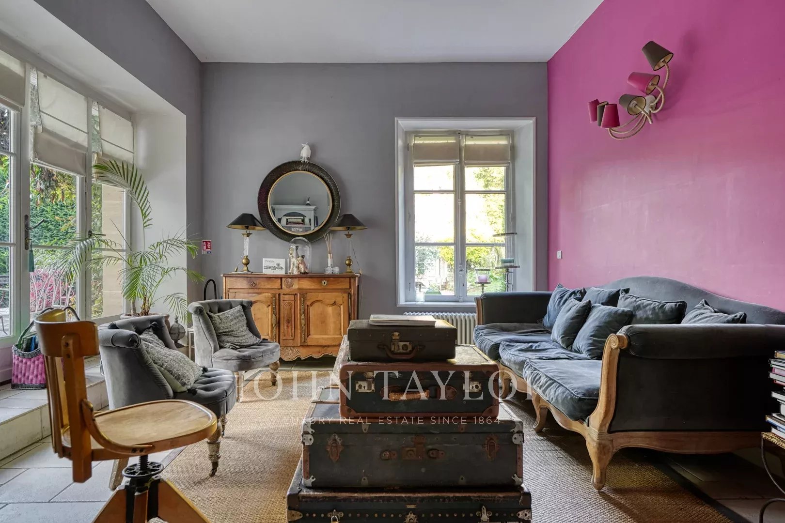 The townhouse, approximately 350 m² in size, features a living room, a spacious fully equipped dining kitchen opening onto a sunny terrace, a back kitchen, a laundry room, and vaulted cellars. Upstairs, there are five elegant suites, including a family apartment with two bedrooms.