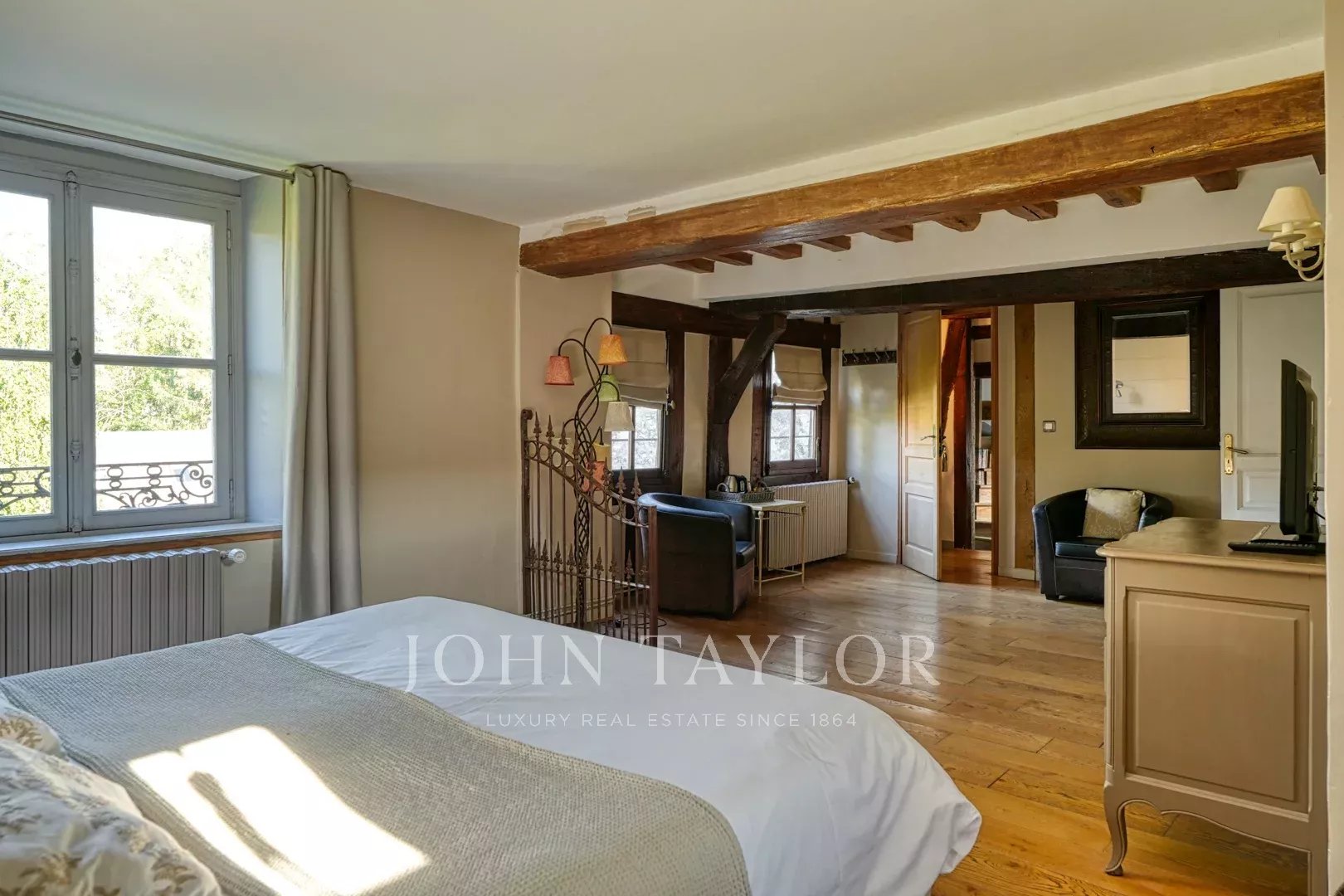 The estate consists of a former 17th-century townhouse, currently operated as a guesthouse, as well as a second independent building offering multiple possible uses.