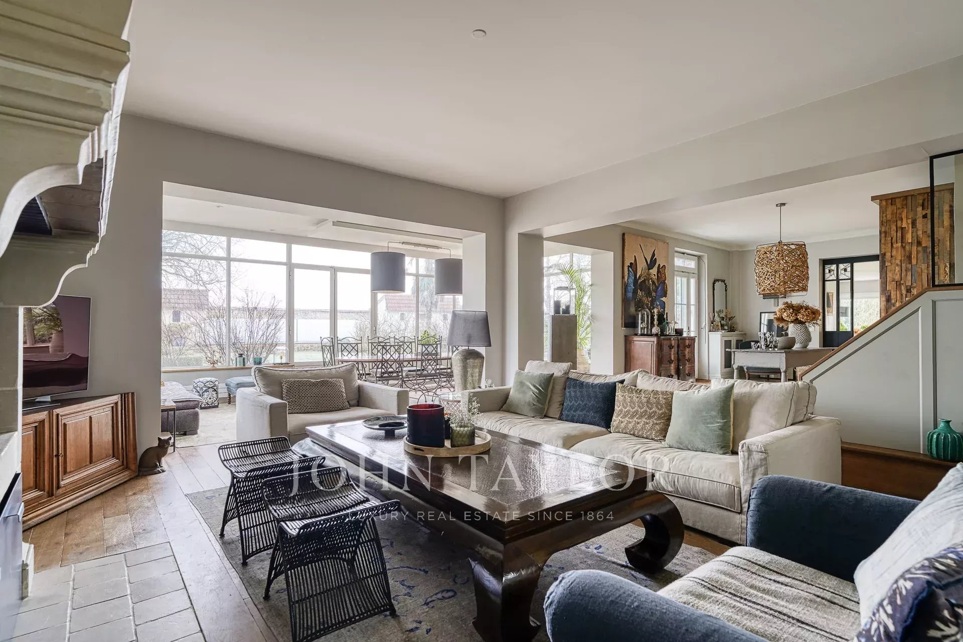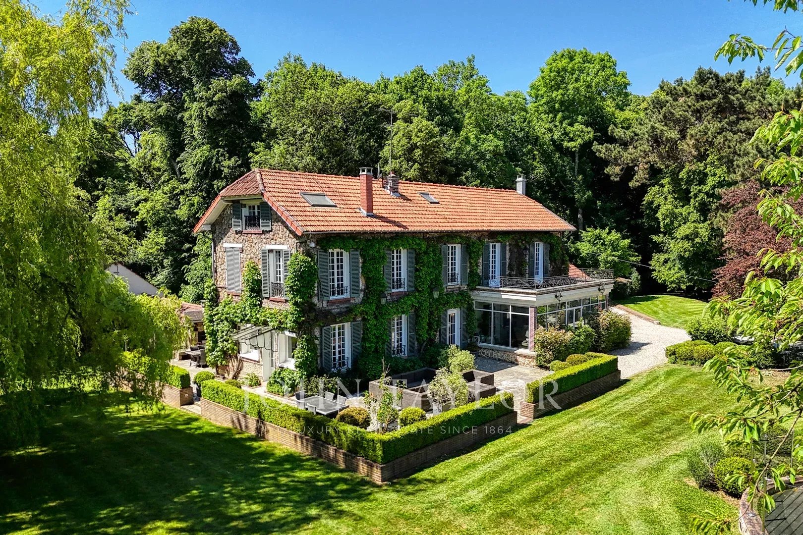 In the commune of Férolles Attilly, just 40 km from the center of Paris, John Taylor presents a magnificent property comprising a main house, a janitor's cottage, two garages and a heated swimming pool with pool house, all set in 7,000 m2 of landscaped parkland.