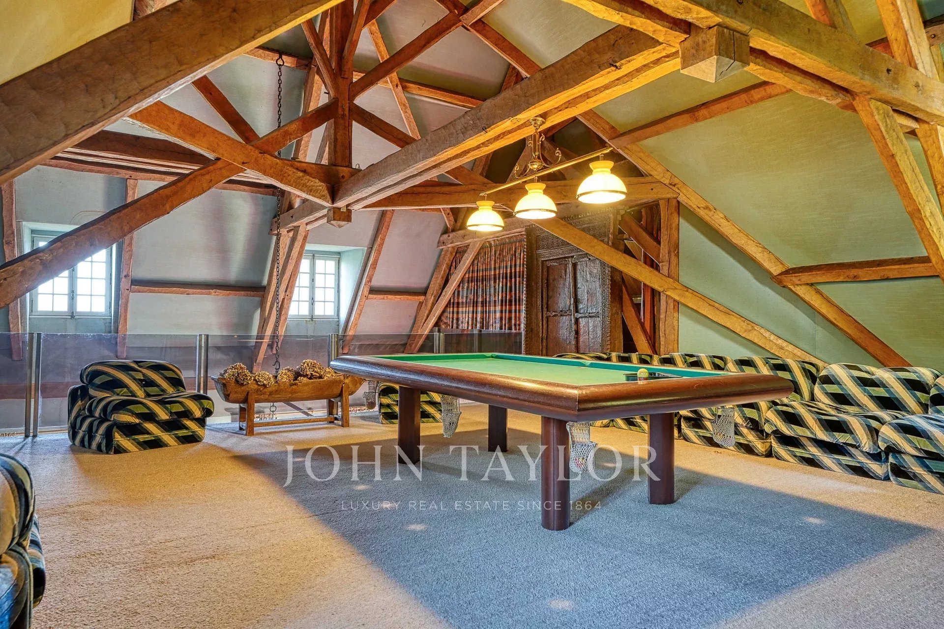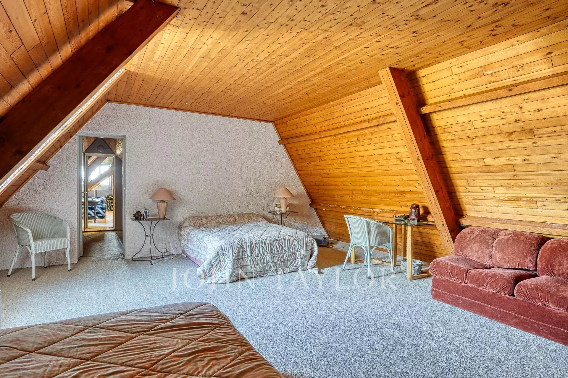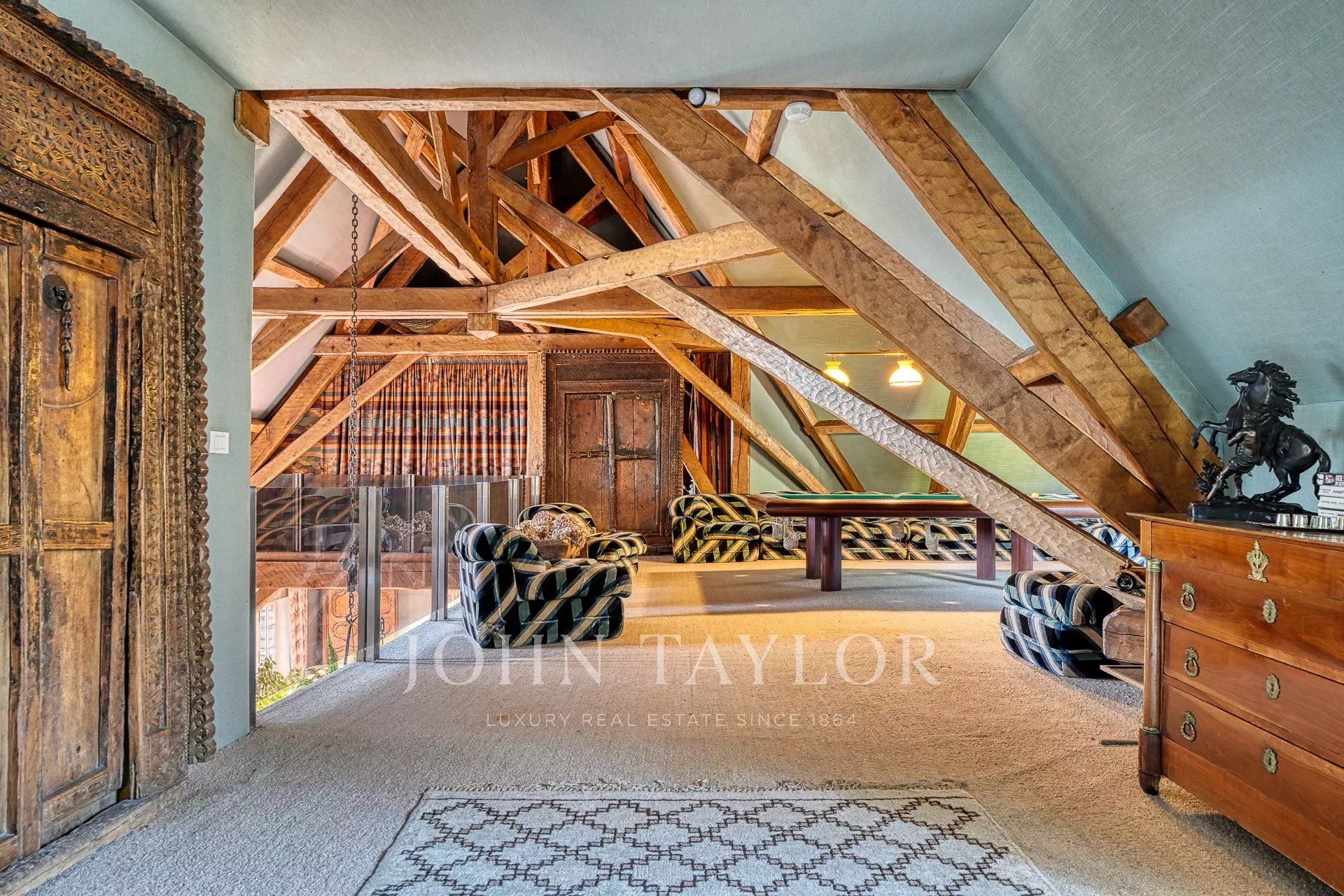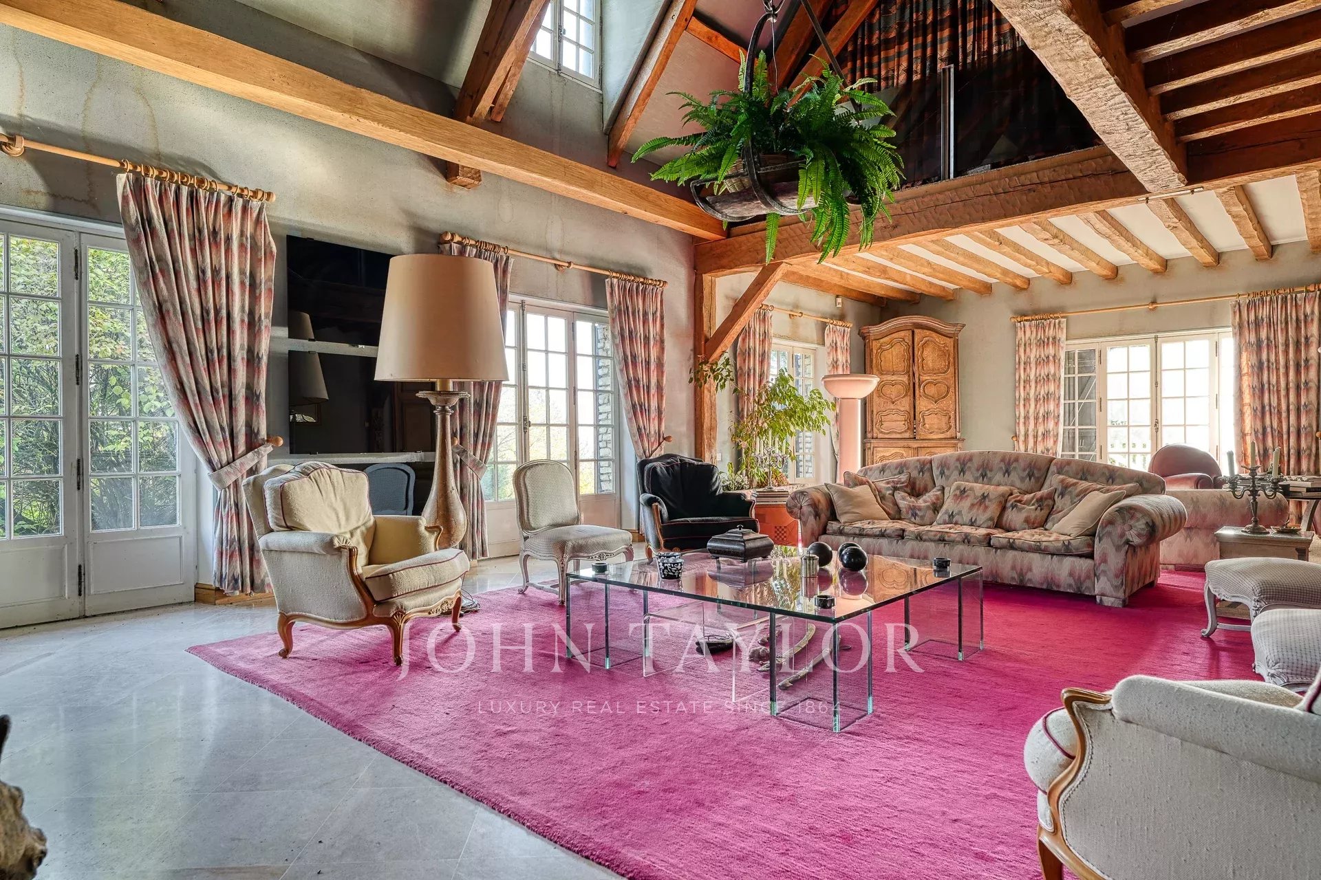 With its generous volumes and warm ambience, it features several lounges and reception rooms, including a cathedral living room sublimated by a roof structure crafted by the Compagnons du Devoir. The house also offers 6 comfortable bedrooms, each with its own private bathroom, including a ground-floor suite.