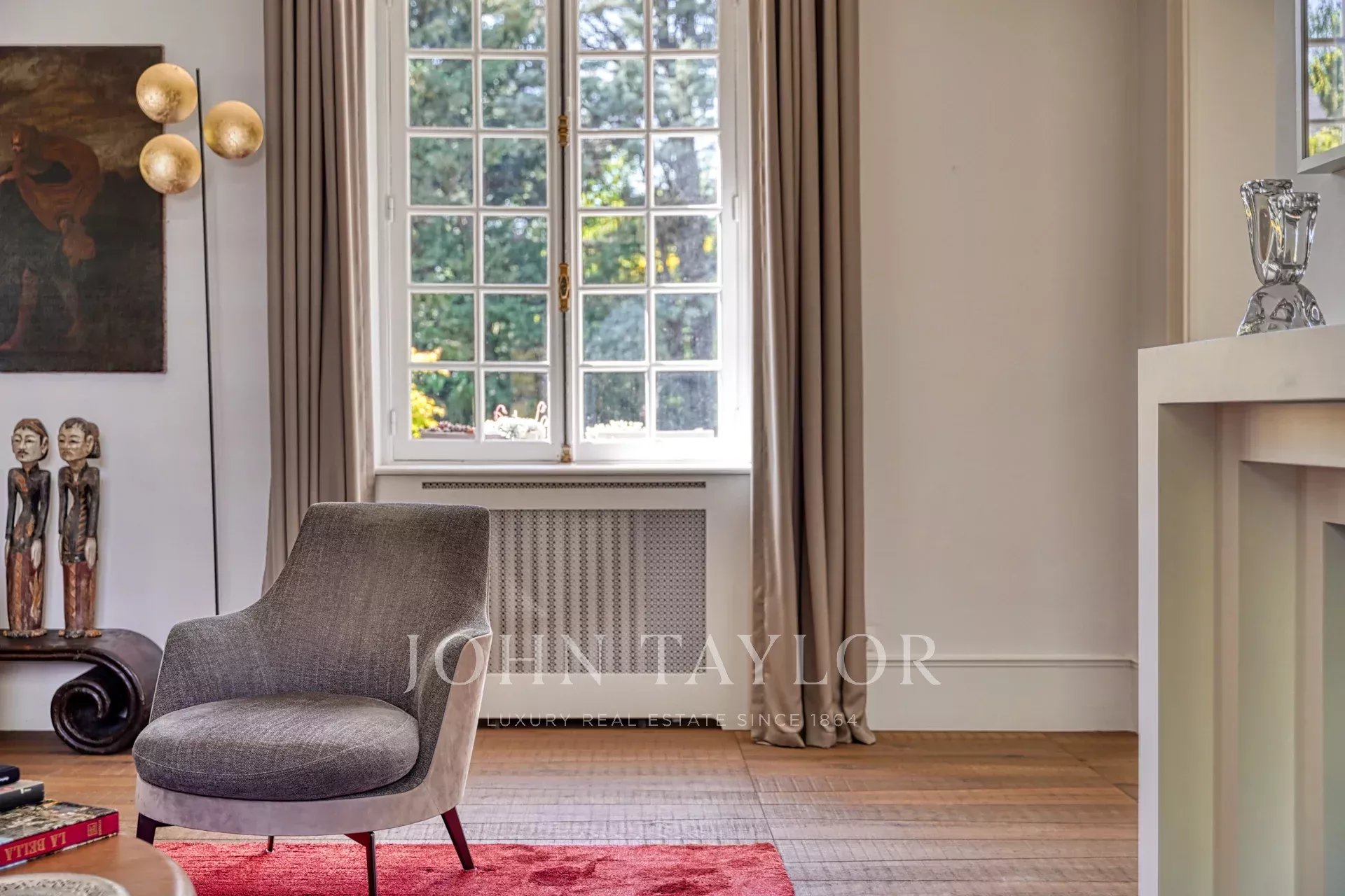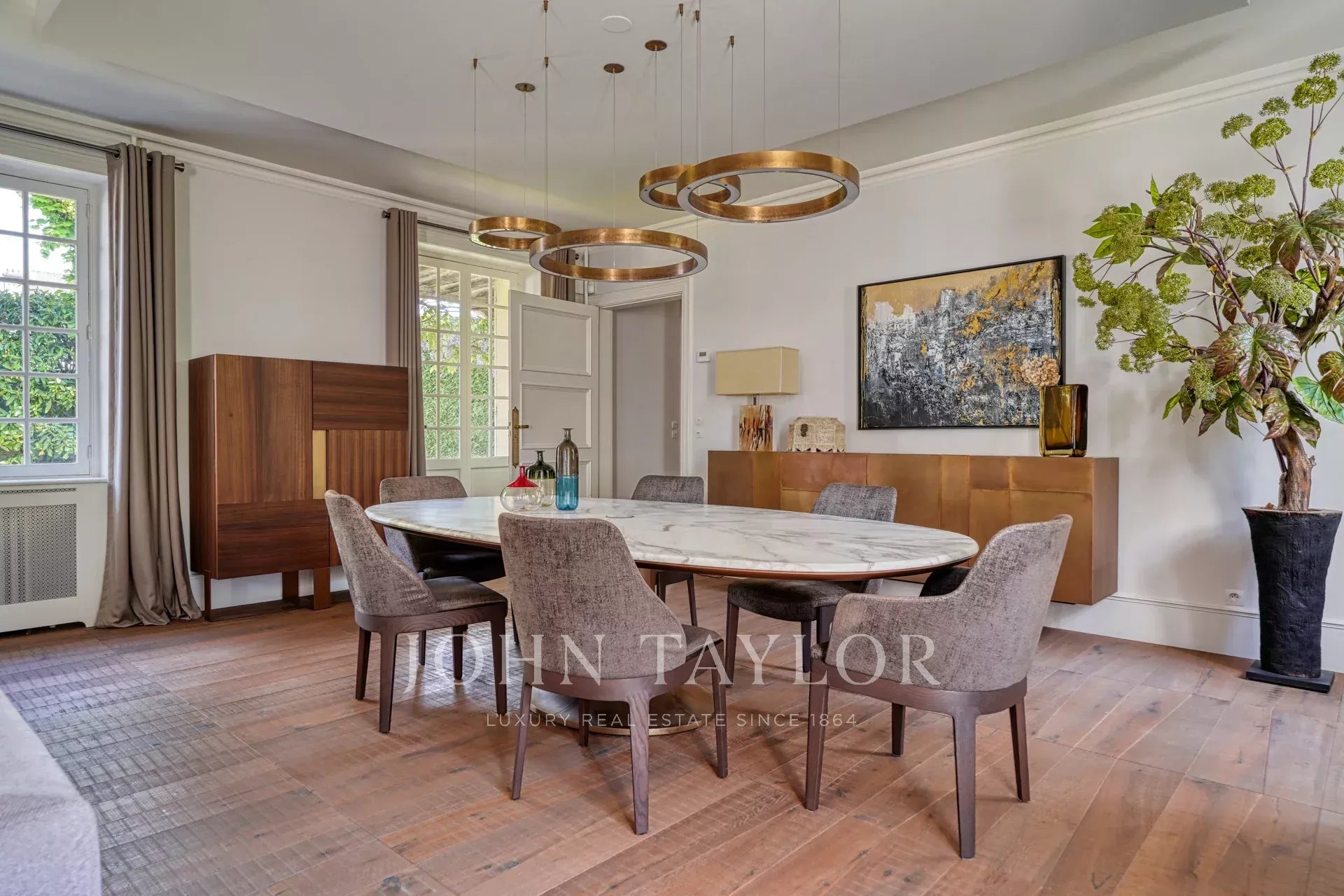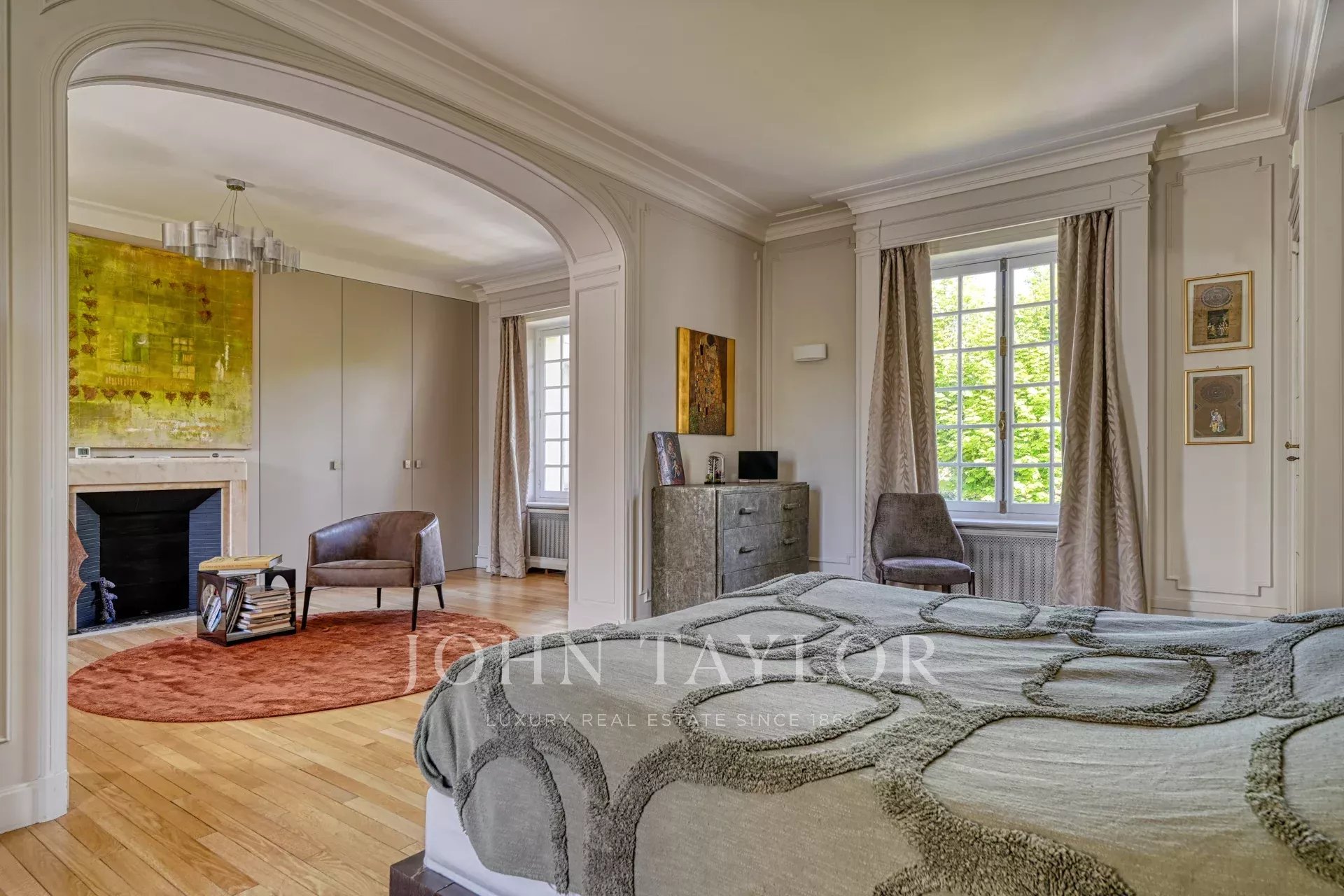 Upstairs, several bedrooms, including three suites, structure the sleeping areas in a peaceful and comfortable atmosphere. A generous master suite with dressing rooms and garden views, along with a family room, complete this set. One of the suites also benefits from a large terrace overlooking the garden.