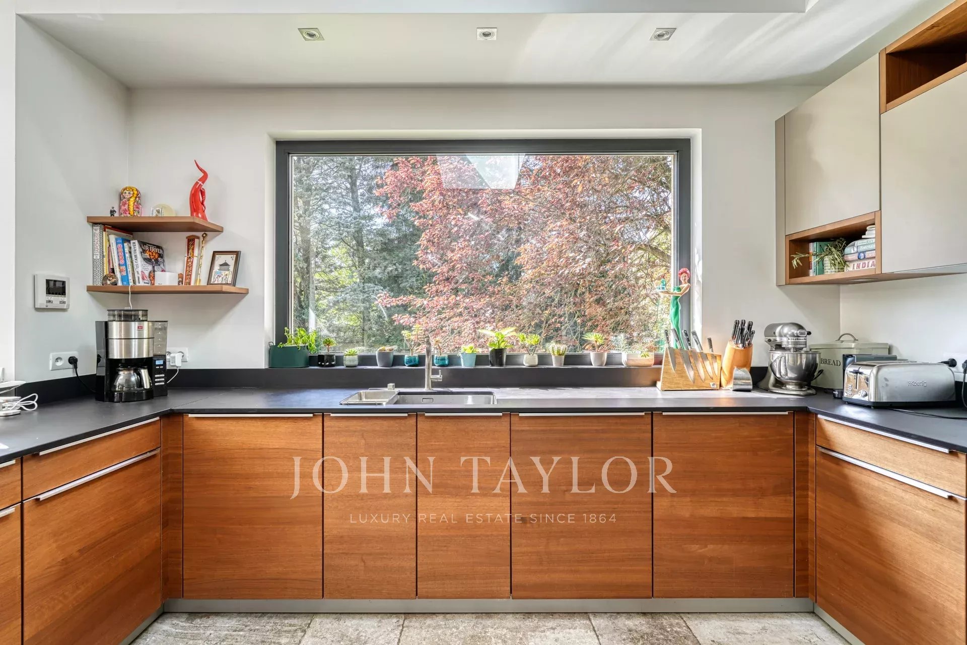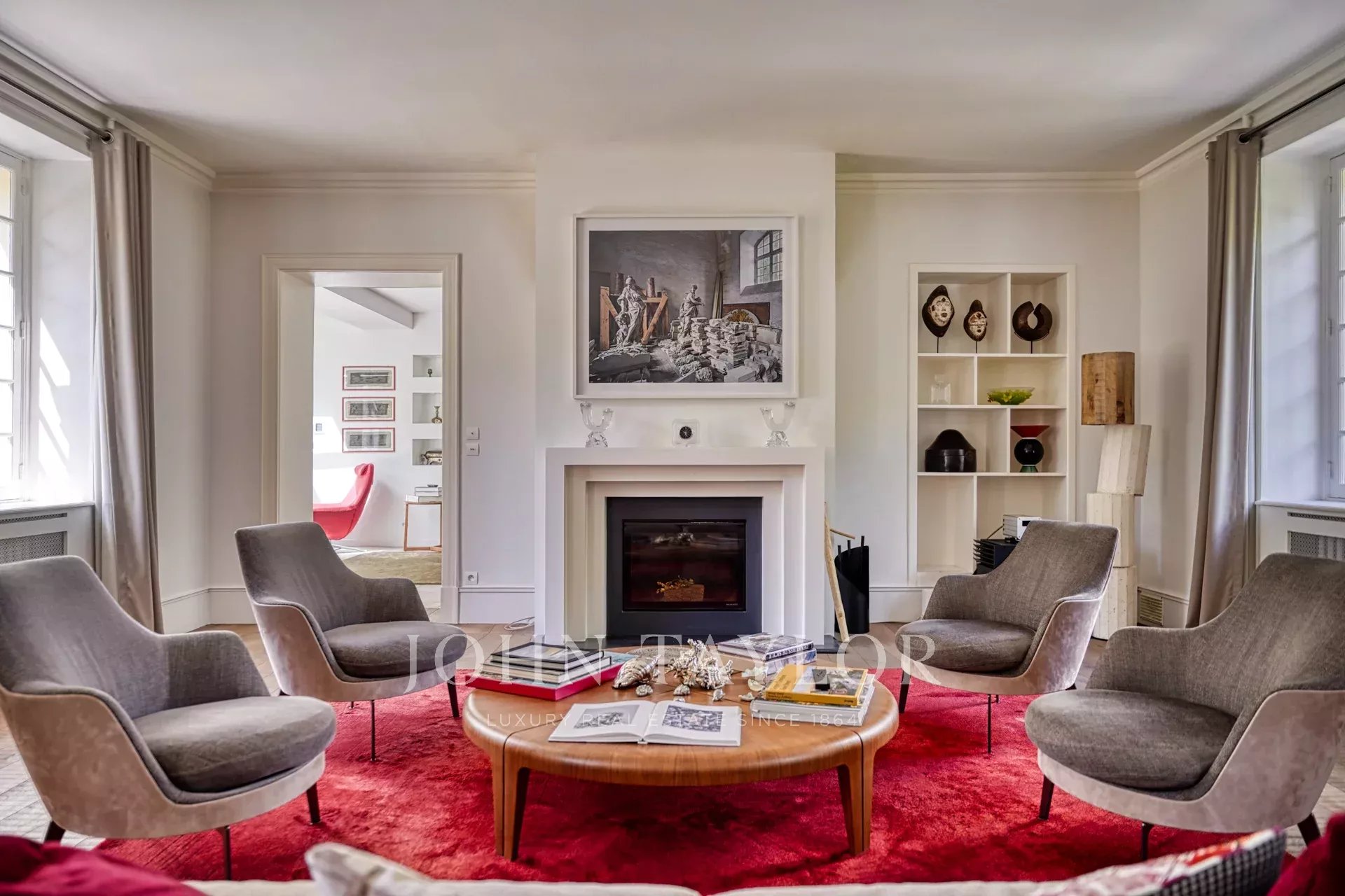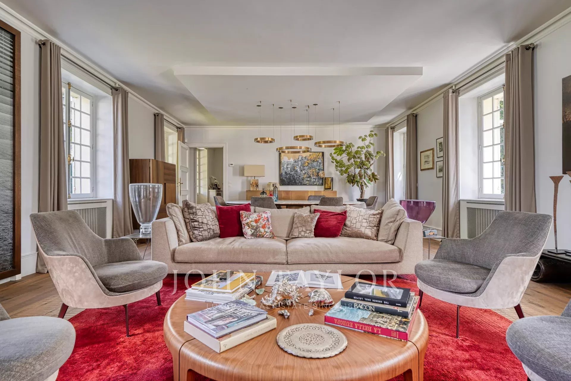 Upstairs, several bedrooms, including three suites, structure the sleeping areas in a peaceful and comfortable atmosphere. A generous master suite with dressing rooms and garden views, along with a family room, complete this set. One of the suites also benefits from a large terrace overlooking the garden.