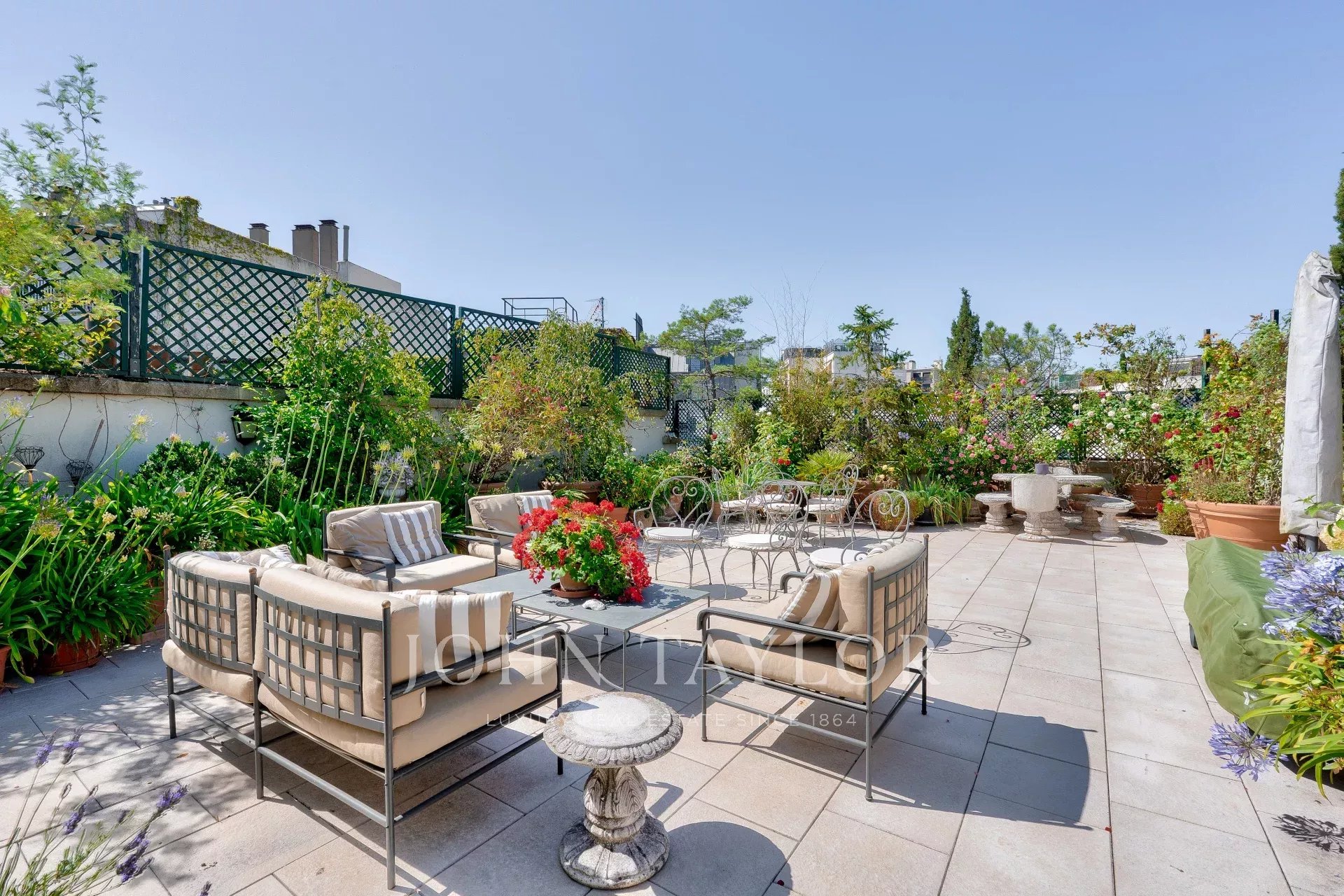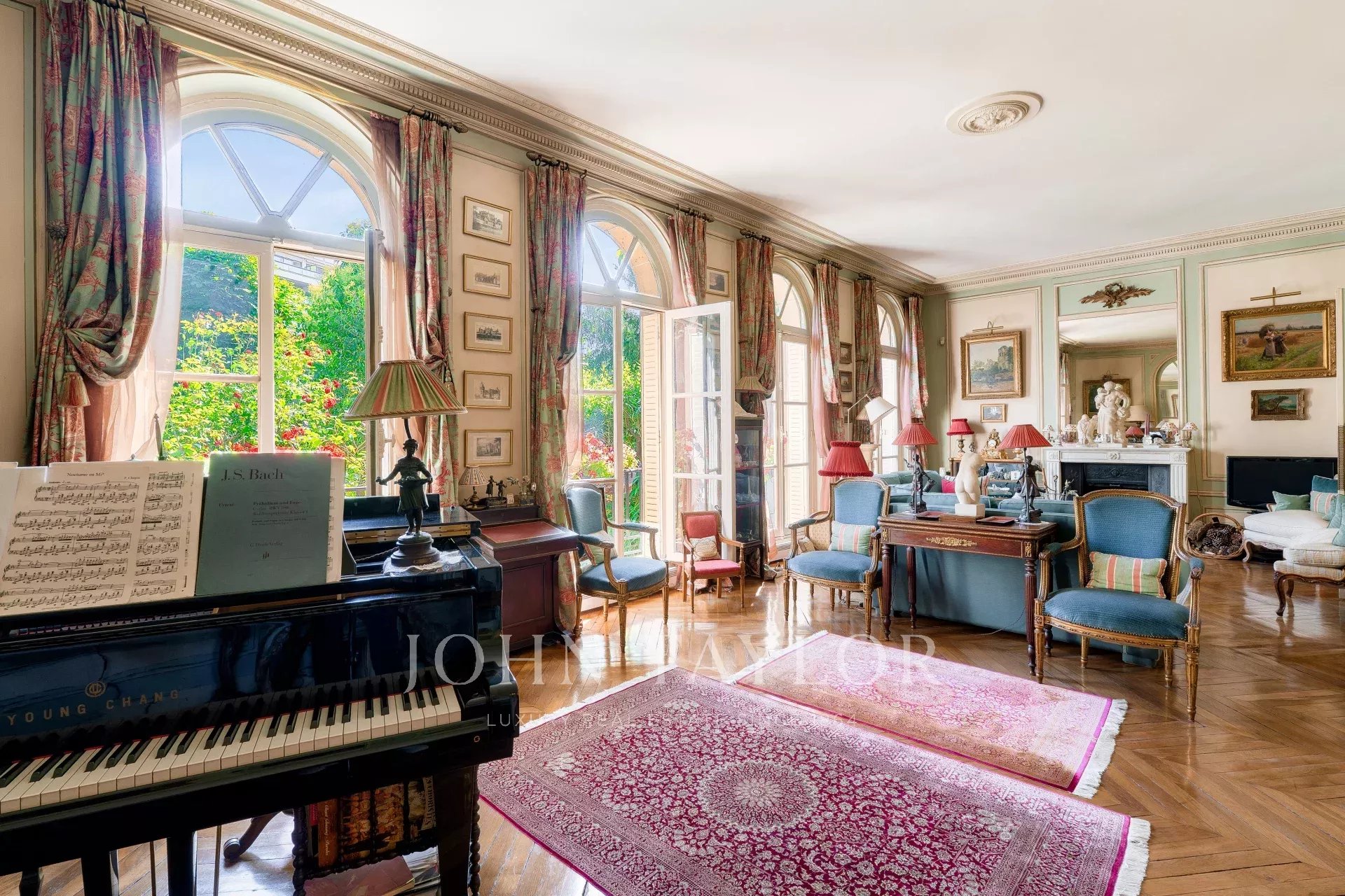 We offer you a noble 1910 stone building with 485m² of living space on 4 levels. Representing the art of living à la française, you'll enjoy this house just as much for entertaining guests as for family life. Its spaciousness (3.30m high ceilings) and layout make it a rarity on the market. A 124m² roof terrace, an access garden to the house and a delightful wooded courtyard extending from the dining kitchen complete this unspoilt setting.