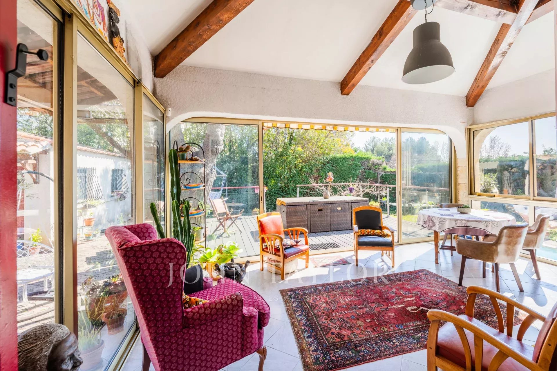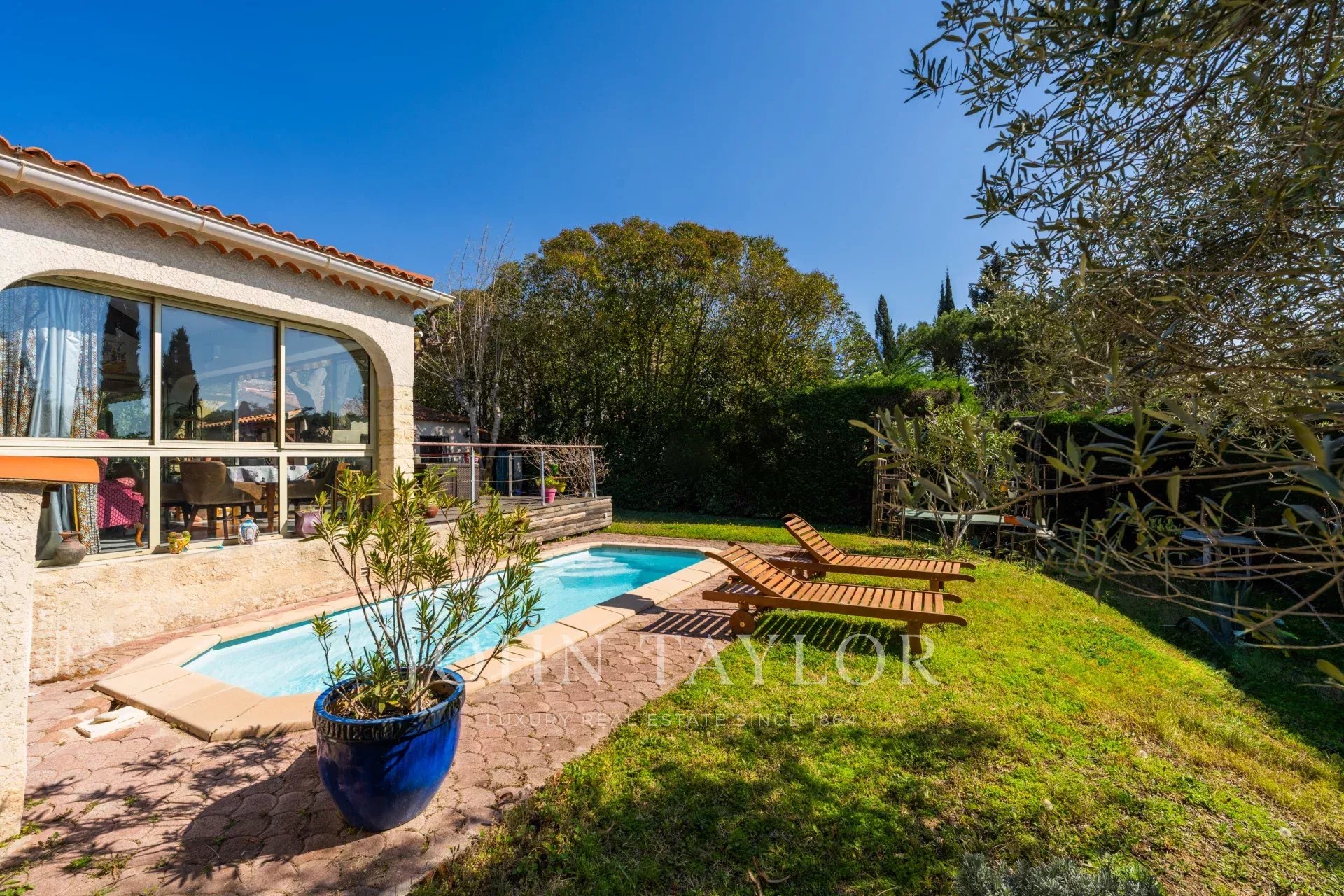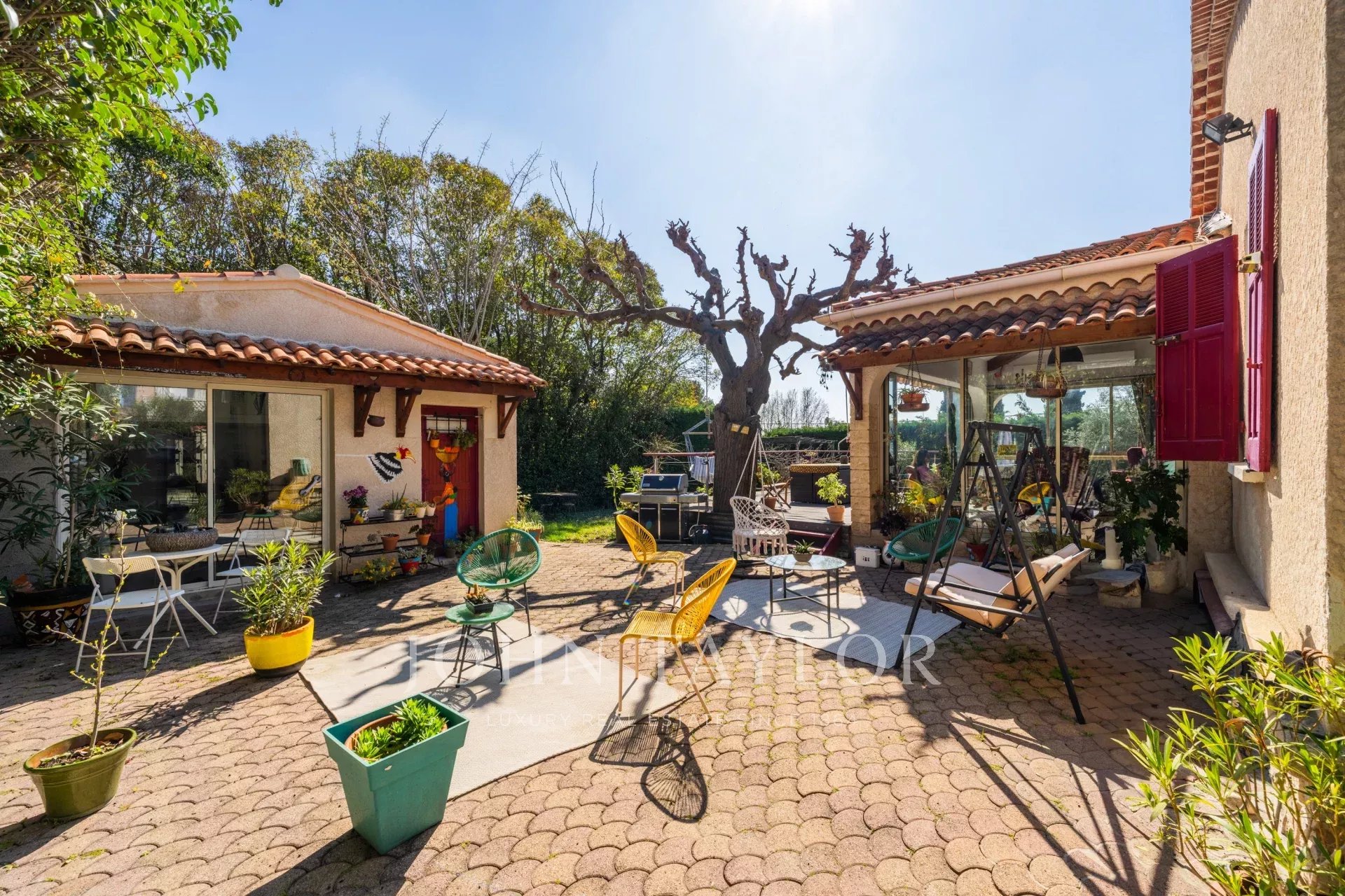 Your John Taylor Aix-en-Provence prestige real estate agency is pleased to present, Just a 15-minute walk from the historic center of Aix-en-Provence, discover this single-storey house with swimming pool and outbuilding, nestled in the heart of a wooded plot of about 950 m² facing south, offering calm and privacy.